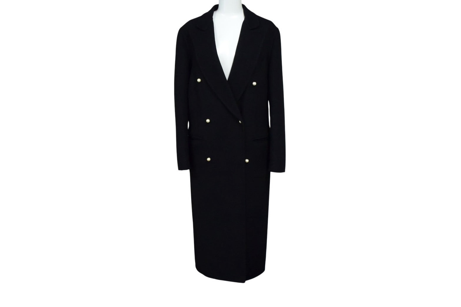CELINE セリーヌ コート ロングコート フィービー期 ヴィンテージ パールボタン カシミヤ キュプラ サイズ34 イタリア製 ブラック 美品 中古 4b003640