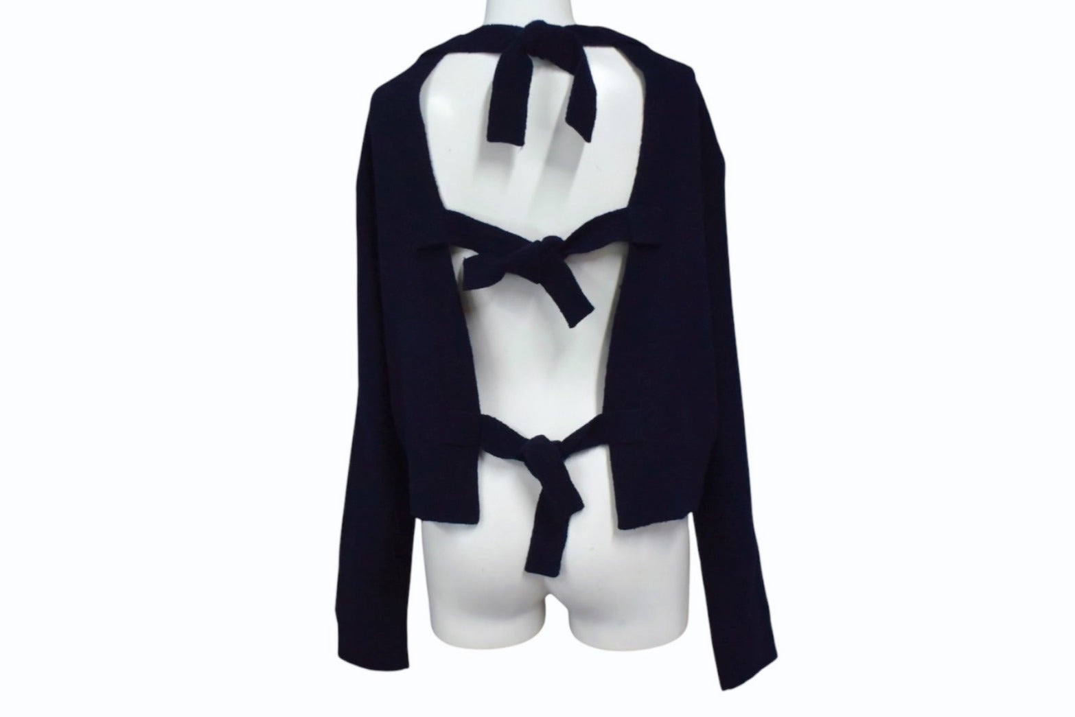 バック部分に3連のリボンデザインがされた遊び心のある変形ニットです。
