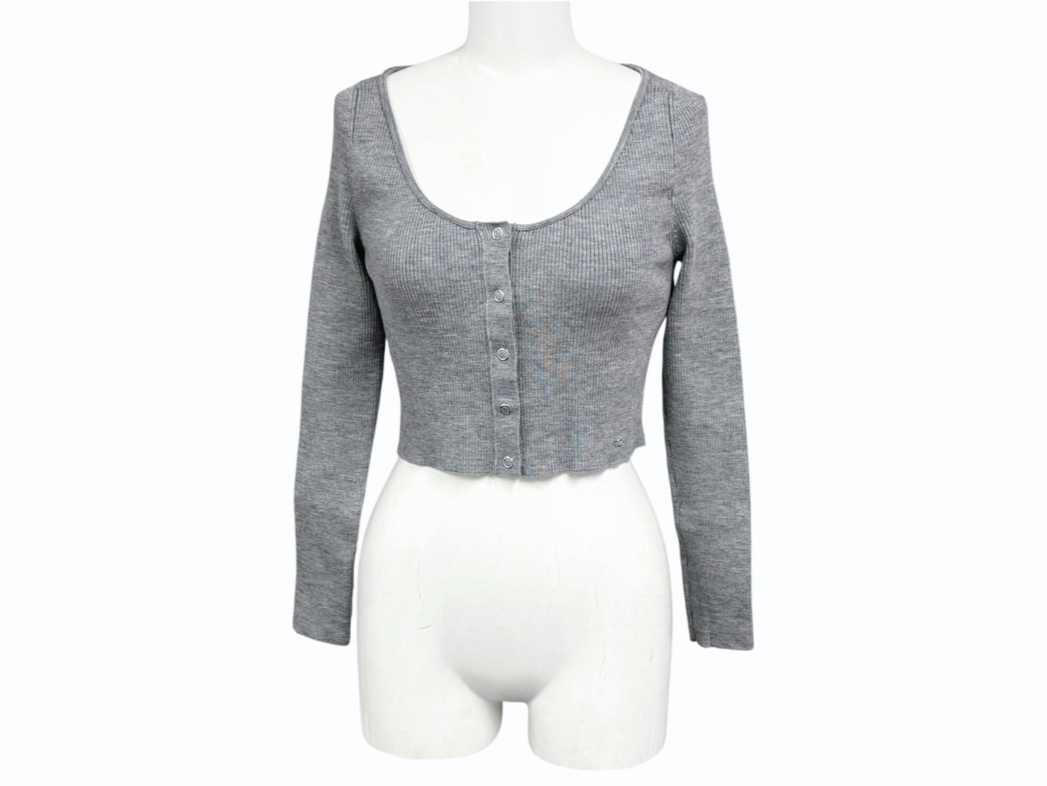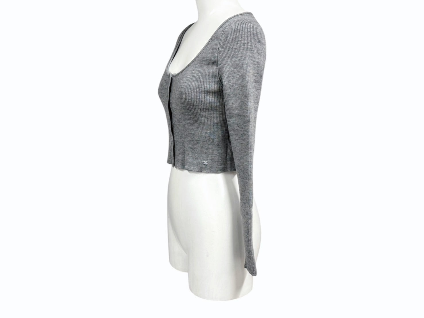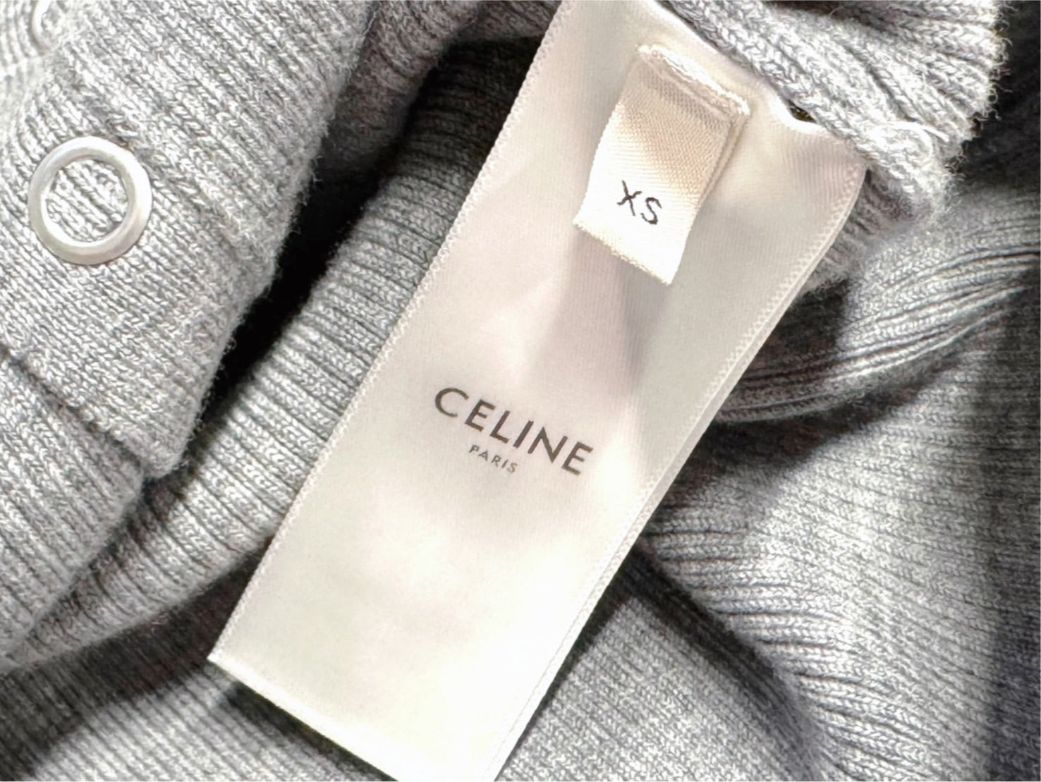 極美品 CELINE セリーヌ クロップド カーディガン トップス 2A67S237P サイズXS 刺繍ロゴ ニット グレー 中古 4b004453