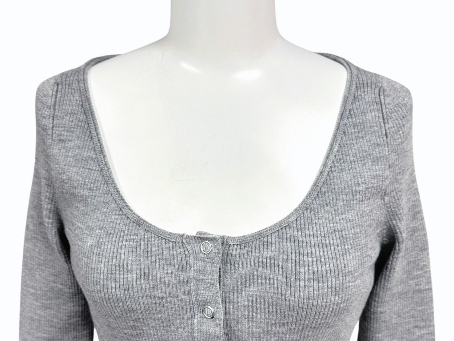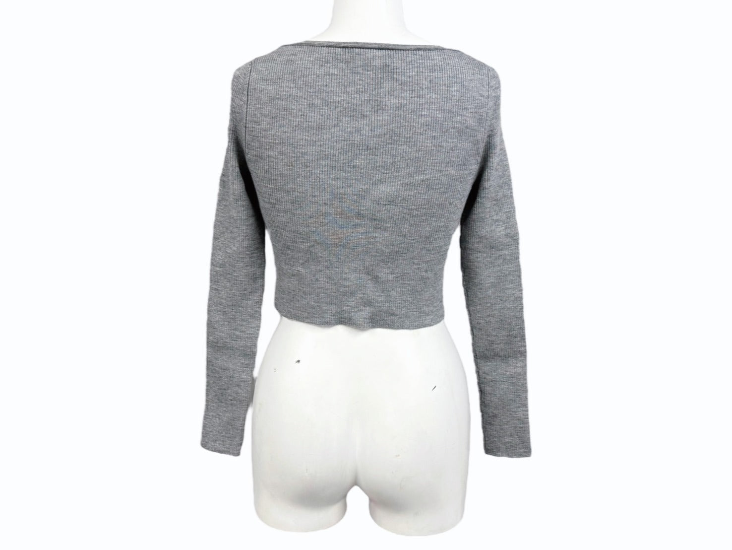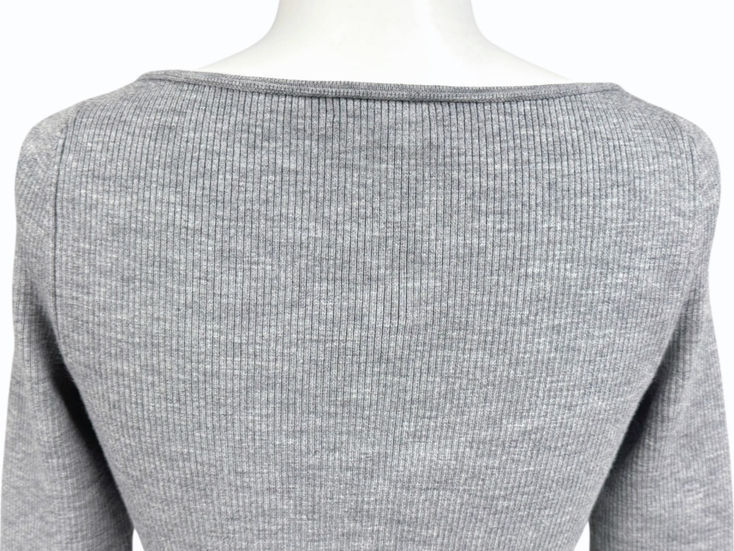 極美品 CELINE セリーヌ クロップド カーディガン トップス 2A67S237P サイズXS 刺繍ロゴ ニット グレー 中古 4b004453