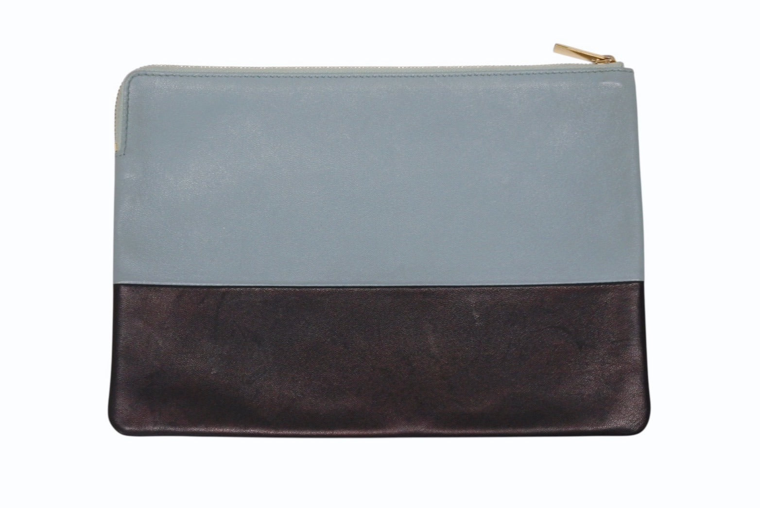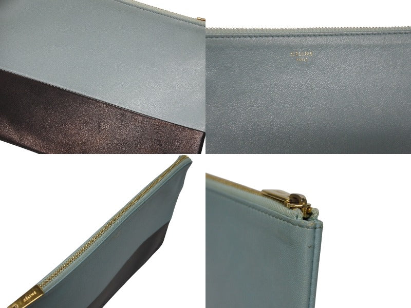 CELINE セリーヌ クラッチバッグ ミニバッグ イタリア製 レザー ブルー ブラック ゴールド金具 美品 中古 4b005153