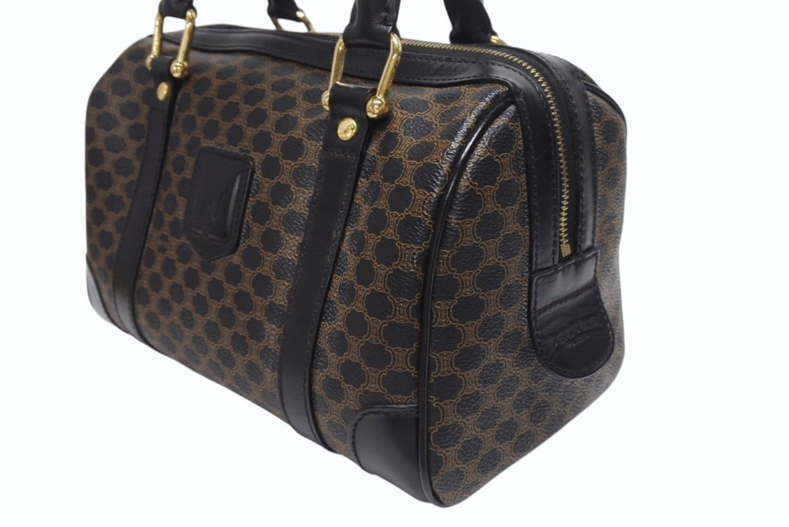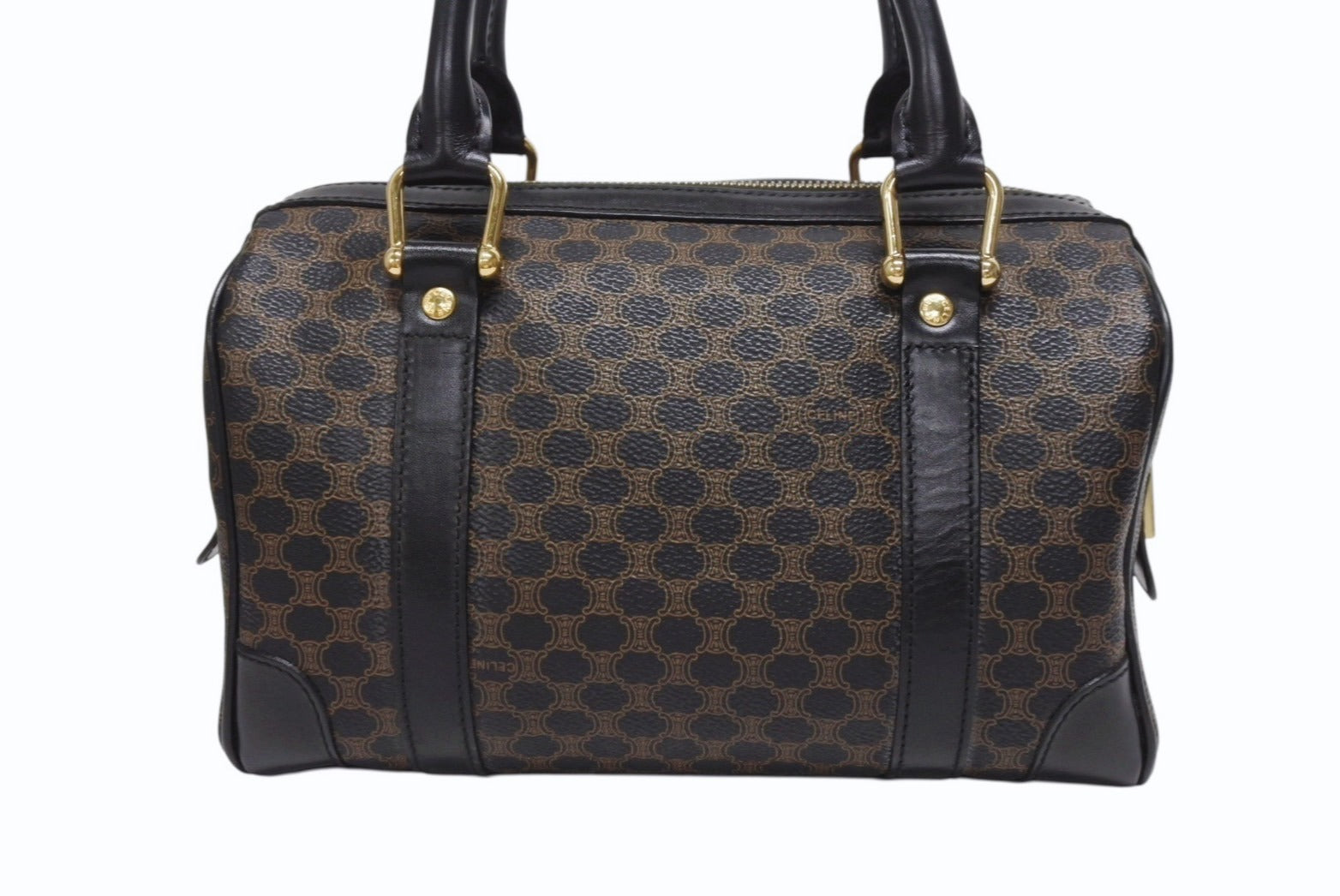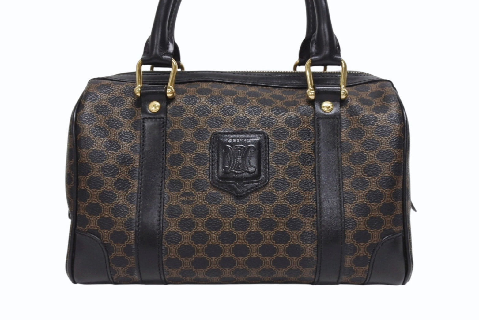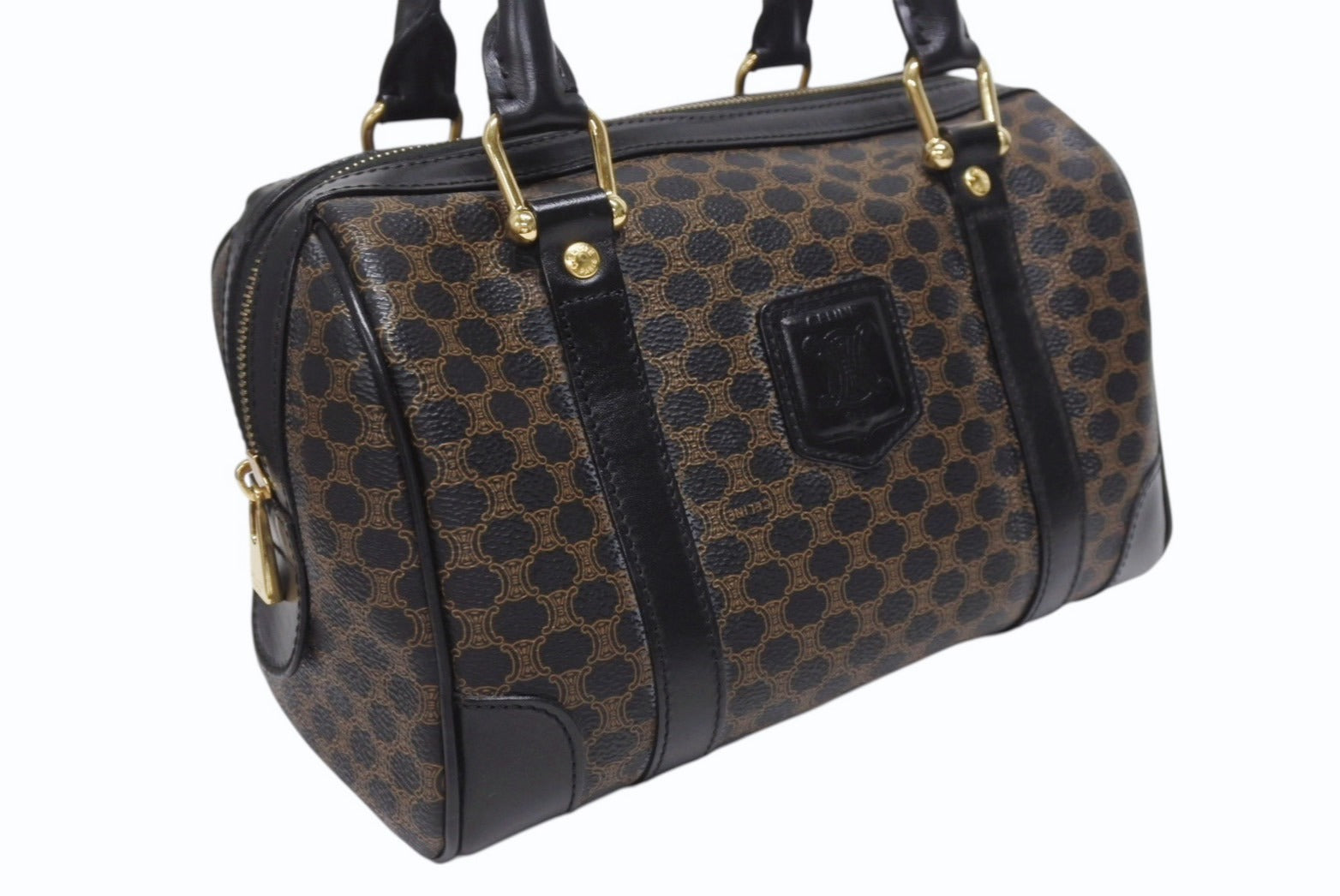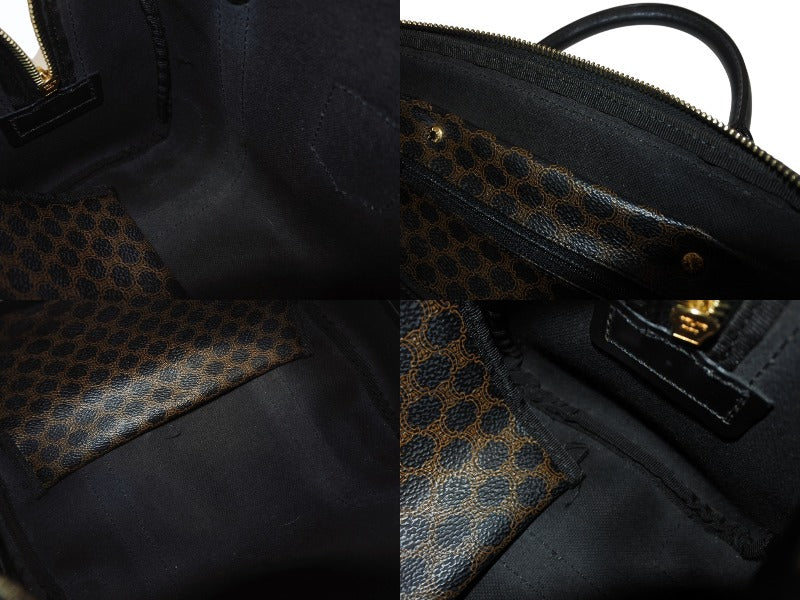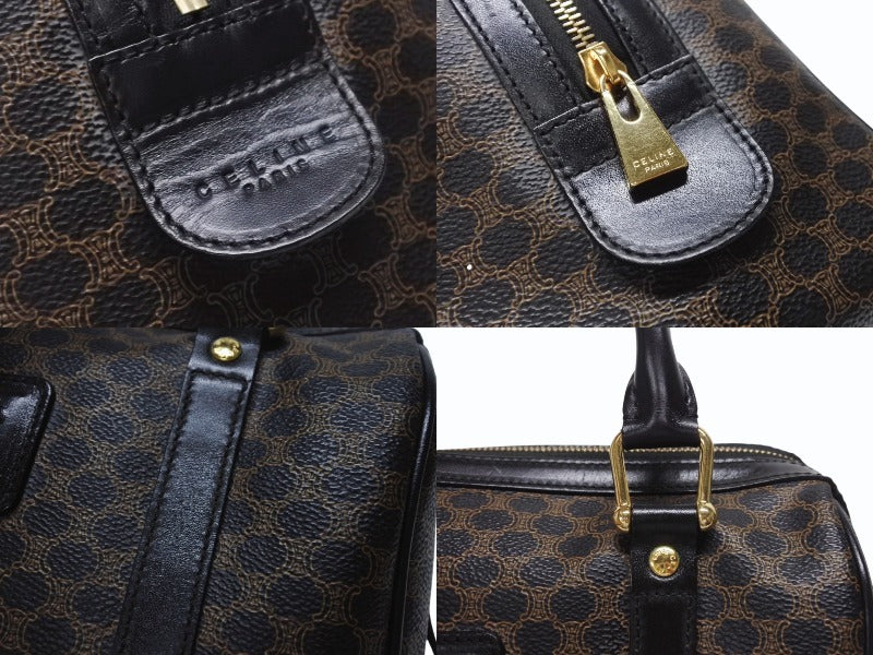 CELINE セリーヌ ハンドバッグ MC98/2 マカダム柄 PVC レザー ブラウン ブラック イタリア製 ゴールド金具 総柄 美品 中古 4b005320