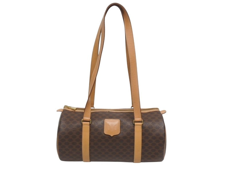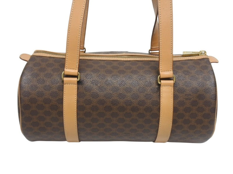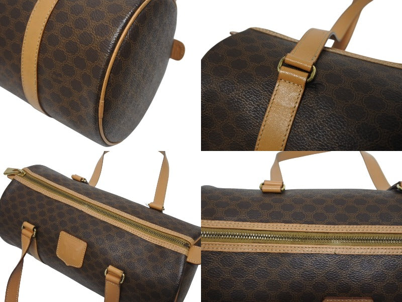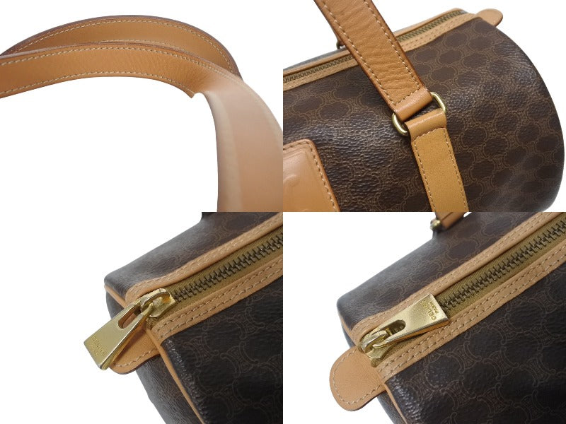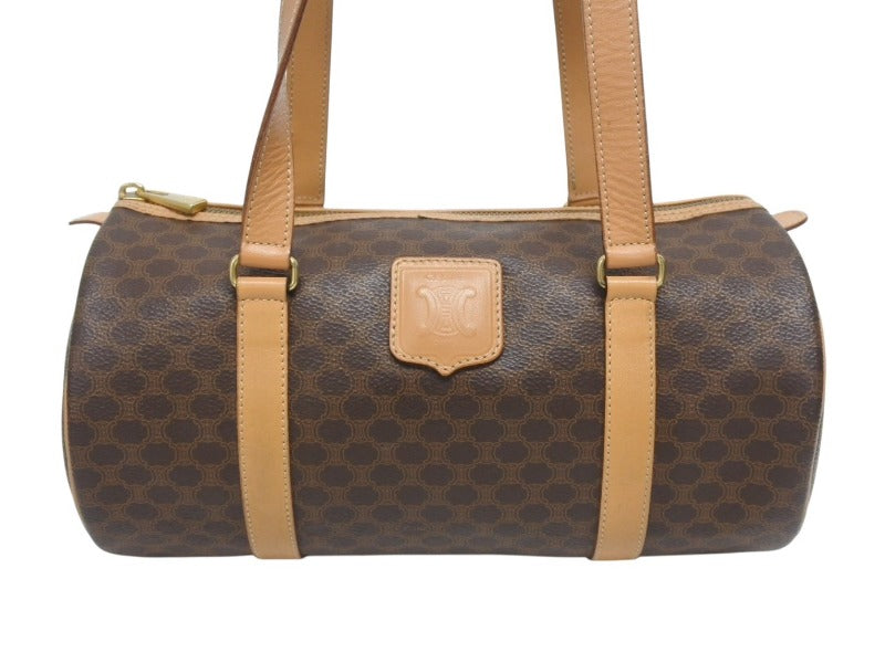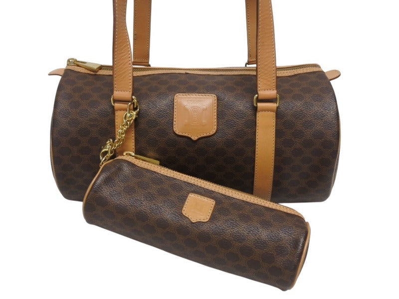 CELINE セリーヌ マカダム ワンショルダーバッグ ポーチ付き ボストンバッグ ハンドバッグ ロゴ PVC レザー ブラウン ゴールド 美品 中古 4b005332