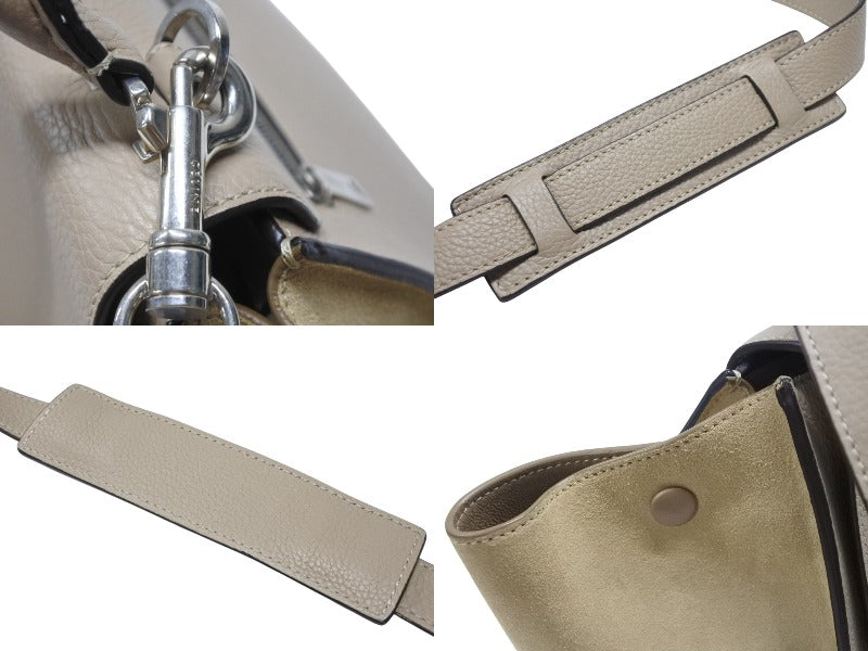 極美品 CELINE セリーヌ ハンドバッグ 2WAY ショルダーバッグ トラペーズ ベージュ レザー シルバー金具 中古 4b006803