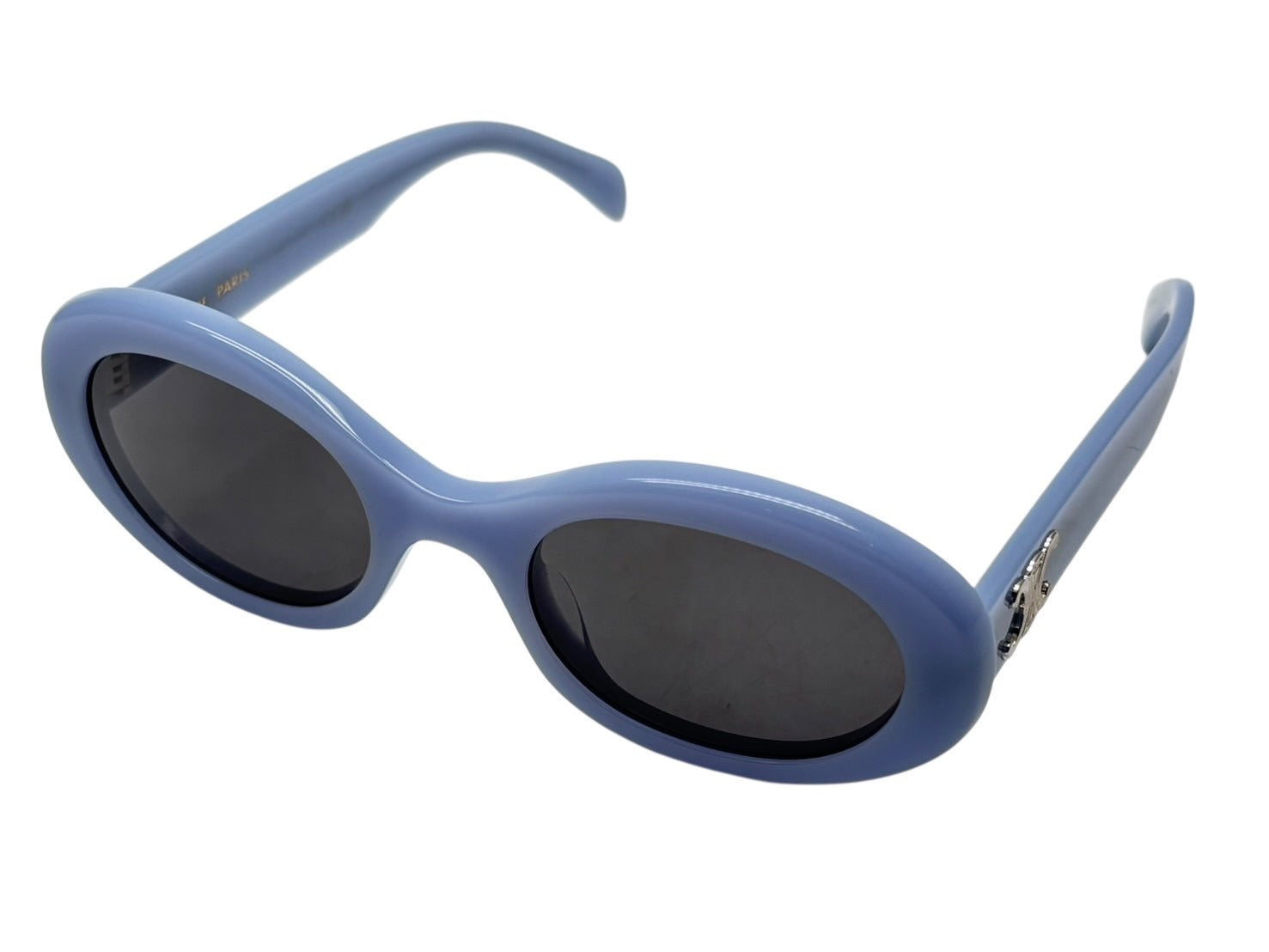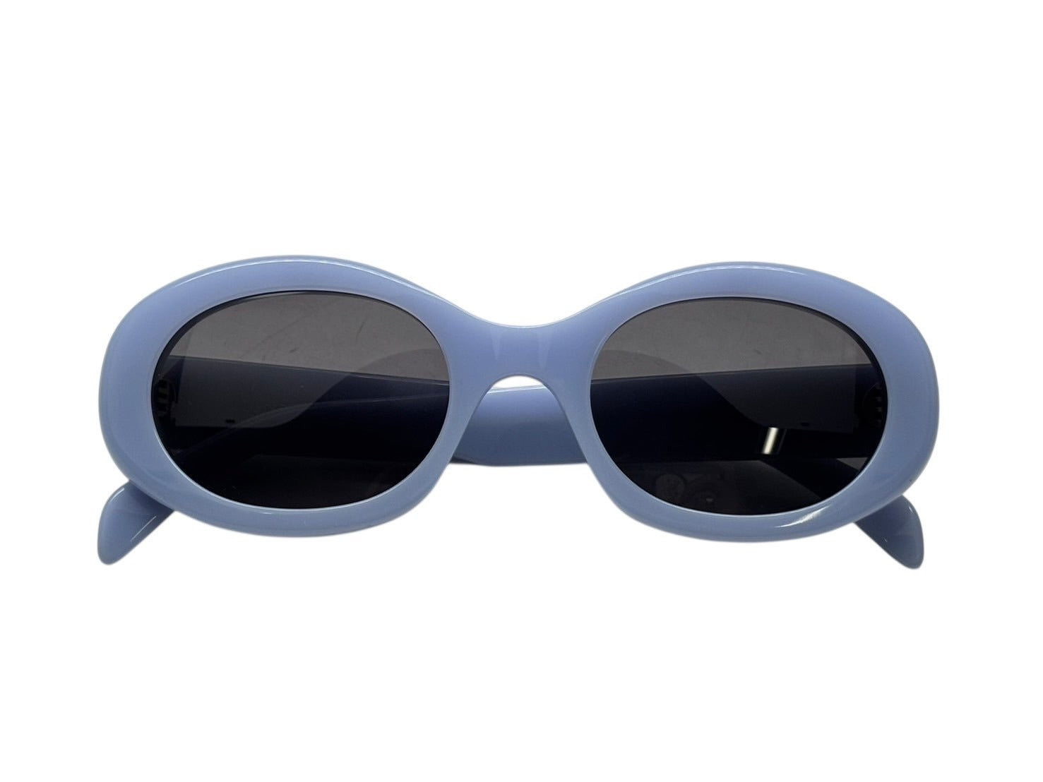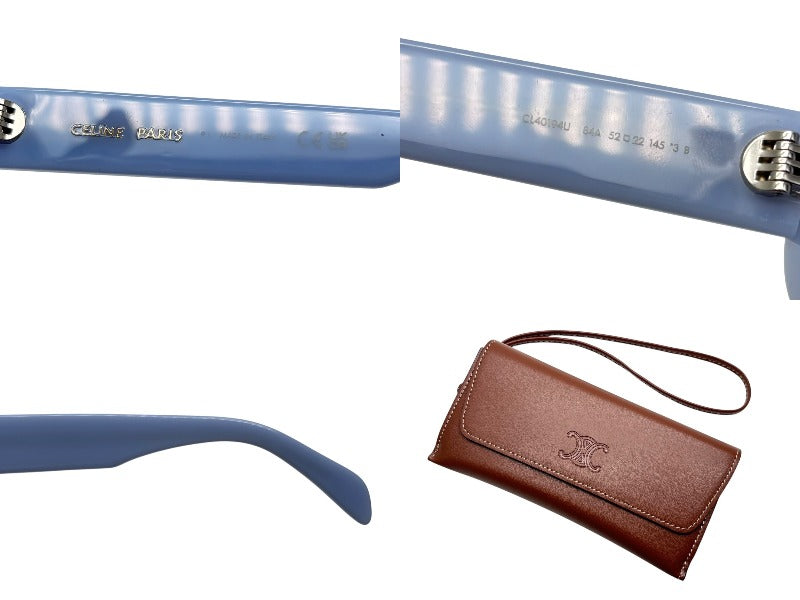 新品同様 CELINE セリーヌ トリオンフ アセテートサングラス オーバル CL40194U イタリア製 ブルー シルバー金具 サイズ52◻︎22 中古 4b008854