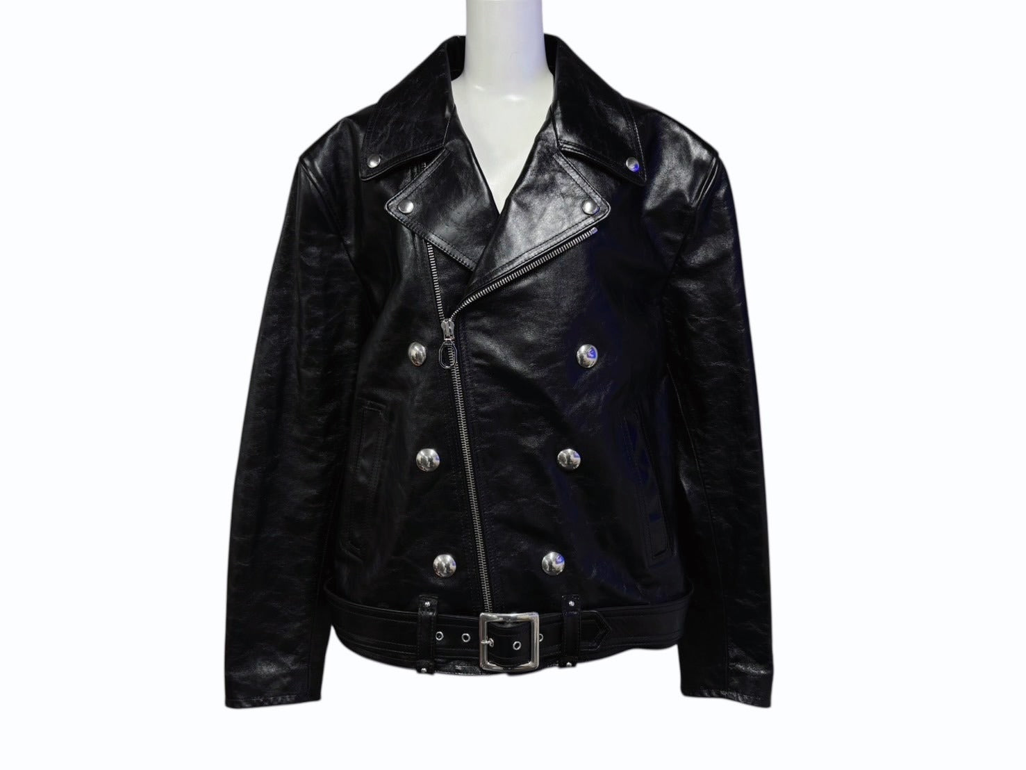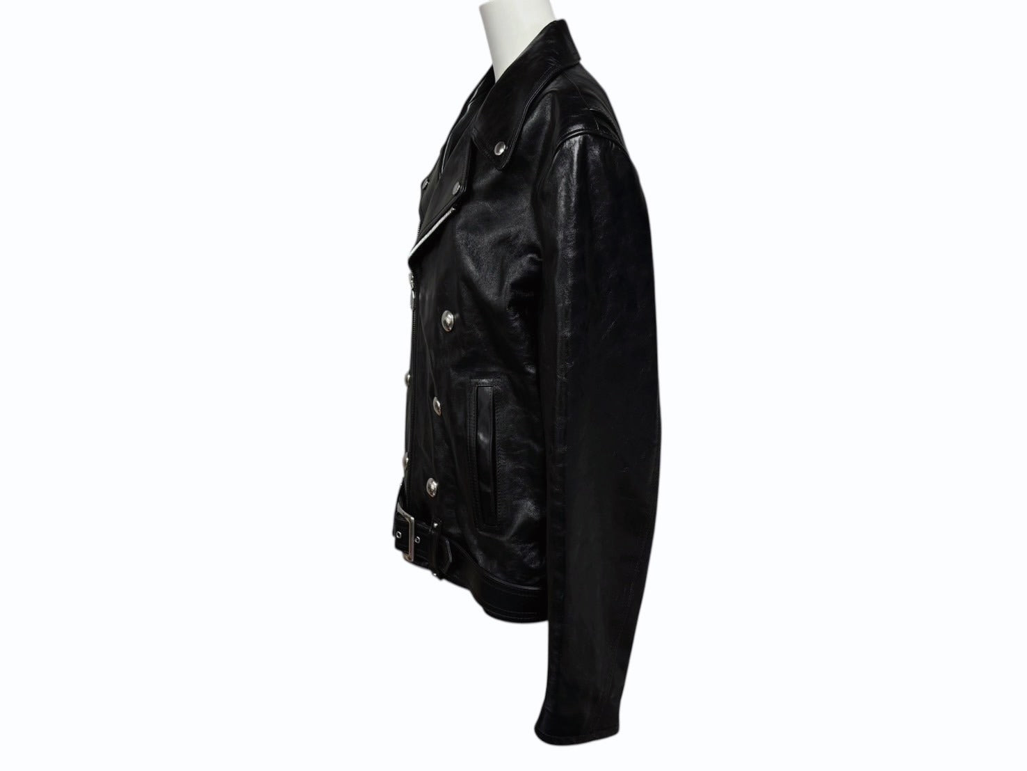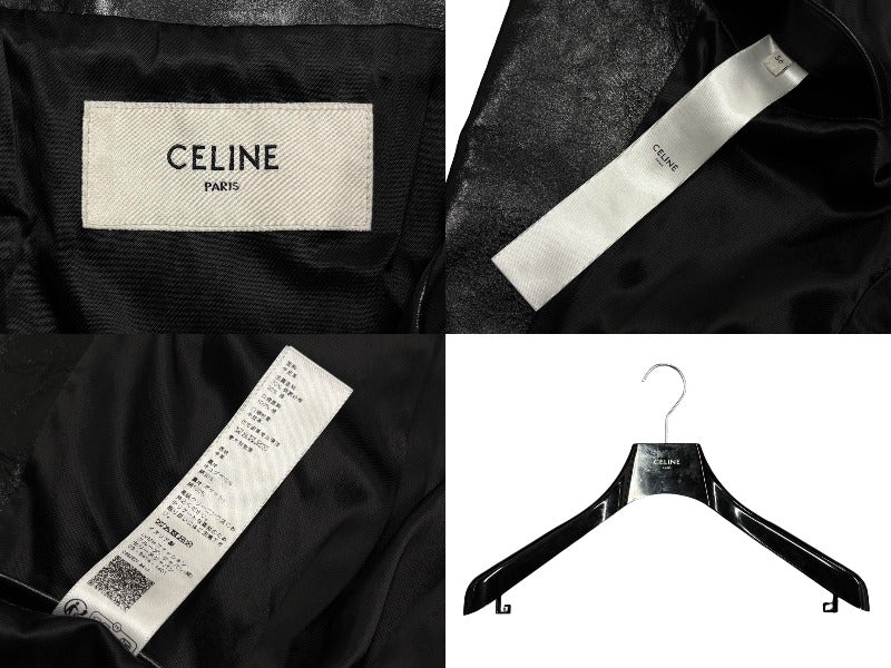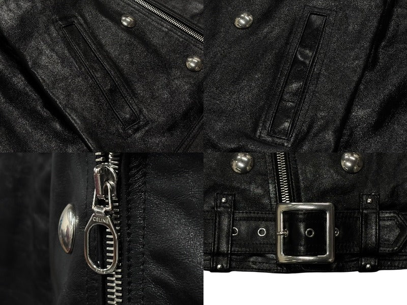 極美品 CELINE セリーヌ ダブルライダースジャケット 2EK84132038 NO イタリア製 牛革 ブラック シルバー金具 サイズ56 中古 4b009029