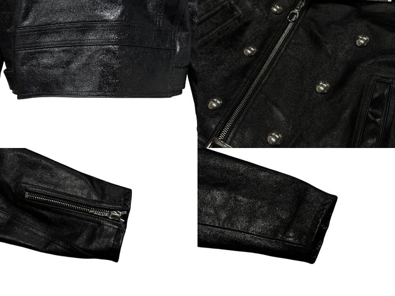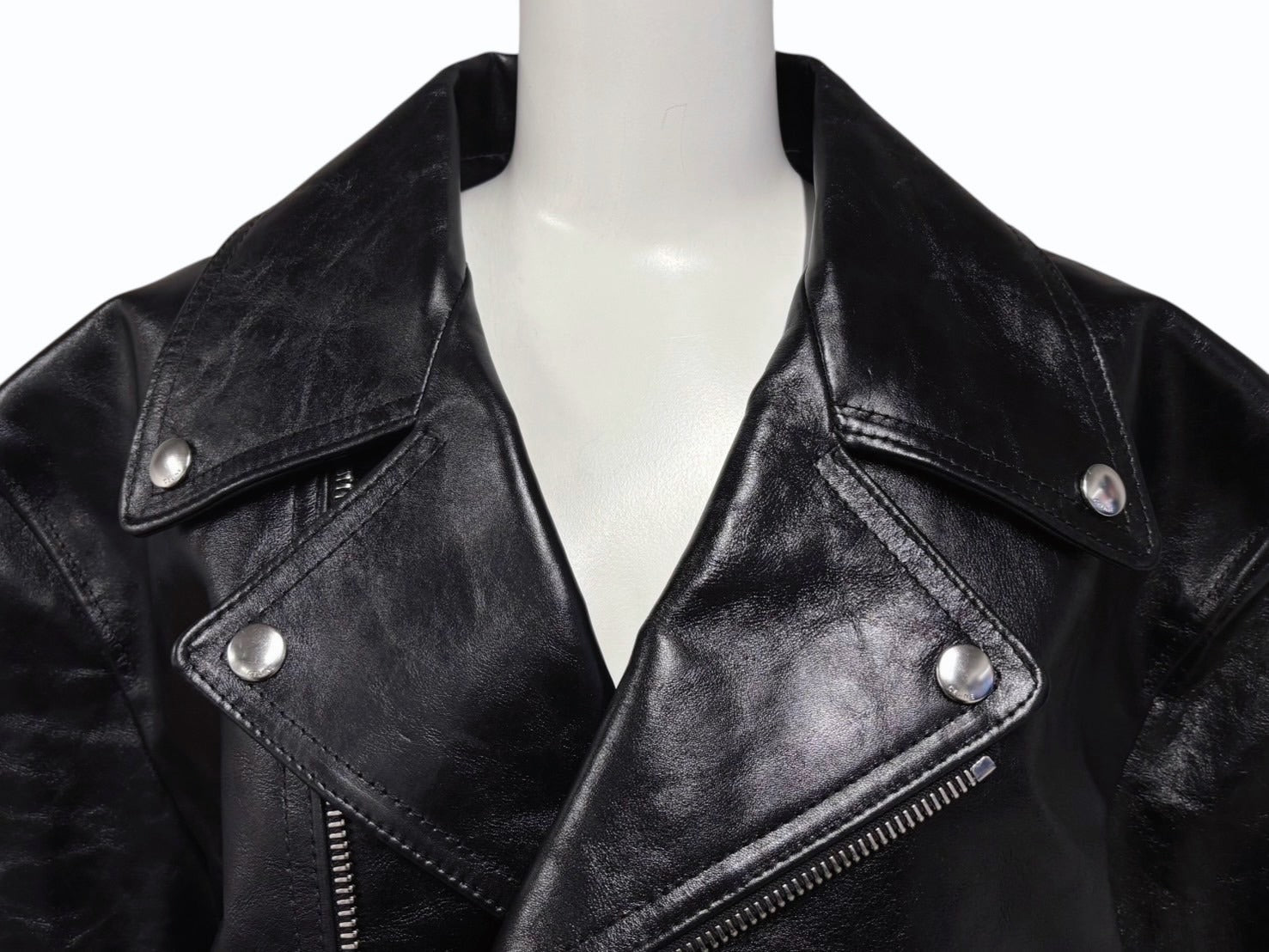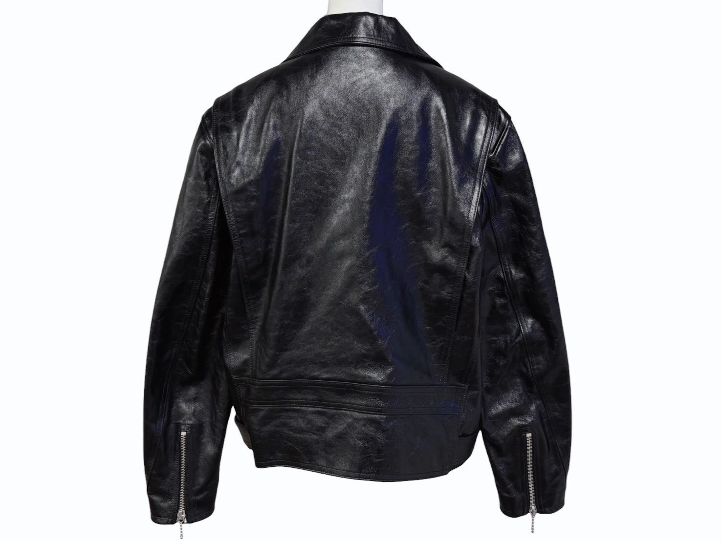 極美品 CELINE セリーヌ ダブルライダースジャケット 2EK84132038 NO イタリア製 牛革 ブラック シルバー金具 サイズ56 中古 4b009029