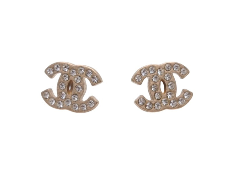 極美品 CHANEL シャネル ココマーク ピアス 両耳 09P刻印 フランス製 1.5g メタル ラインストーン ゴールド金具 中古 4b006446