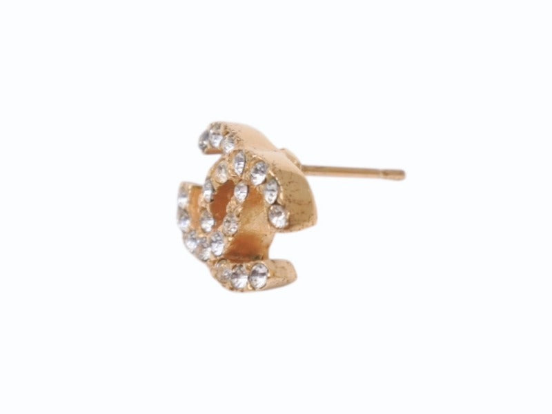 CHANEL シャネル ココマーク ピアス 重量約3.5g 01P刻印 ラインストーン メタル ゴールド クリア 両耳用 美品 中古 4b006475