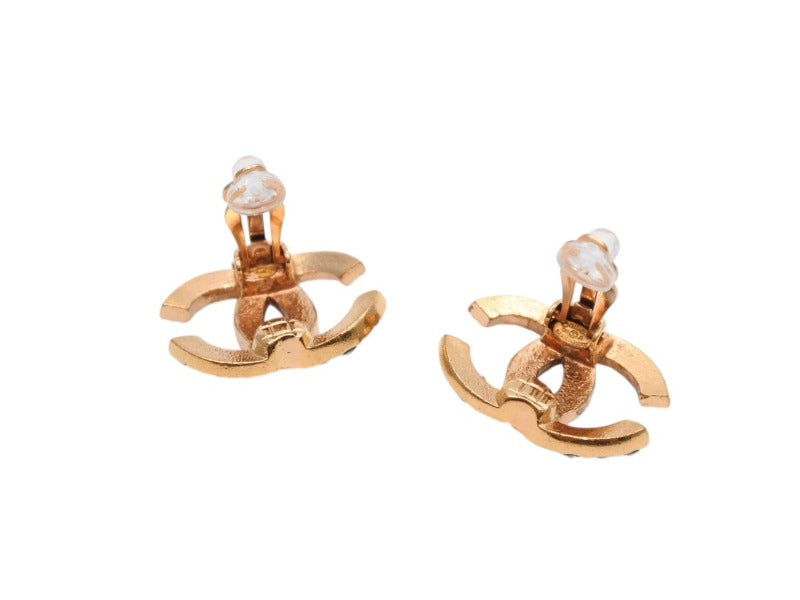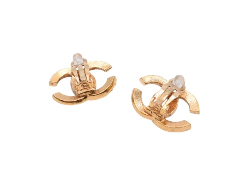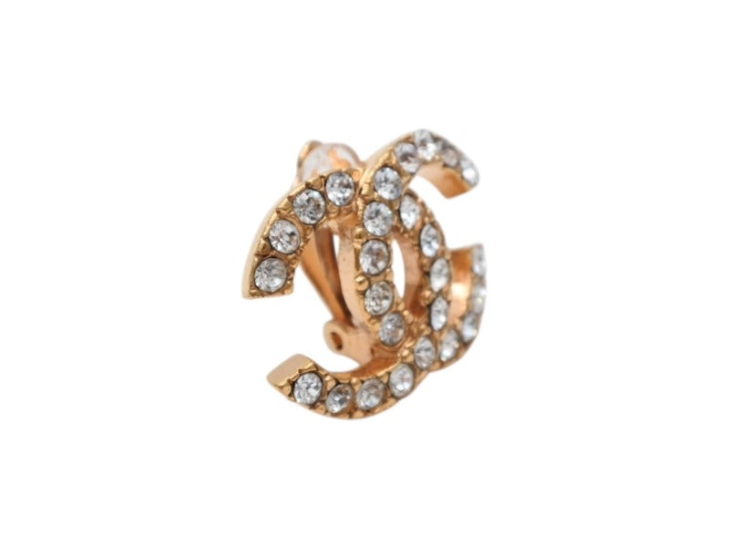 極美品 CHANEL シャネル Coco Mark ココマーク ピアス ラインストーン ゴールドカラー 02A 刻印 4.9g アクセサリー 中古 4b006477
