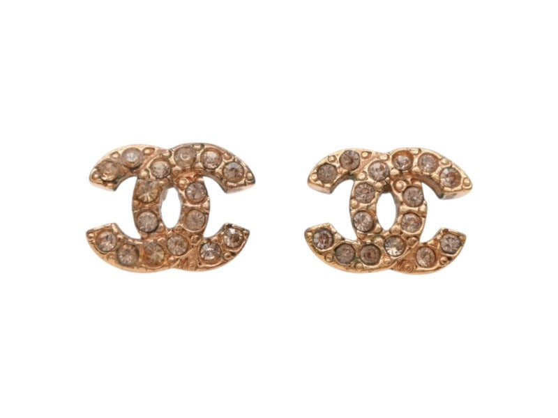 極美品 CHANEL シャネル Coco Mark ココマーク ピアス ラインストーン ゴールドカラー 04A刻印 1.8g 中古 4b006484