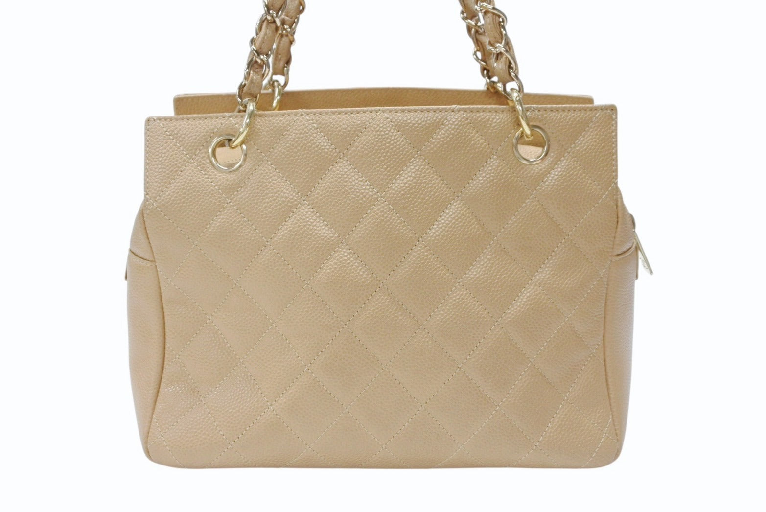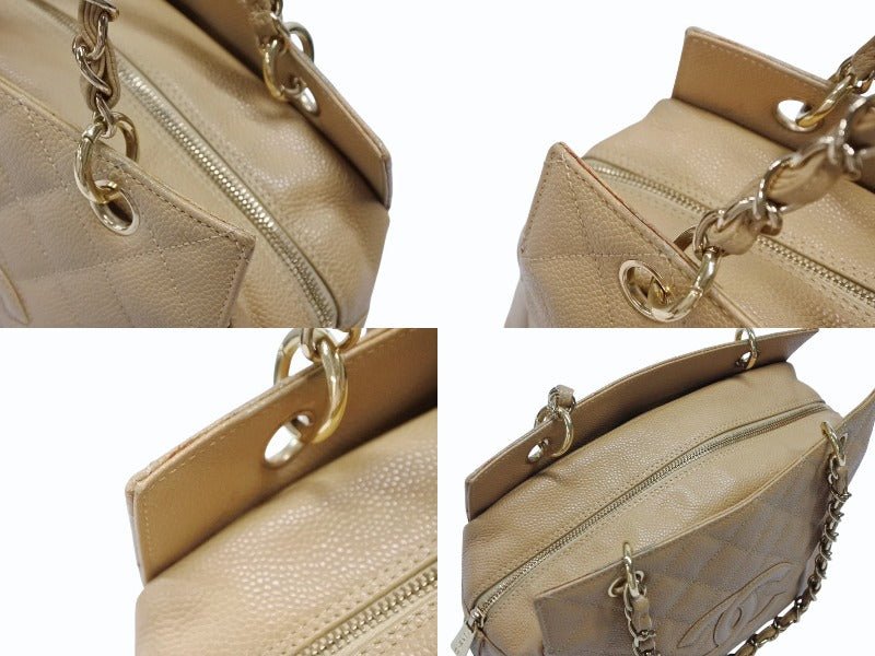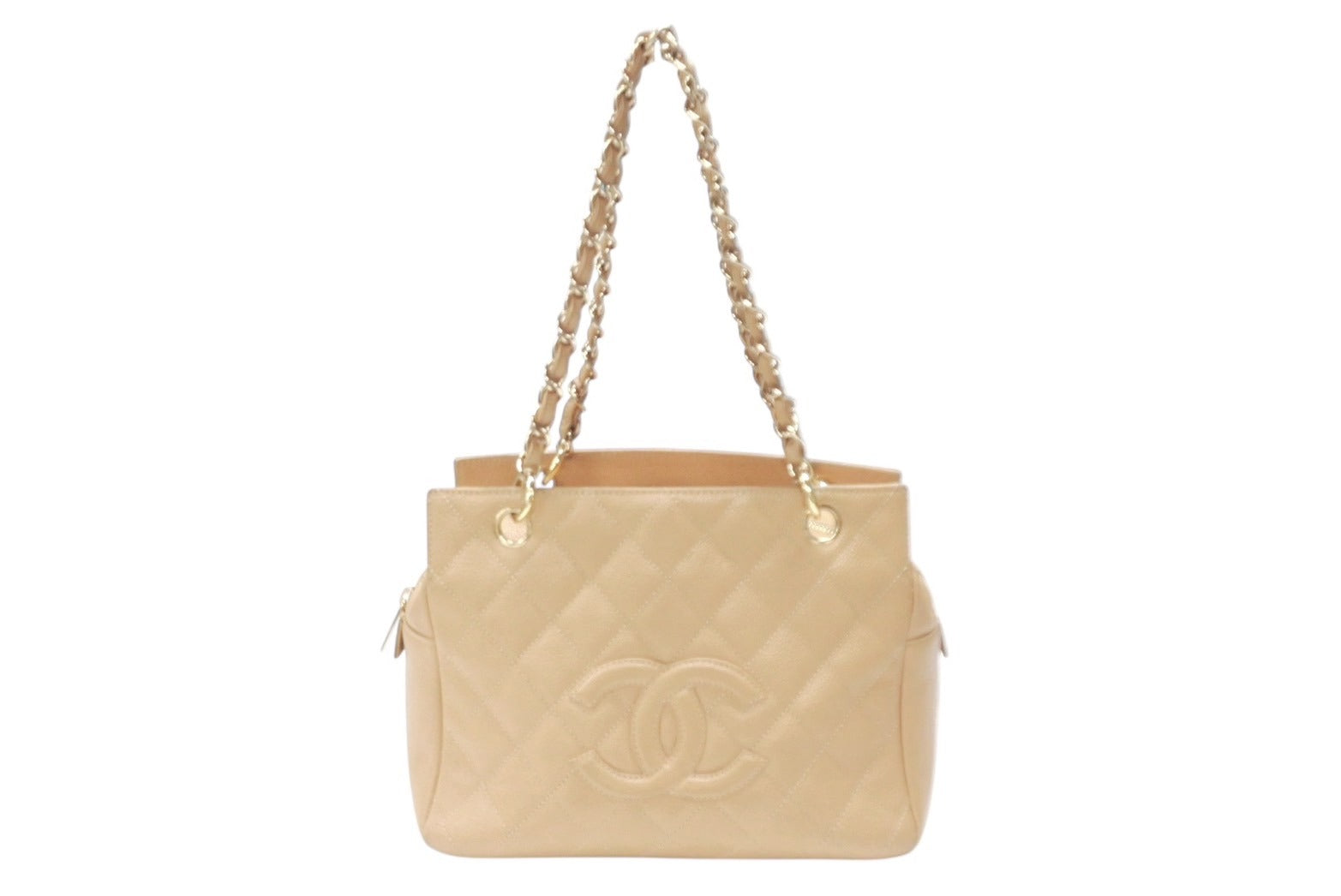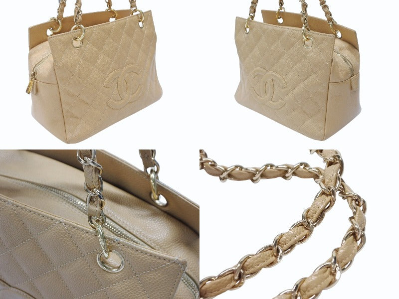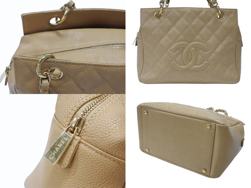 極美品 CHANEL シャネル PTT チェーントートバッグ ココマーク 7番台 キャビアスキン ブラウン ゴールド金具 中古 4b006546
