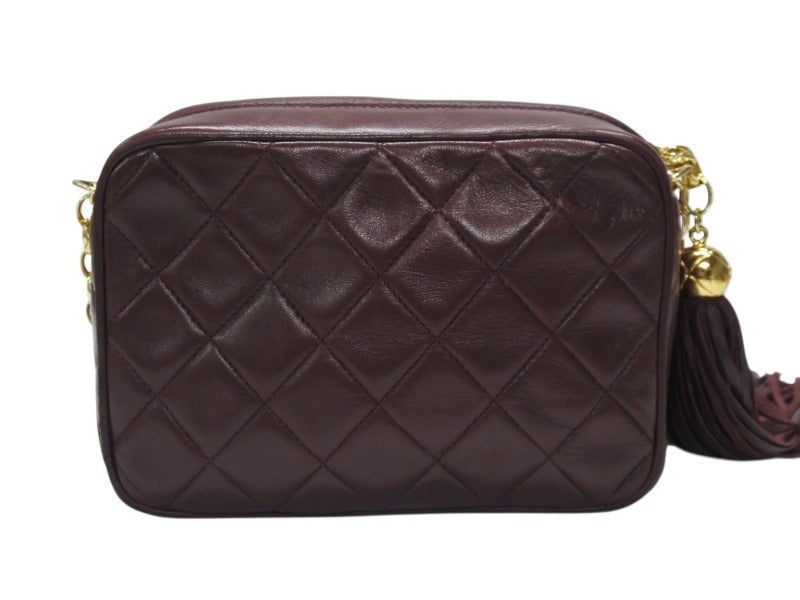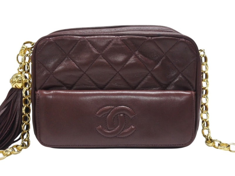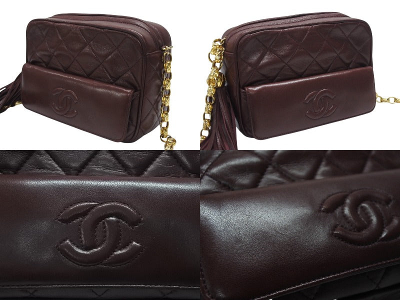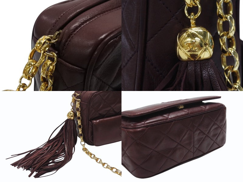 CHANEL シャネル チェーンショルダーバッグ 3番台 ココマーク フリンジ レザー ボルドー ゴールド金具 美品 中古 4b007025