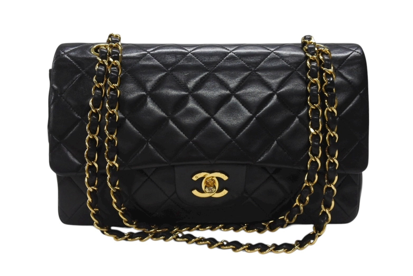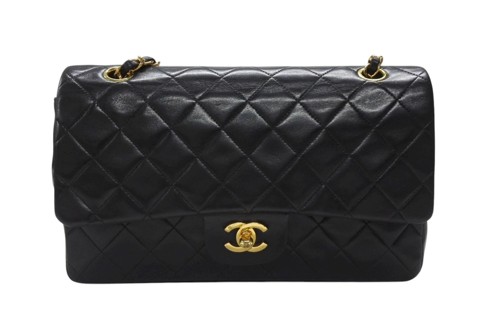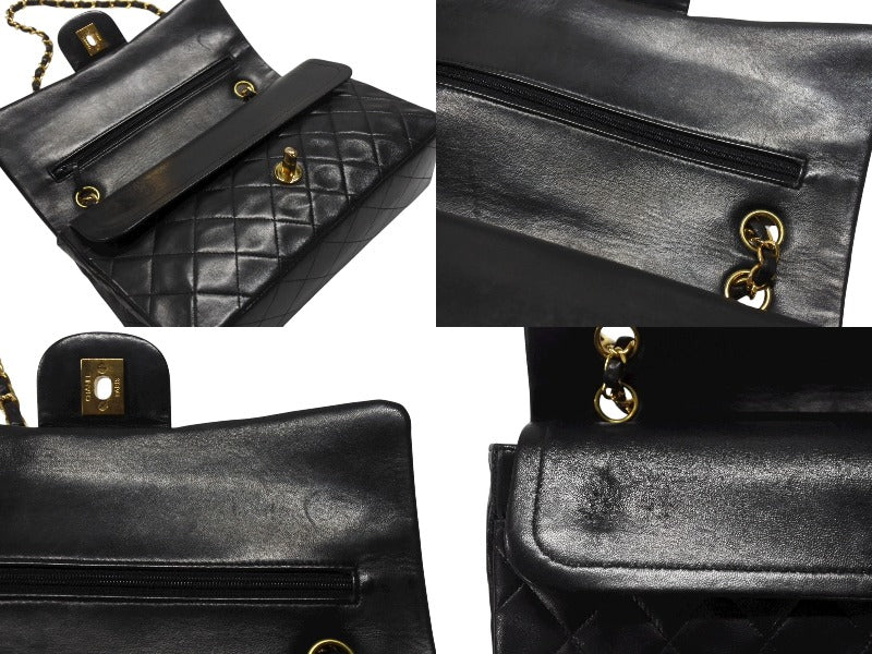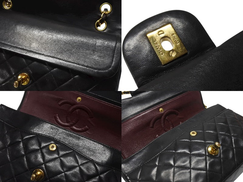 CHANEL シャネル マトラッセ25 Wフラップ Wチェーンショルダーバッグ 5番台 A1112 ラムスキン ブラック シルバー金具 美品 中古 4b007192