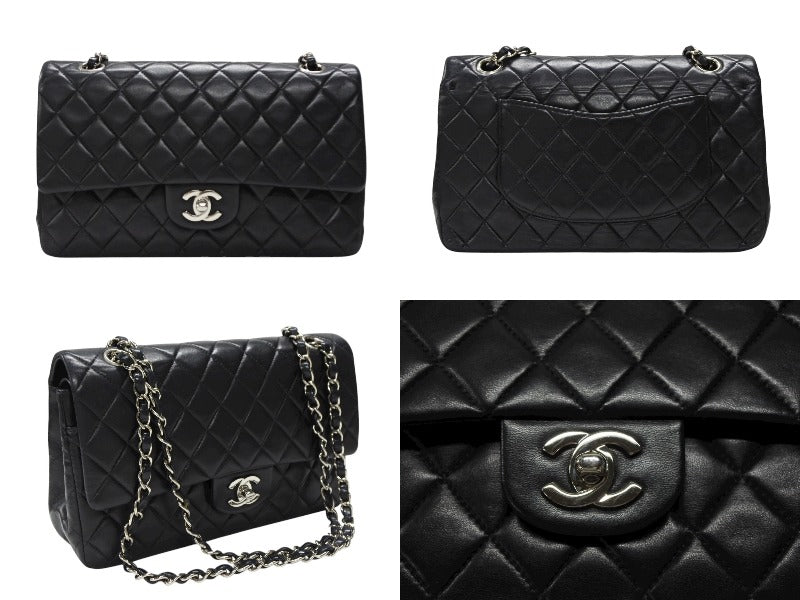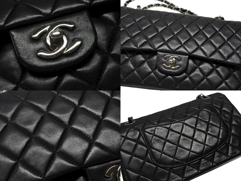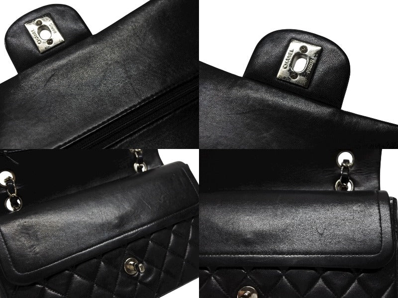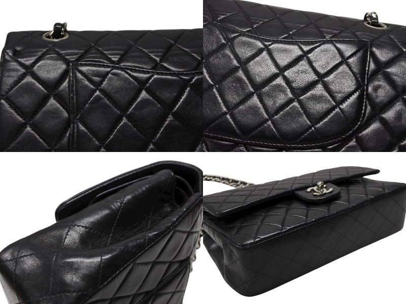 極美品 CHANEL シャネル マトラッセ25 Wフラップ Wチェーンショルダーバッグ ココマーク 7番台 ラムスキン ブラック シルバー金具 中古 4b007214