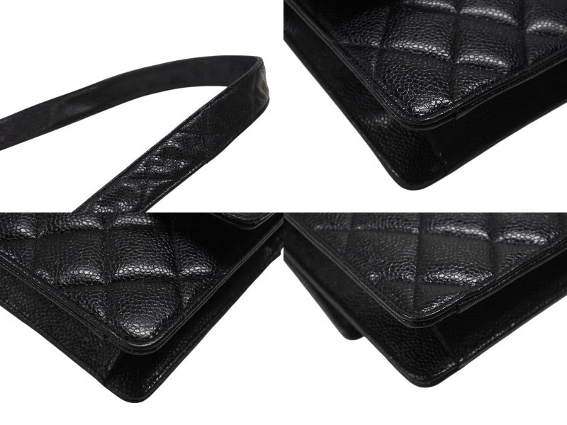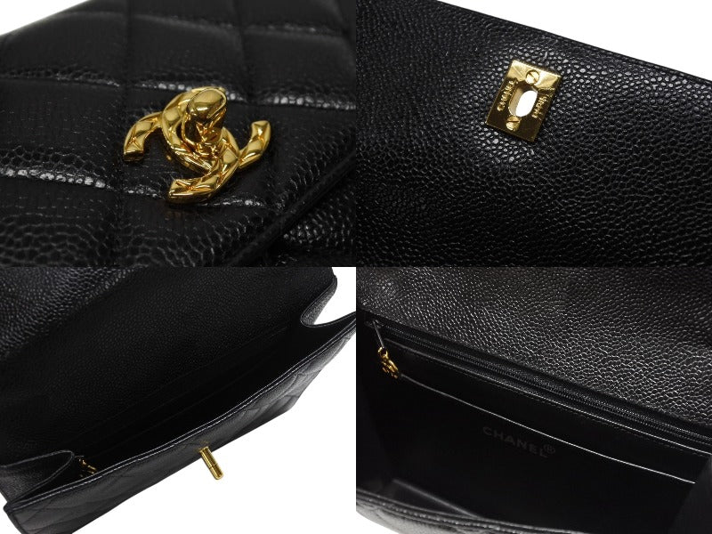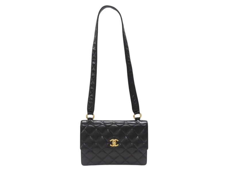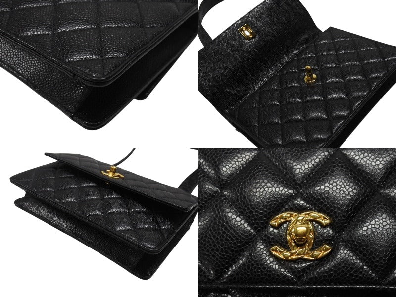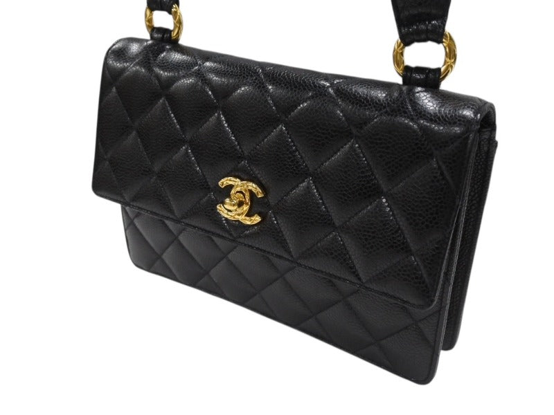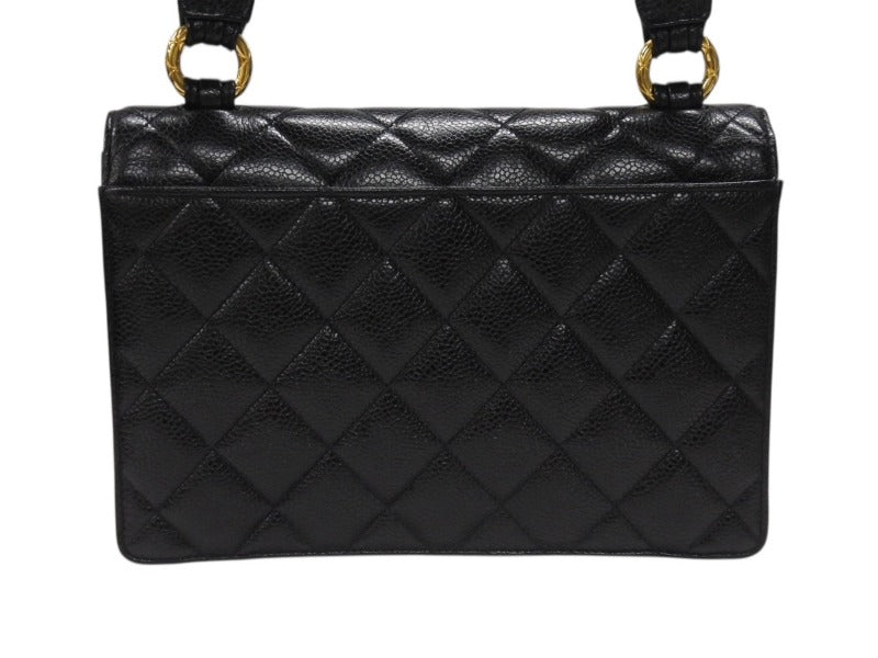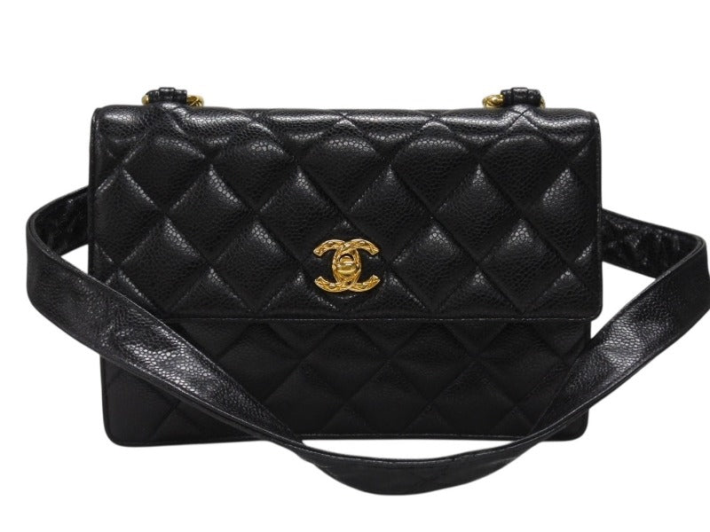 極美品 CHANEL シャネル ワンショルダーバッグ 2番台 キャビアスキン ココマーク ブラック ヴィンテージ ゴールド金具 中古 4b007226