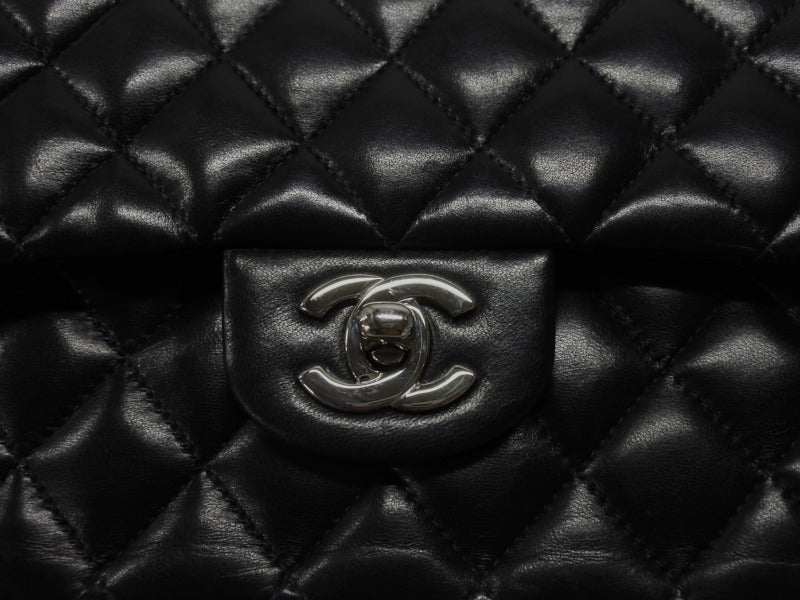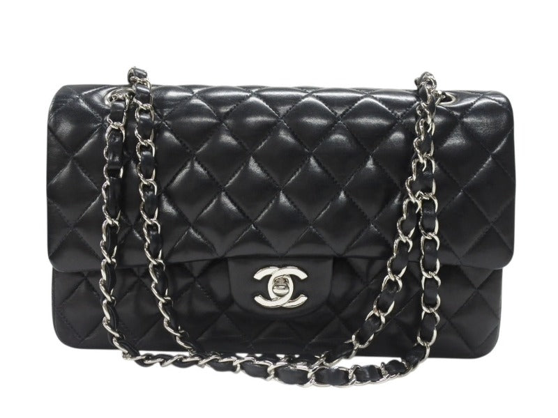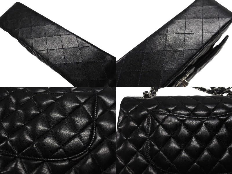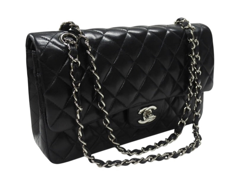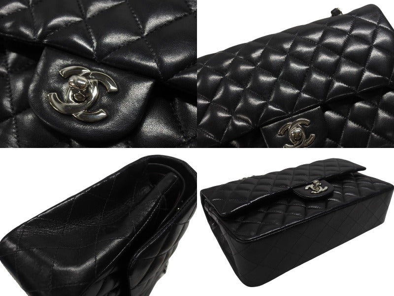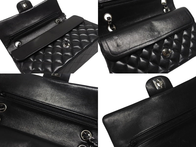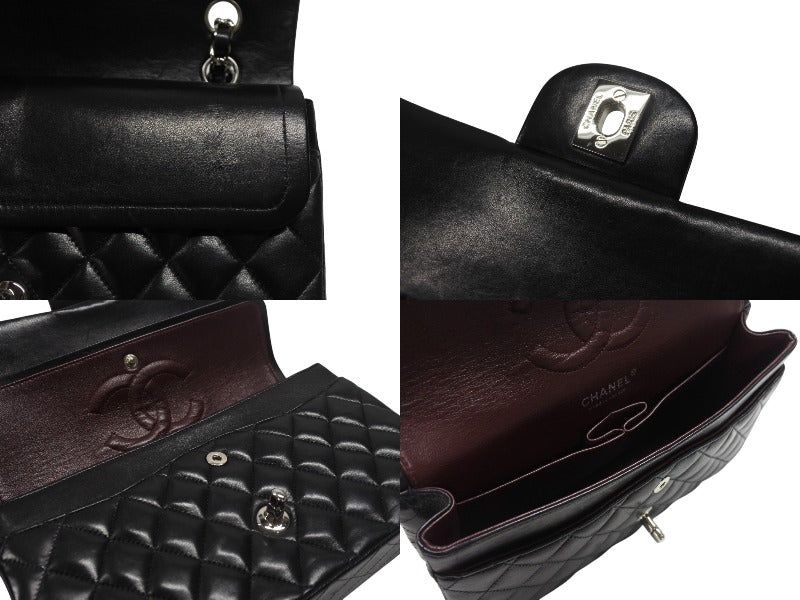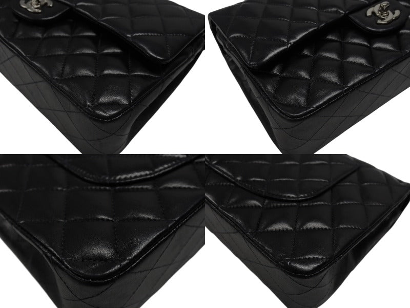 極美品 CHANEL シャネル マトラッセ25 Wフラップ Wチェーンショルダーバッグ 9番台 ラムスキン ココマーク ブラック シルバー金具 中古 4b007305