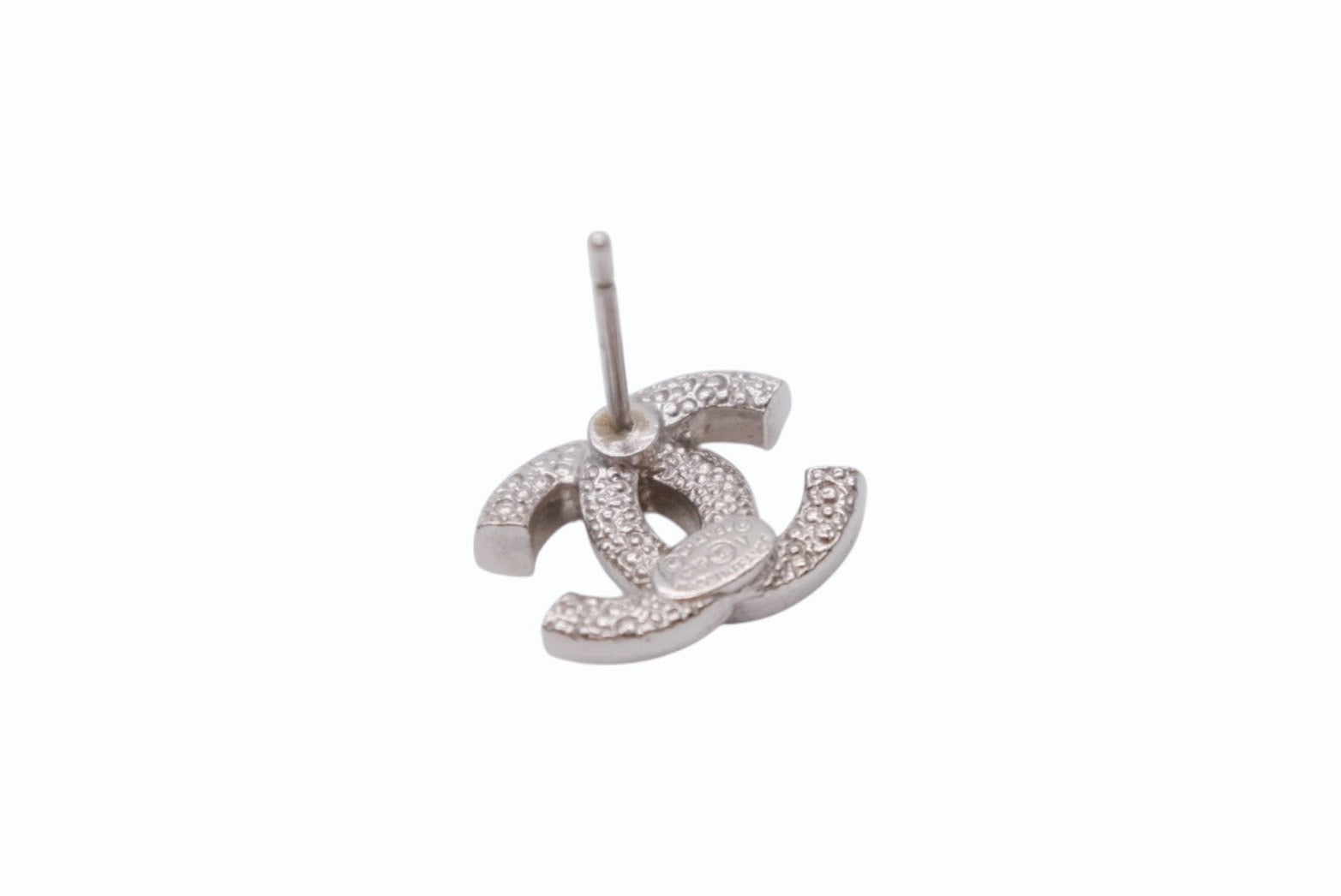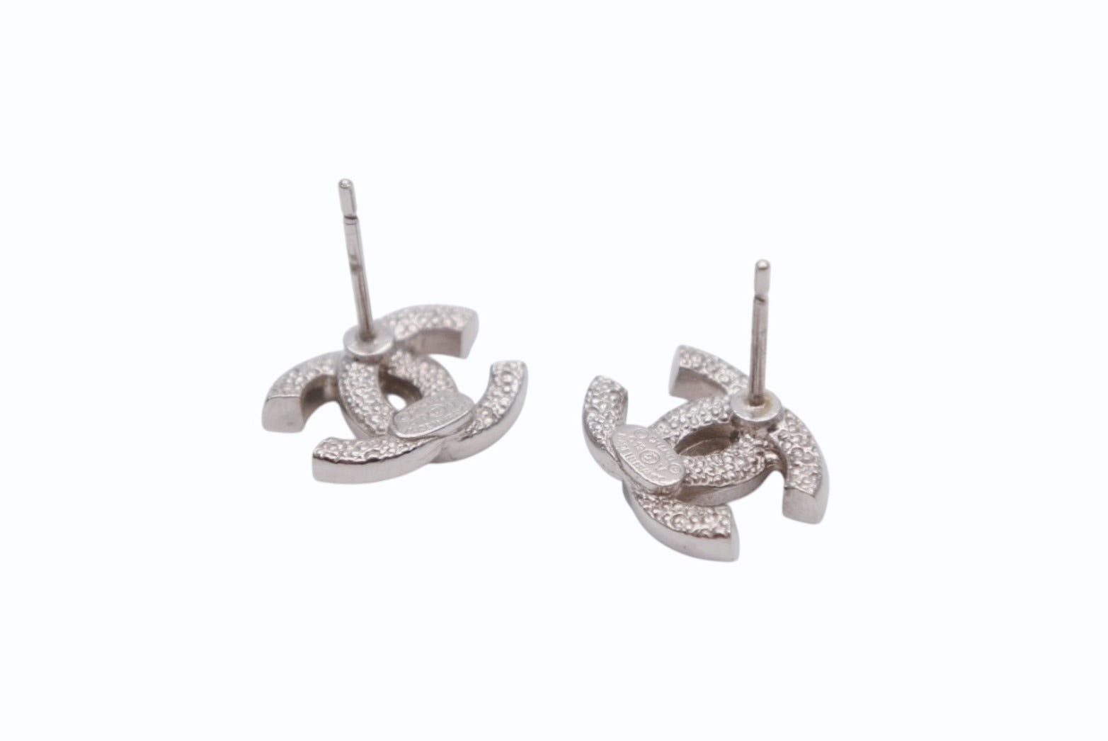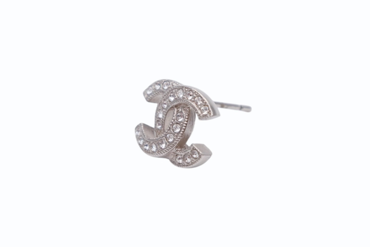 極美品 CHANEL シャネル ココマーク ピアス 重量約1.3g C19V刻印 ラインストーン メタル シルバー クリア 両耳用 中古 4b002817