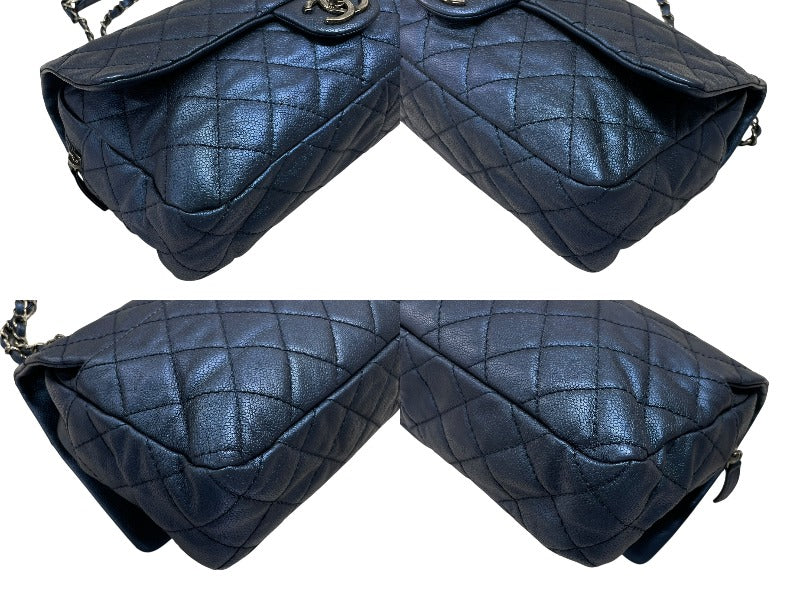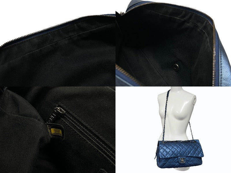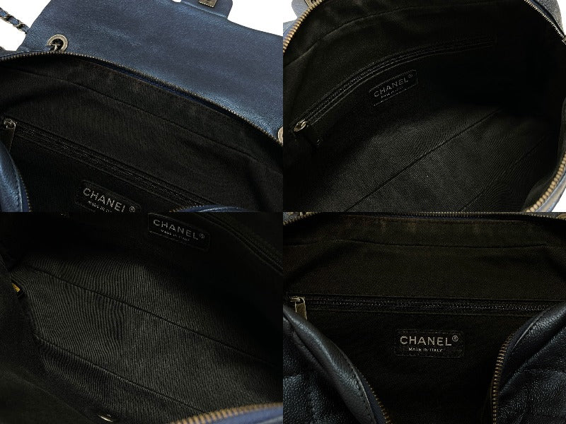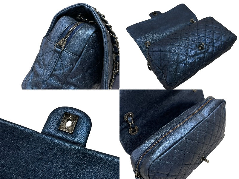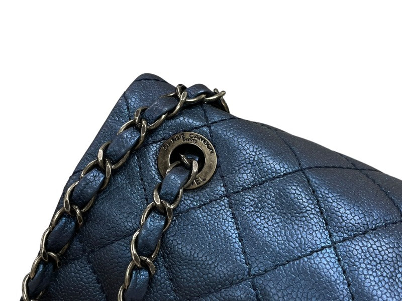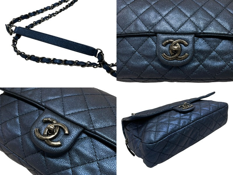 CHANEL シャネル Sフラップ Wチェーンショルダーバッグ 18番台 ココマーク キャビアスキン メタリックブルー 美品 中古 4b007489
