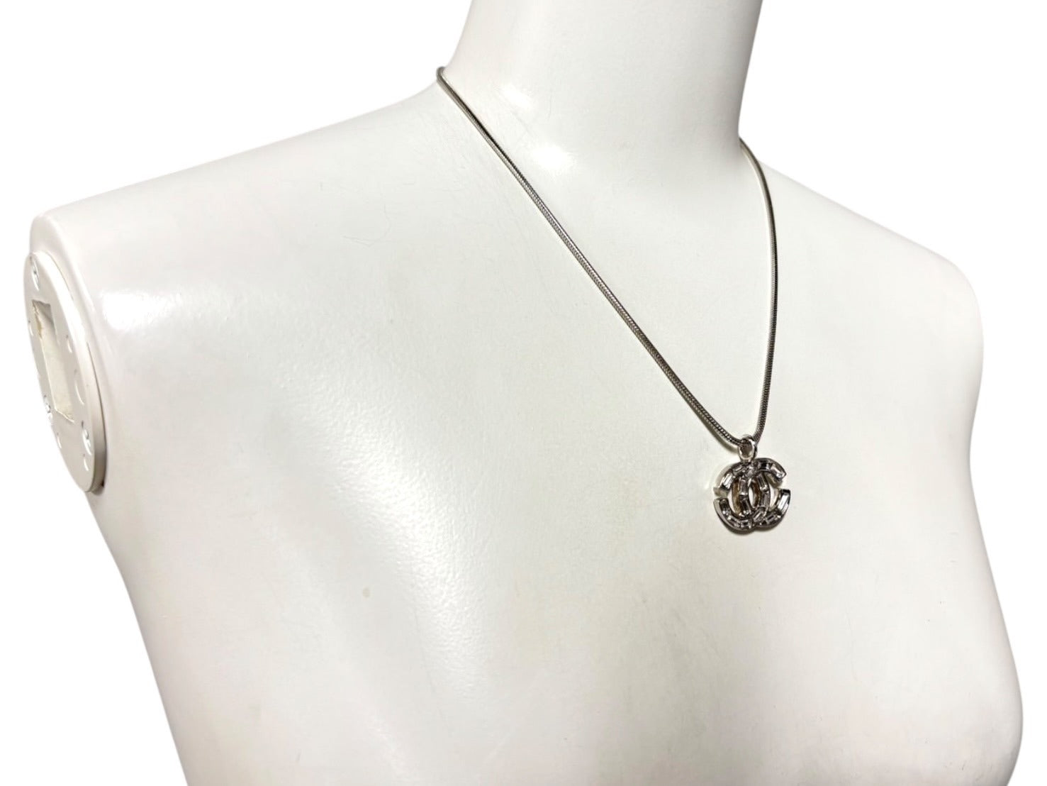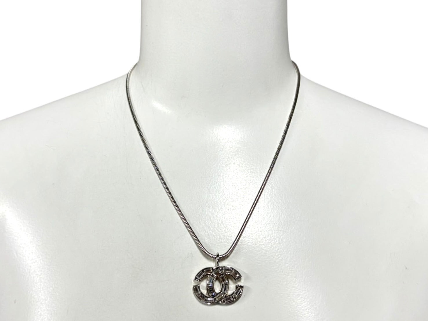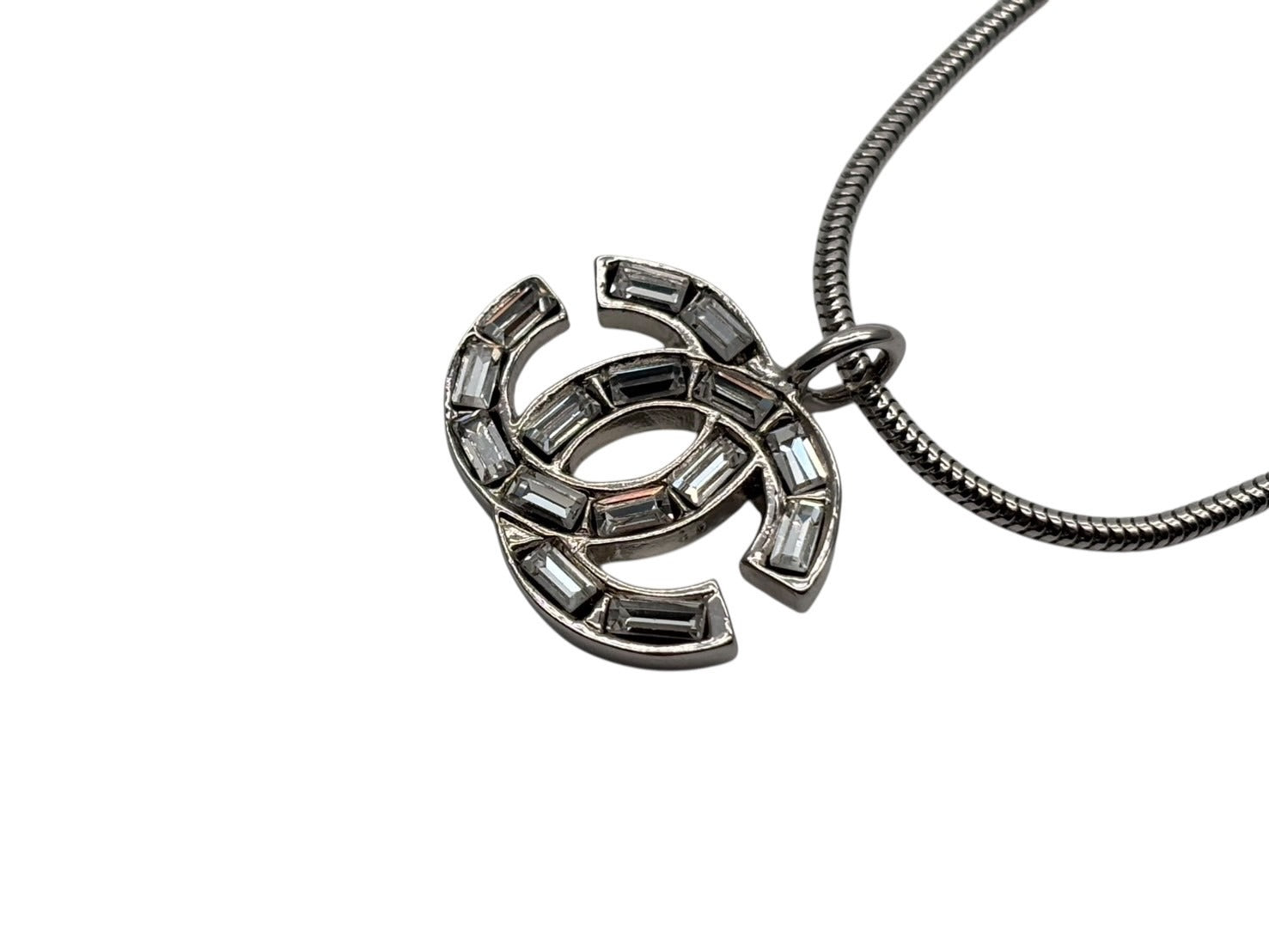 極美品 CHANEL シャネル ラインストーン ココマーク ネックレス 01P刻印 重量10.0g シルバー金具 中古 4b007583
