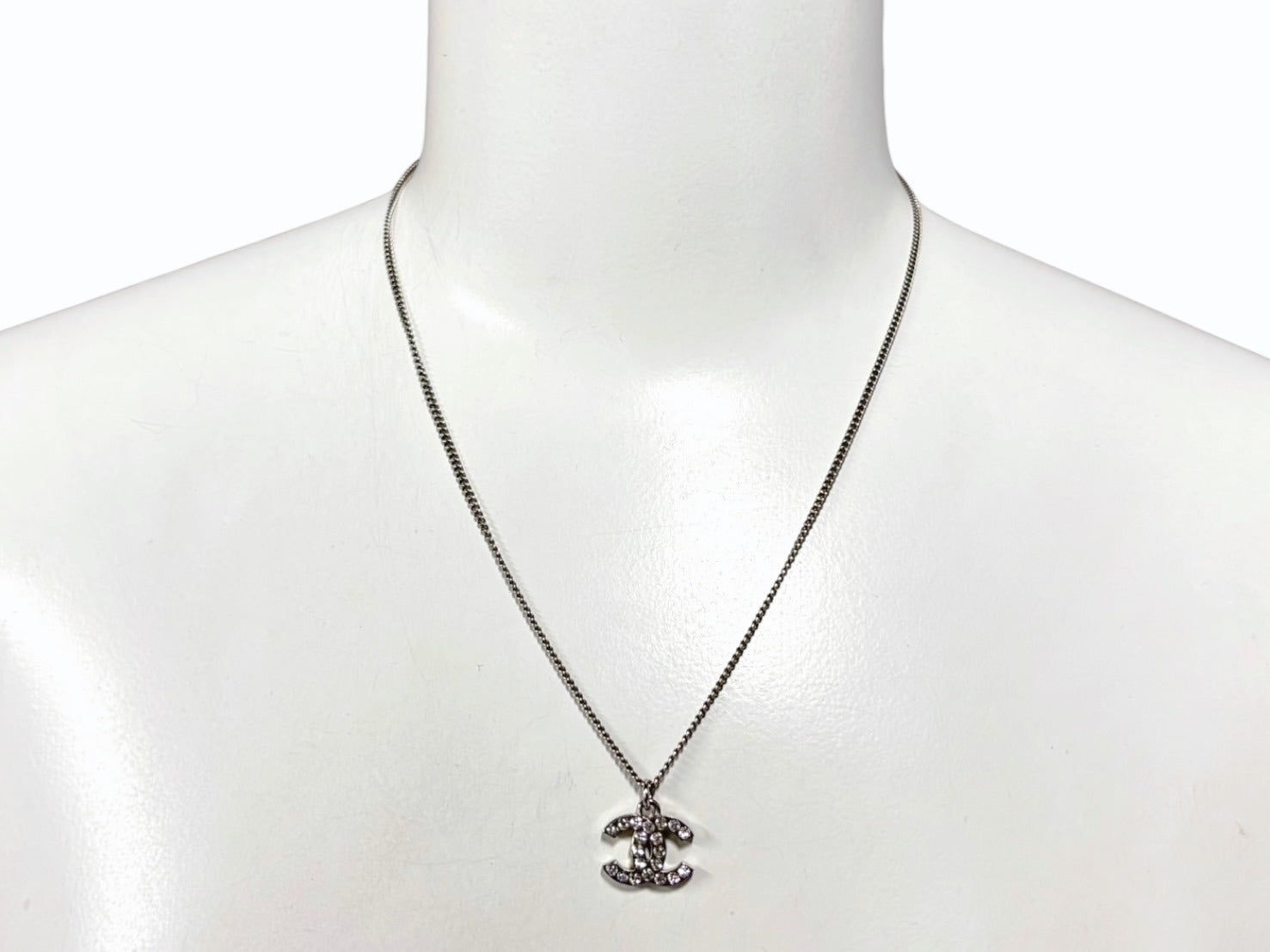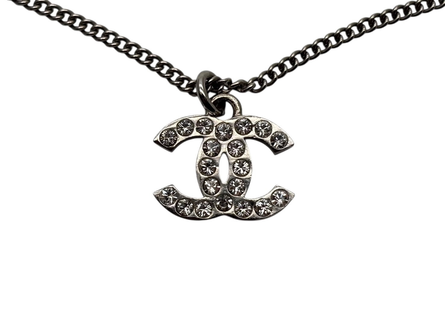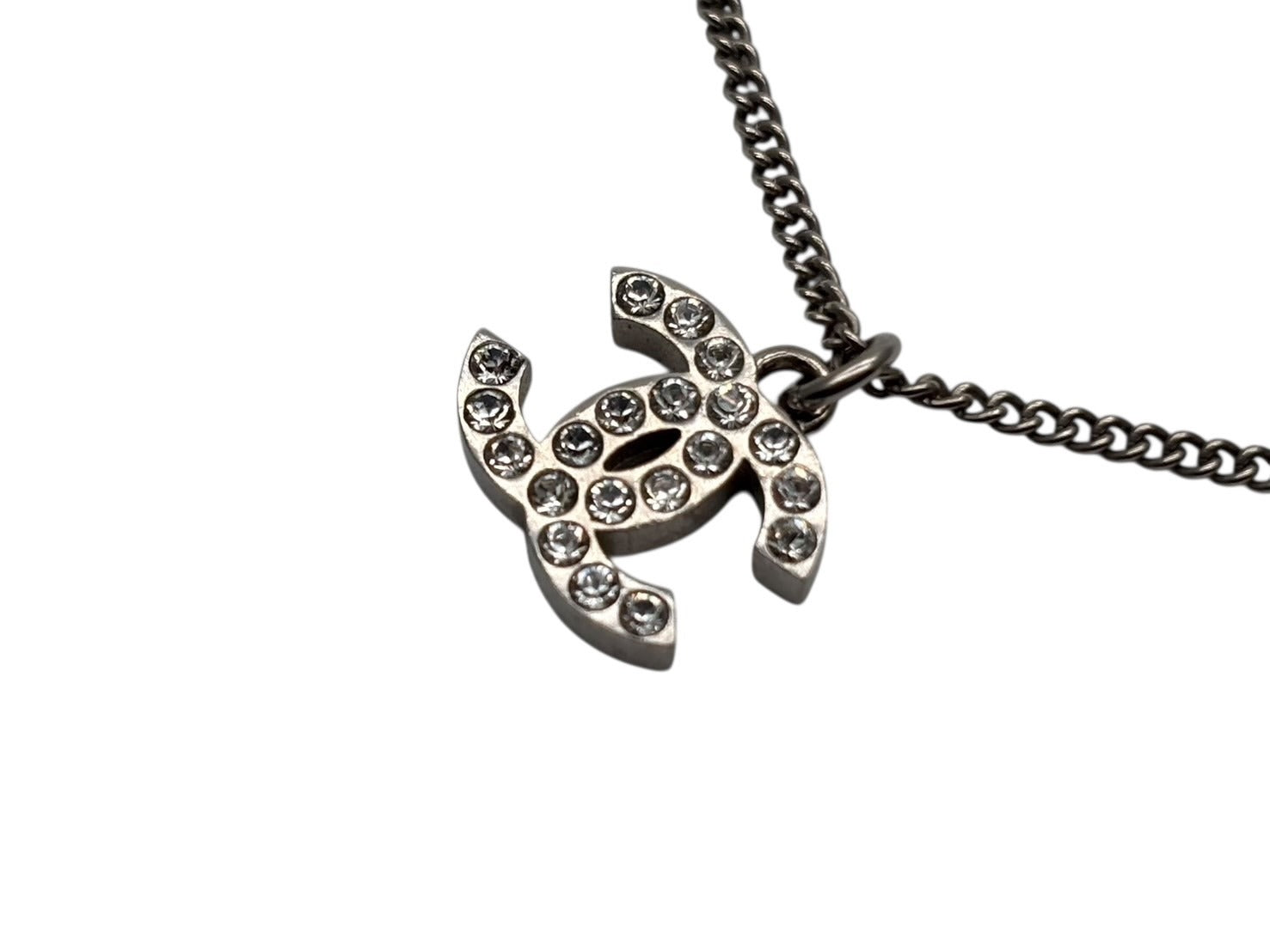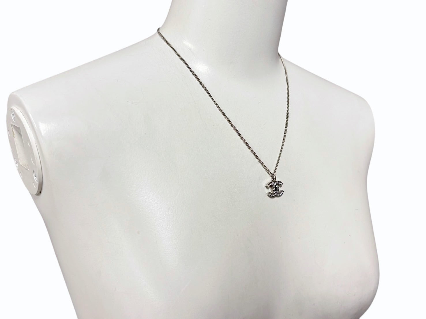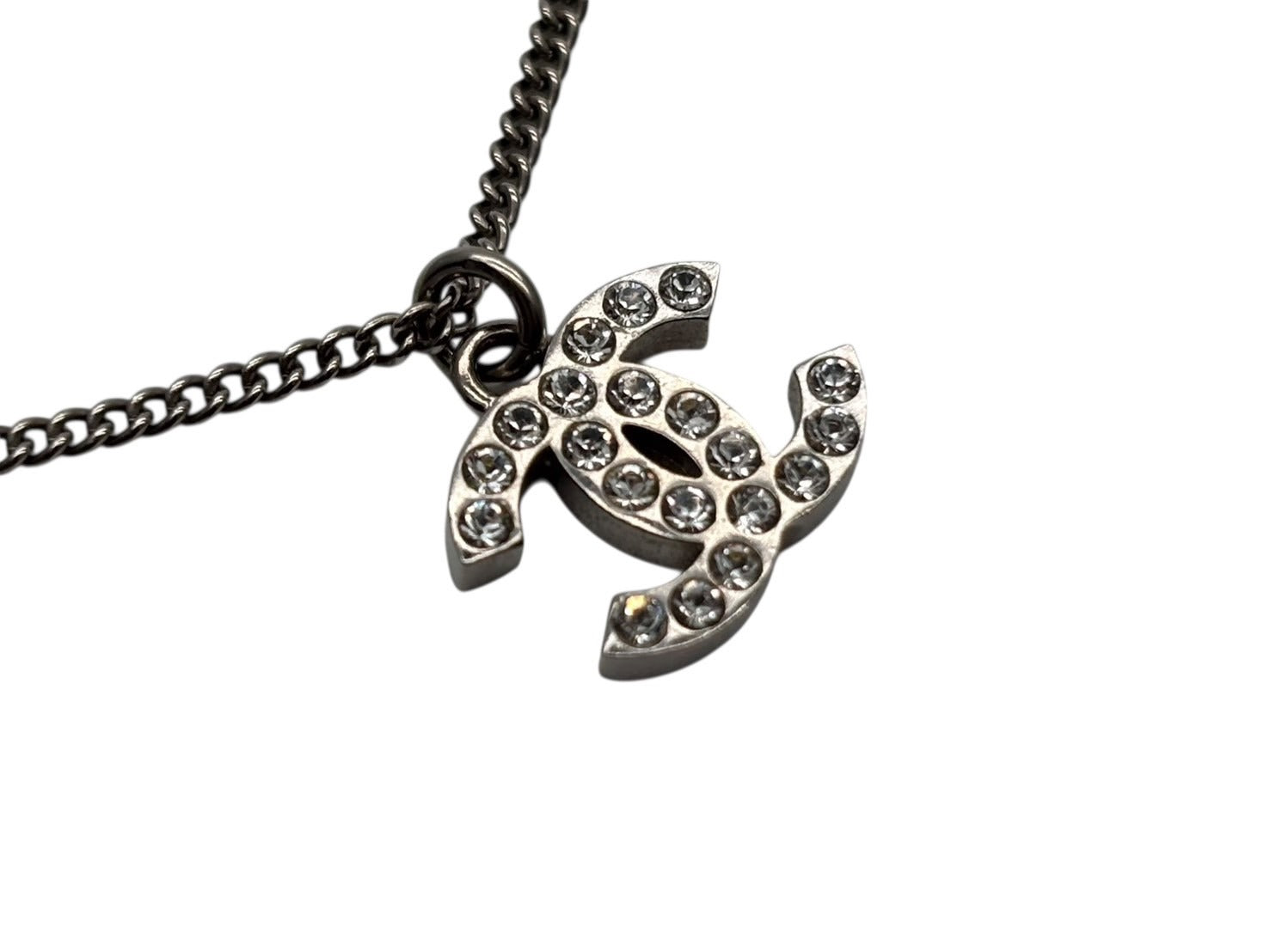CHANEL シャネル ココマーク ラインストーン ネックレス 重量4.9g F14V刻印 メタル シルバー 美品 中古 4b007585