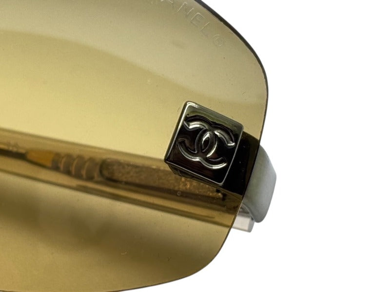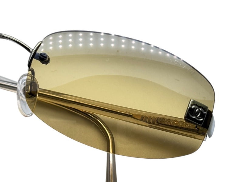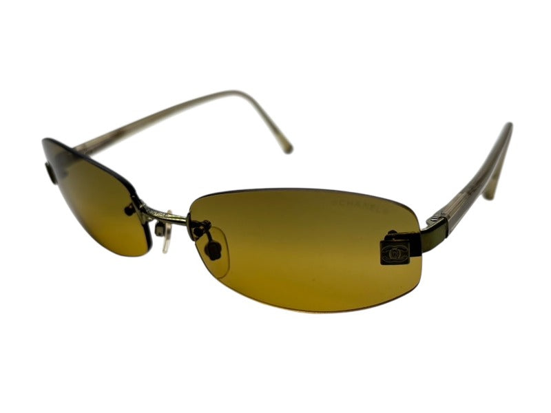 極美品 CHANEL シャネル リムレス サングラス ココマーク イタリア製 プラスチック カーキ 中古 4b007586
