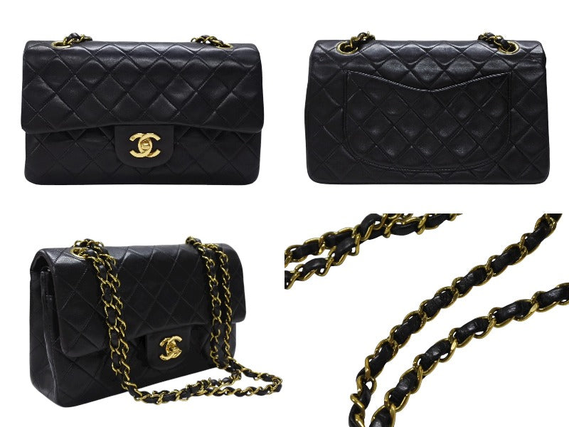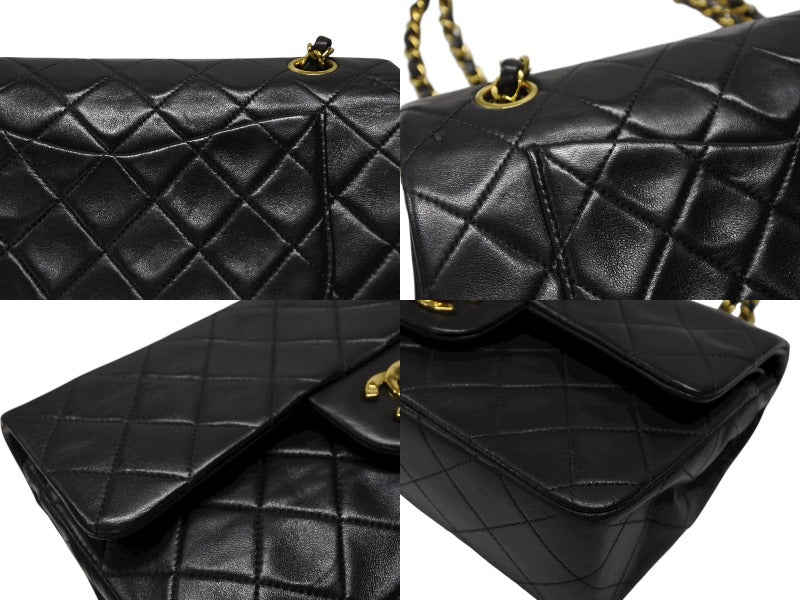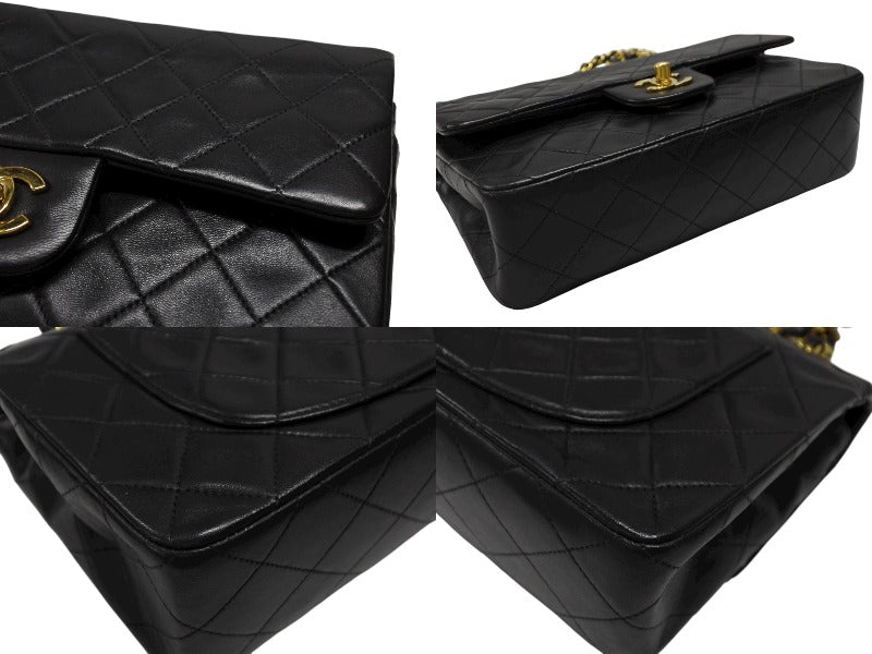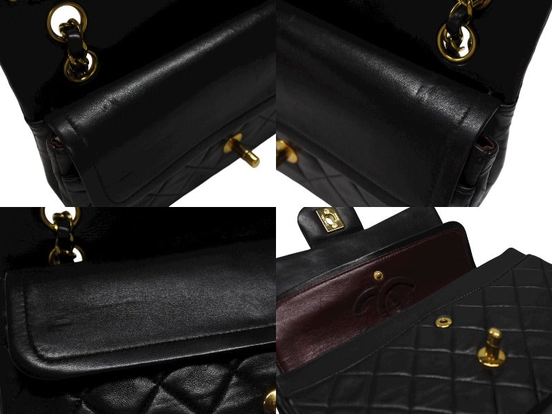 極美品 CHANEL シャネル マトラッセ23 Wフラップ Wチェーンショルダーバッグ A01113 2番台 ココマーク ラムスキン ブラック 中古 4b007593