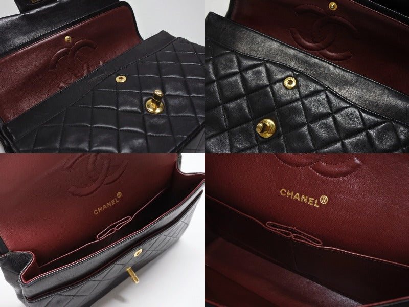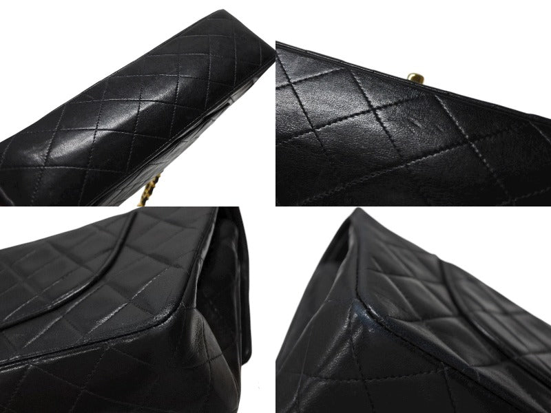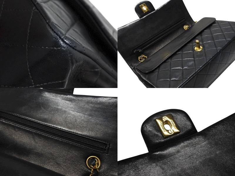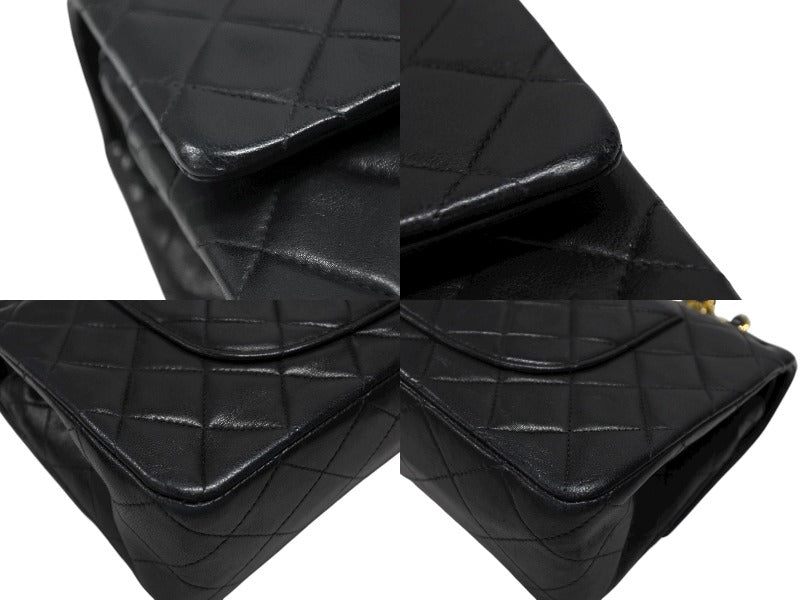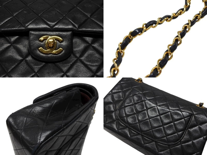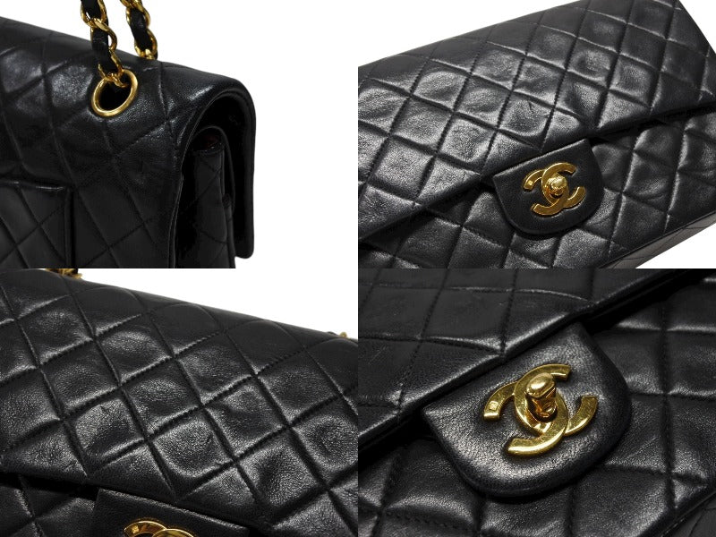 CHANEL シャネル マトラッセ25 Wフラップ Wチェーンショルダーバッグ 2番台 ラムスキン ココマーク ブラック ゴールド金具 美品 中古 4b007650