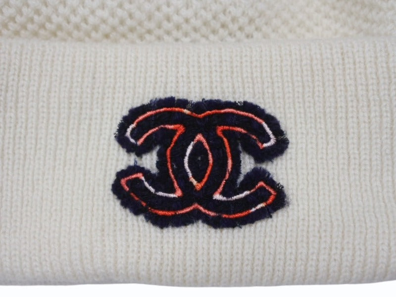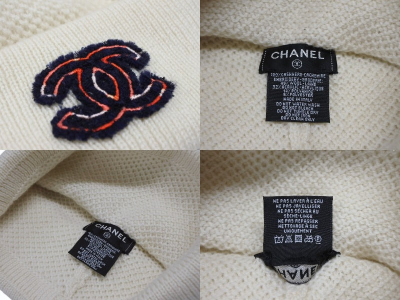 極美品 CHANEL シャネル 23AW CC Logo Beanie CCロゴ ビーニー AA6880 ココマーク カシミヤ アイボリー ジェニー着用モデル 中古 4b007699