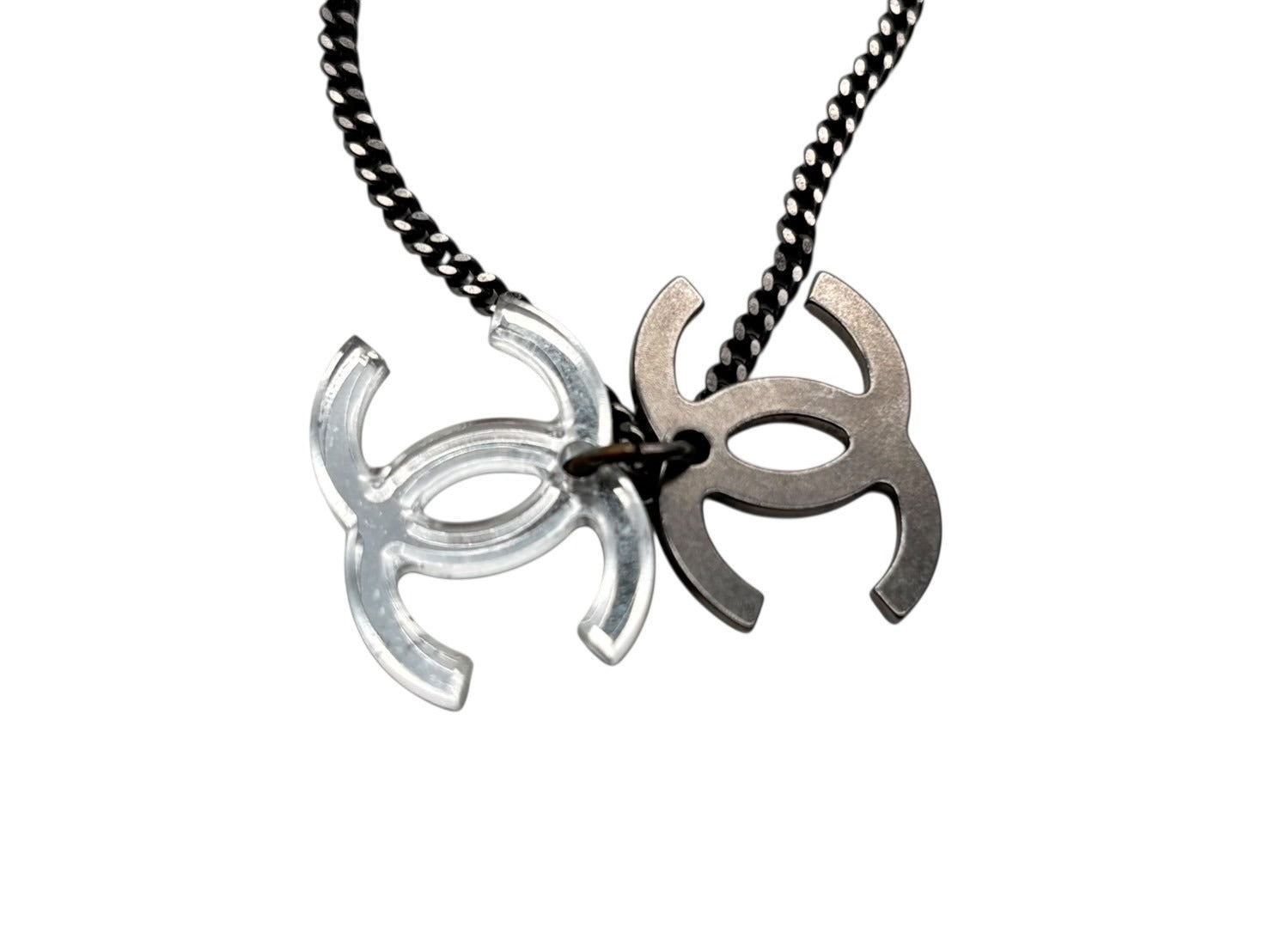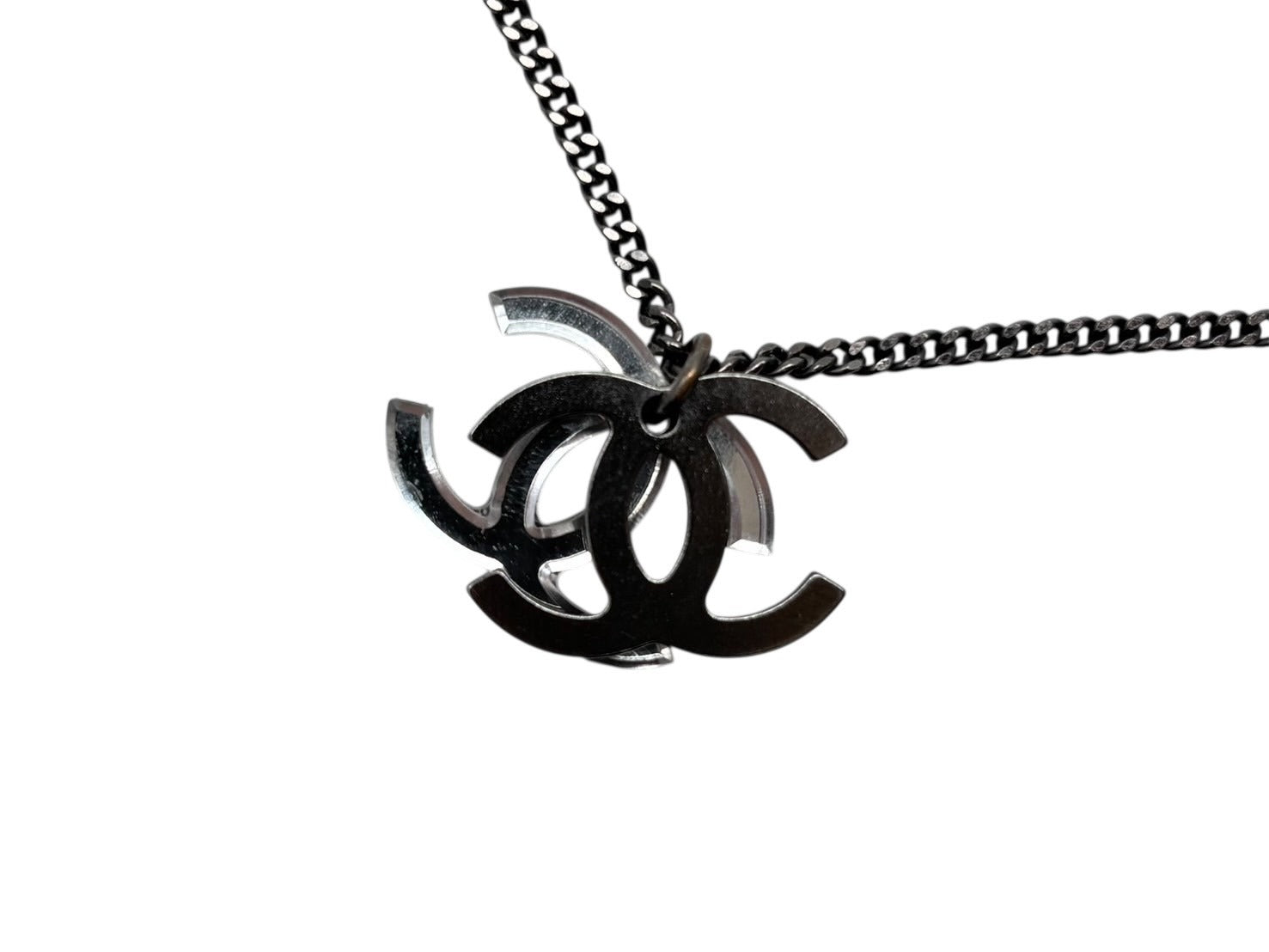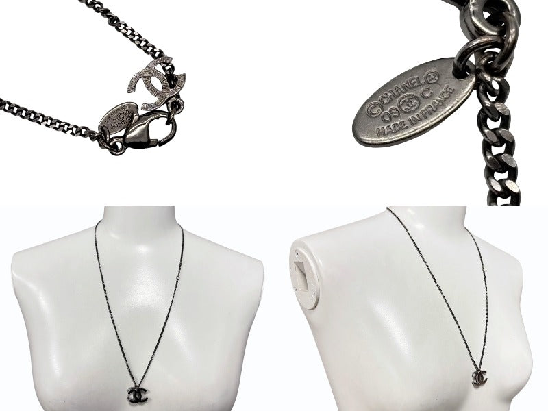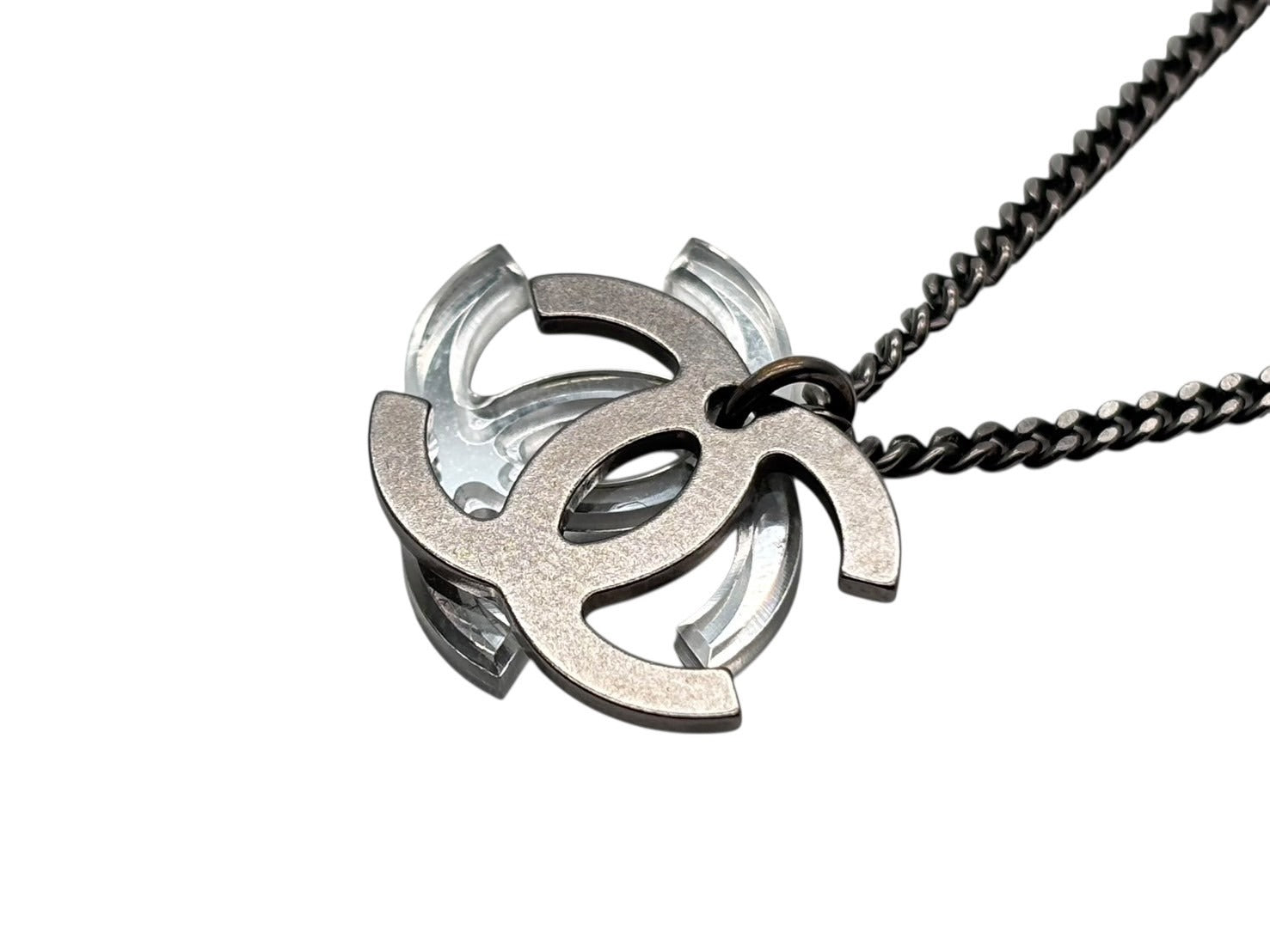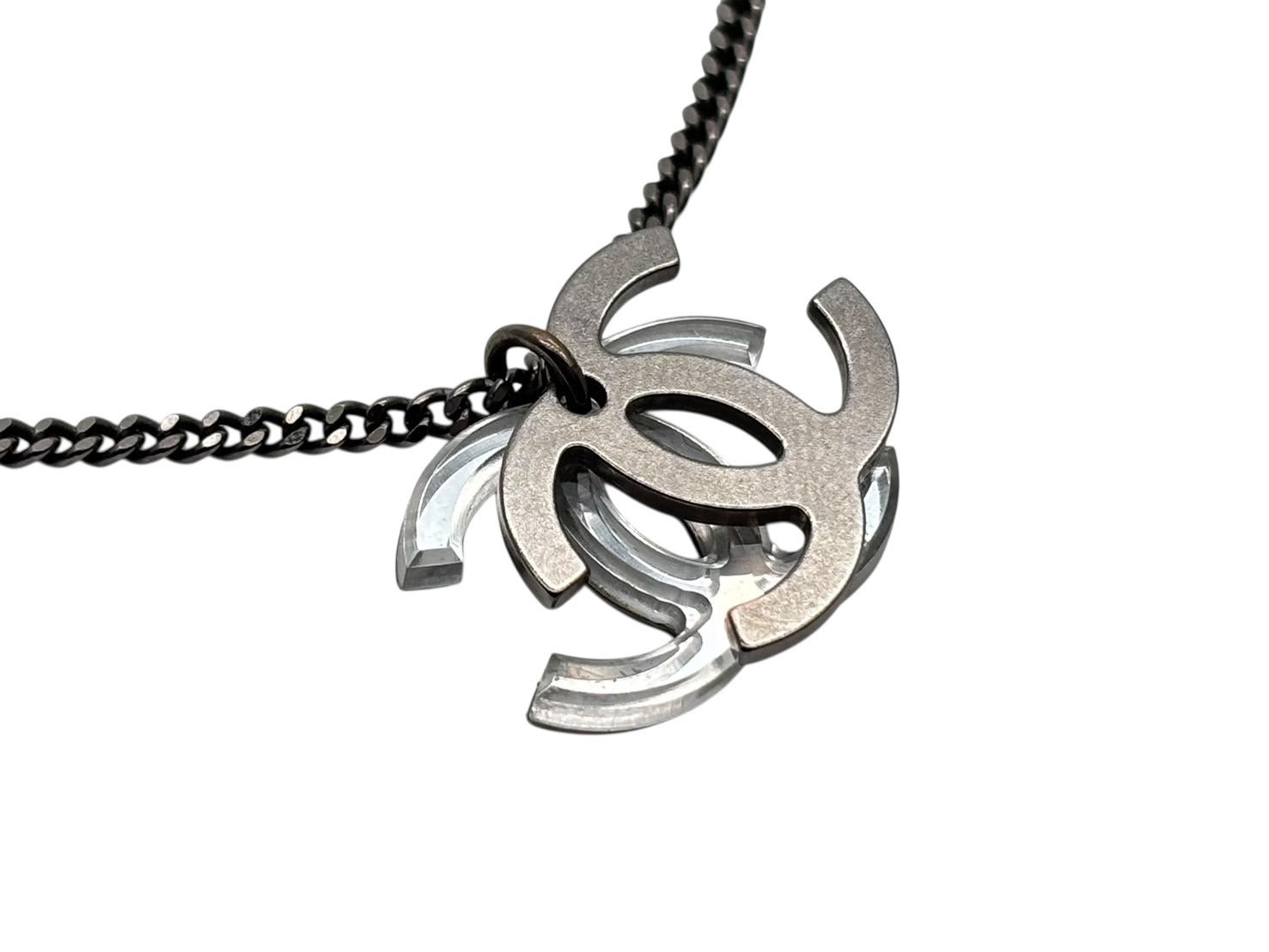 CHANEL シャネル ダブル ココマーク ネックレス 09A刻印 重量11.0g クリア ロゴ シルバー金具 美品 中古 4b007758