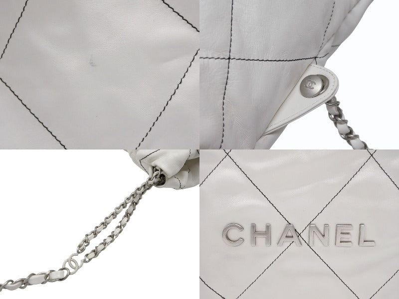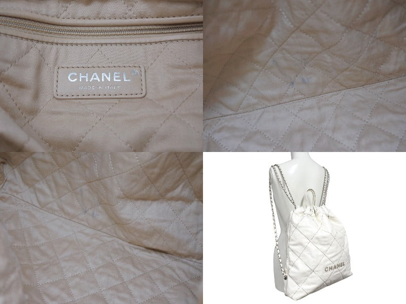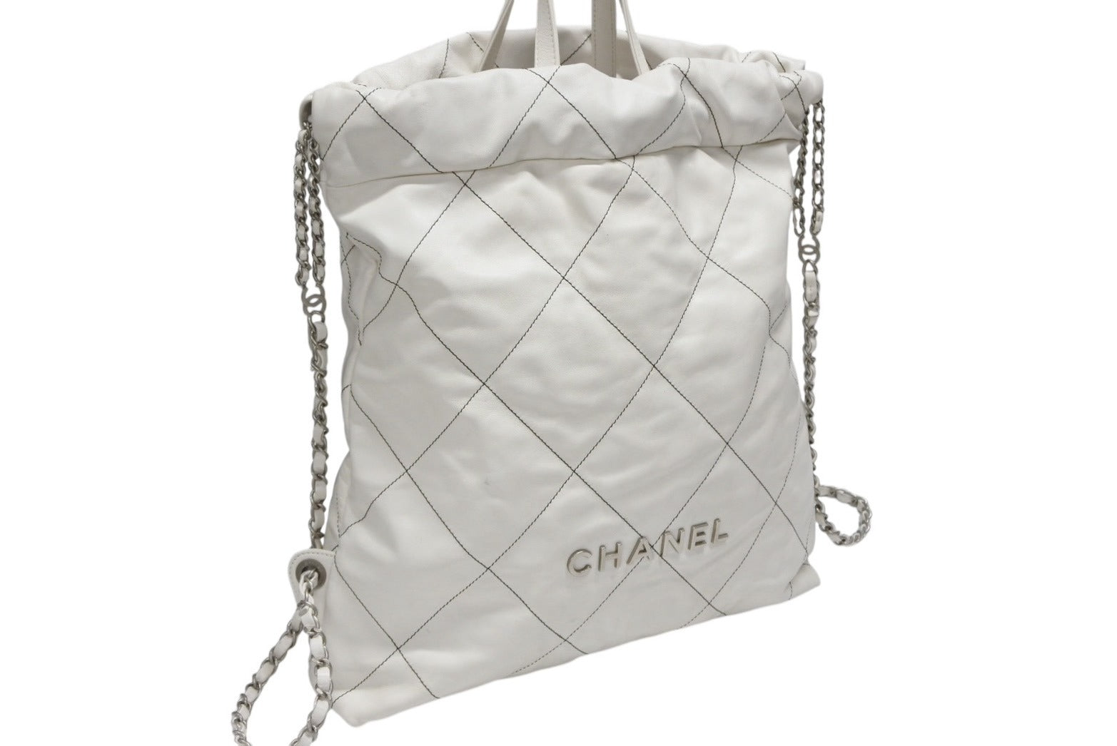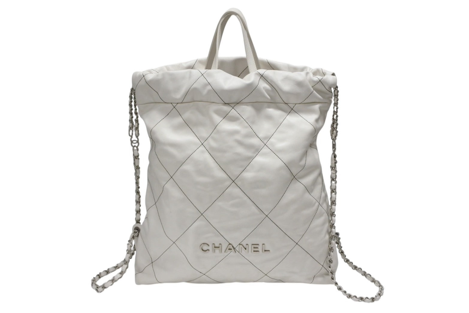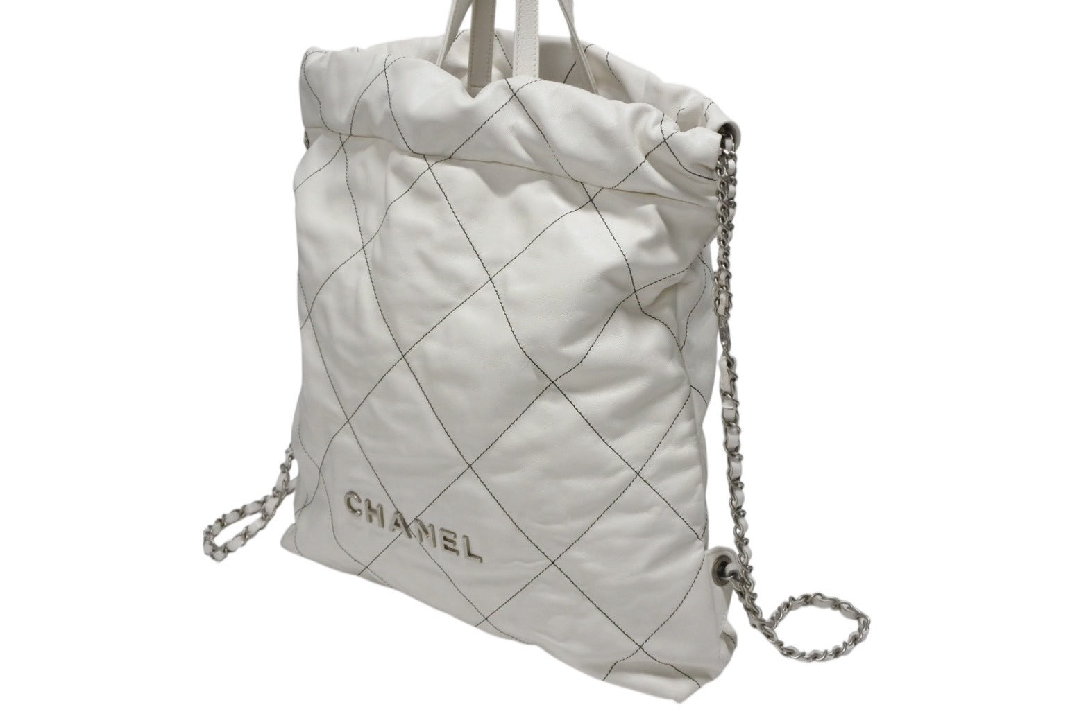 CHANEL シャネル CHANEL22 チェーンショルダーリュック ラージ 2WAY AS3313 ランダム番台 カーフ ココマーク ホワイト 美品 中古 4b007871