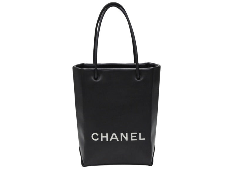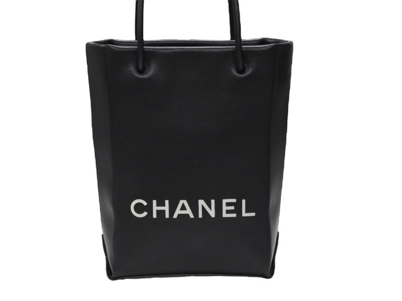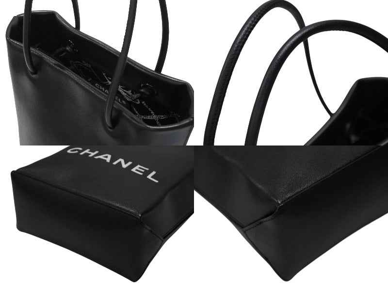 極美品 CHANEL シャネル スモール トート エッセンシャル 12番台 A46880 ラムスキン ロゴ ブラック シルバー金具 中古 4b007948