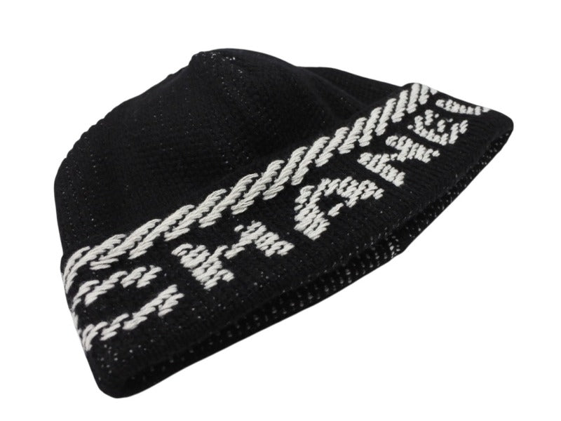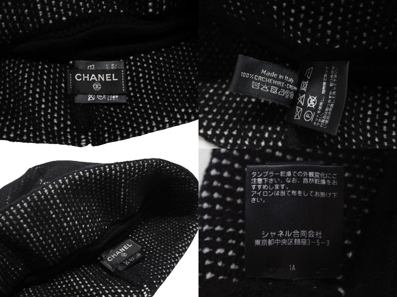 新品同様 CHANEL シャネル ビーニー ニットキャップ ニット帽 AA8449 ロゴ カシミヤ ブラック ホワイト 中古 4b007994