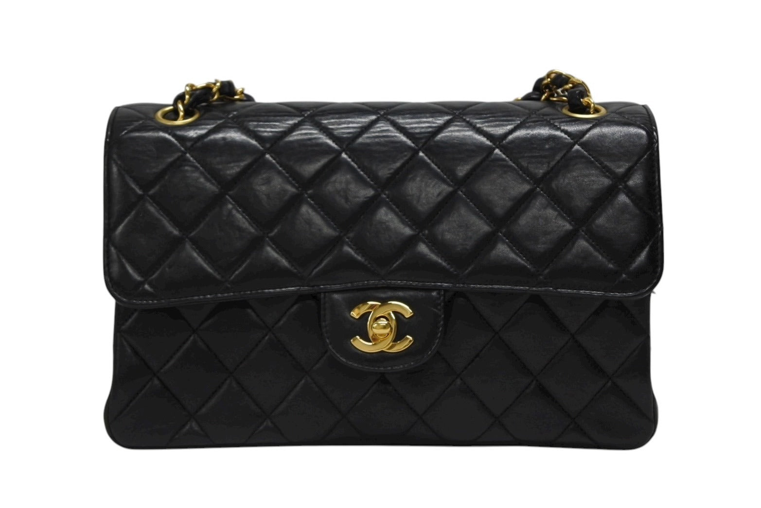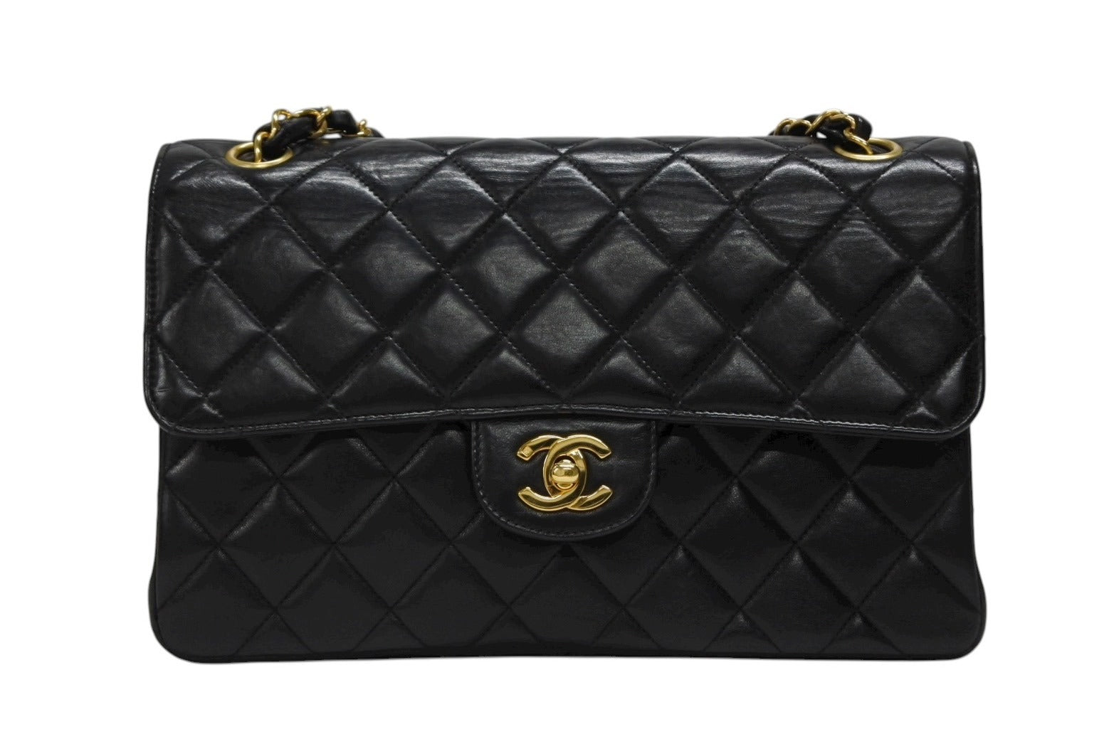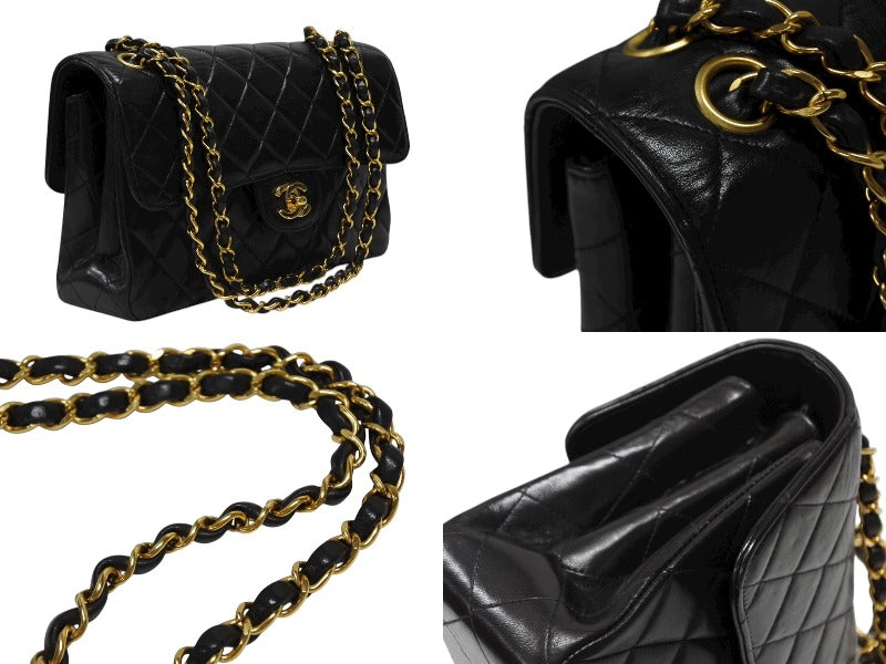 CHANEL シャネル ダブルフェイス マトラッセ25 Sフラップ Wチェーンワンショルダーバッグ 4番台 ココマーク ラムスキン 美品 中古 4b009056