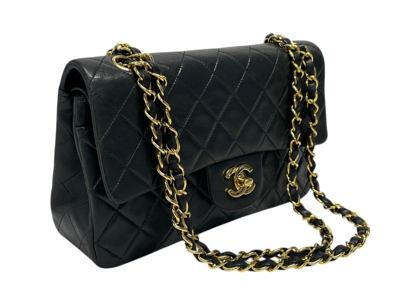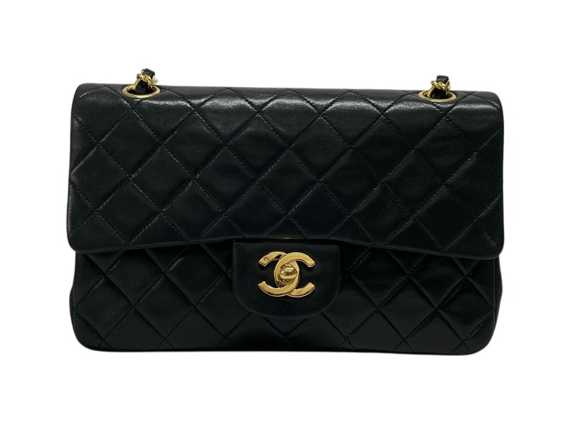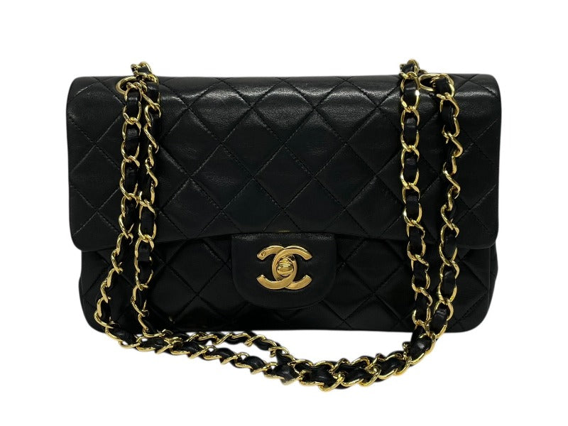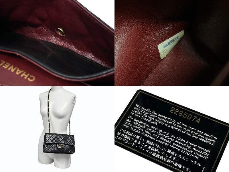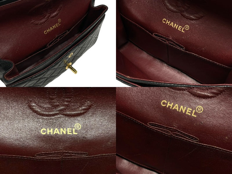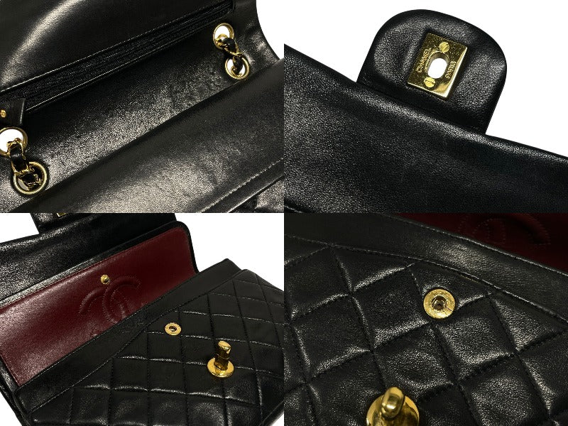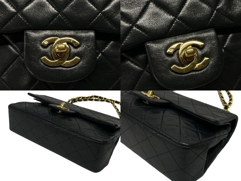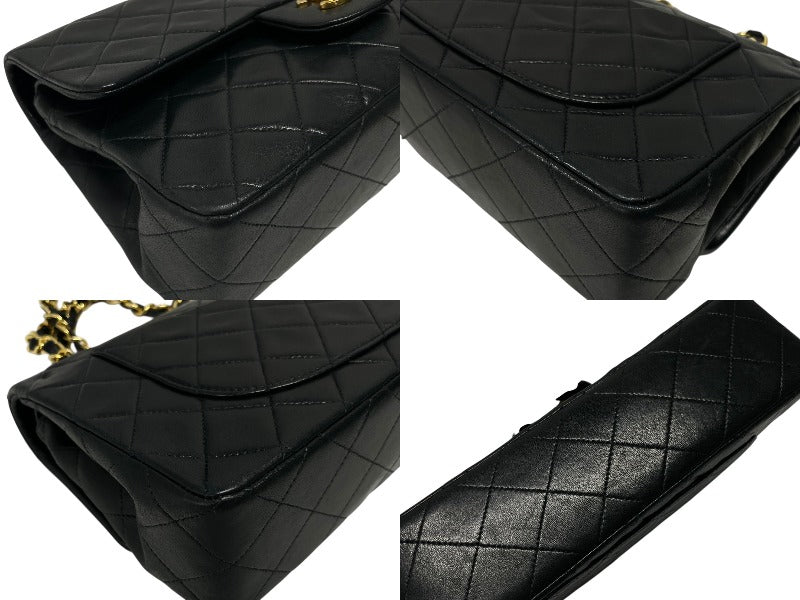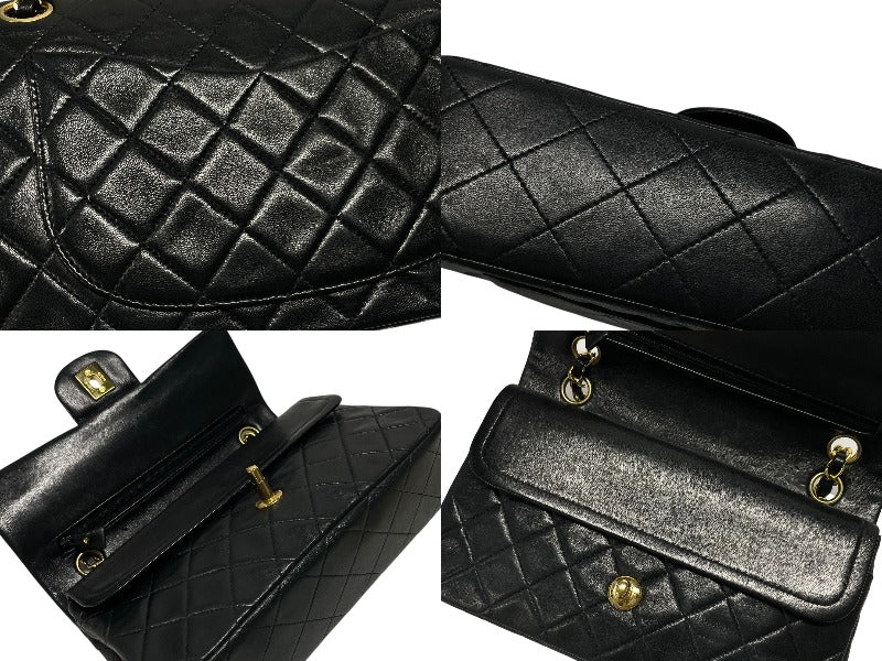 極美品 CHANEL シャネル マトラッセ23 Wフラップ Wチェーンショルダーバッグ 2番台 ココマーク ラムスキン ブラック ゴールド金具 中古 4b009165