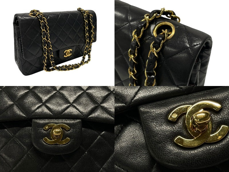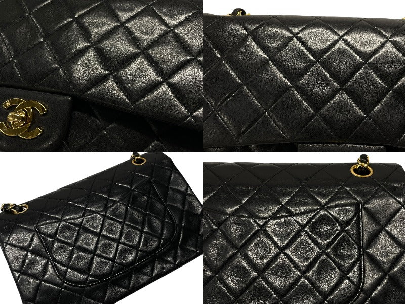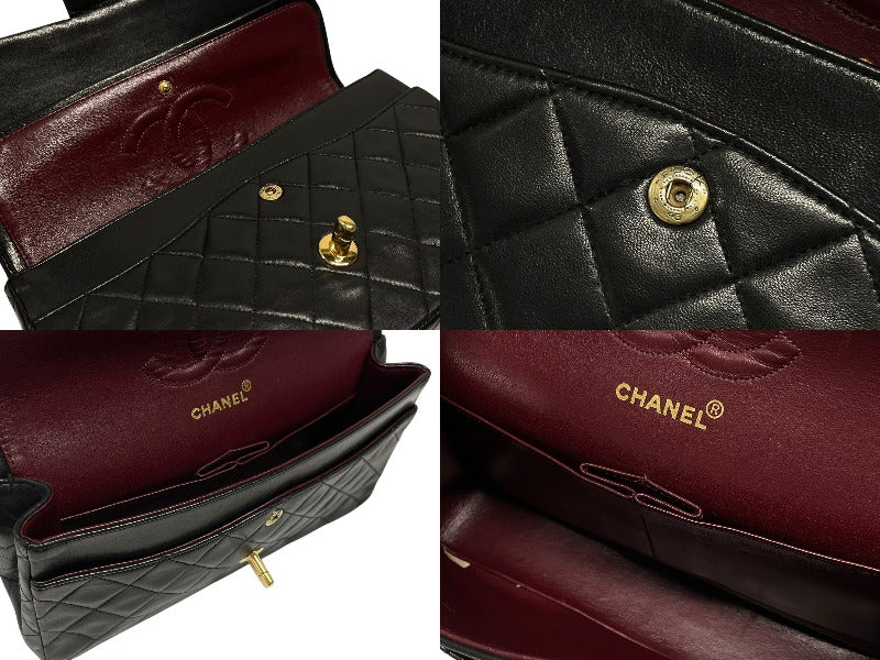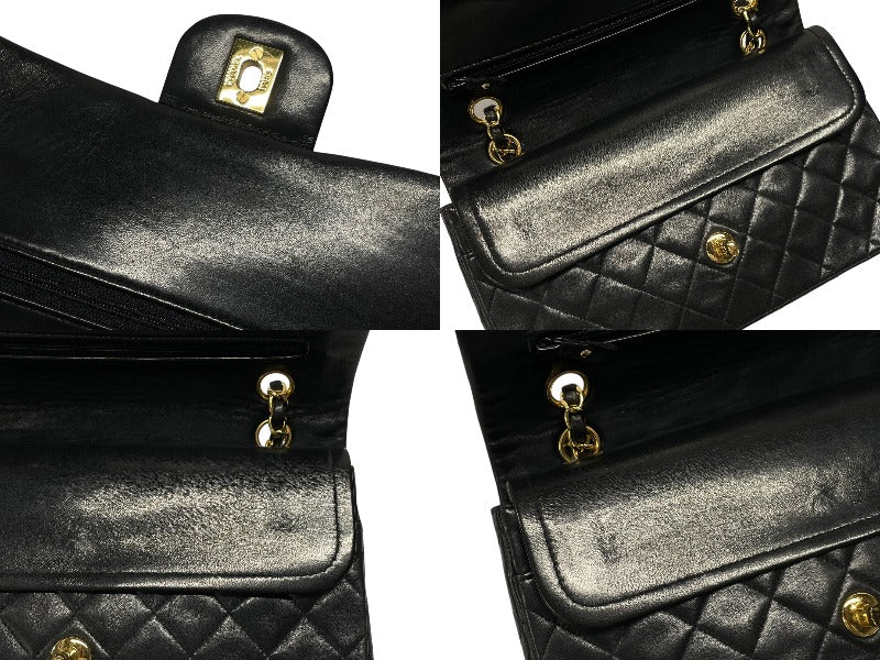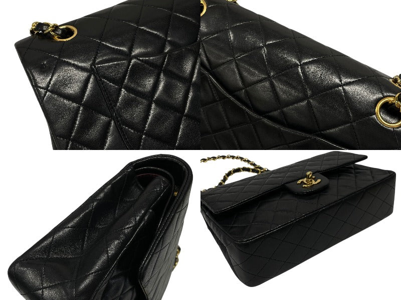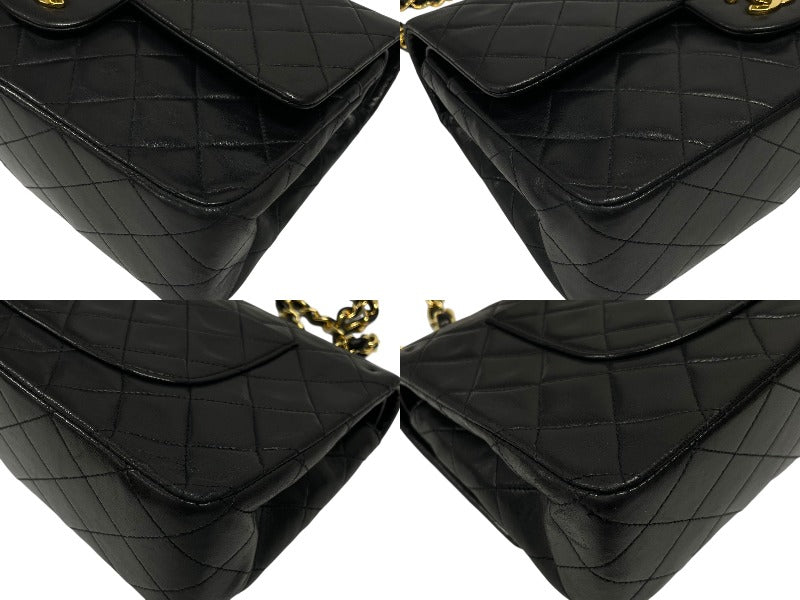 CHANEL シャネル マトラッセ25 Wフラップ Wチェーンショルダーバッグ 2番台 ラムスキン ココマーク ブラック ゴールド金具 美品 中古 4b009166