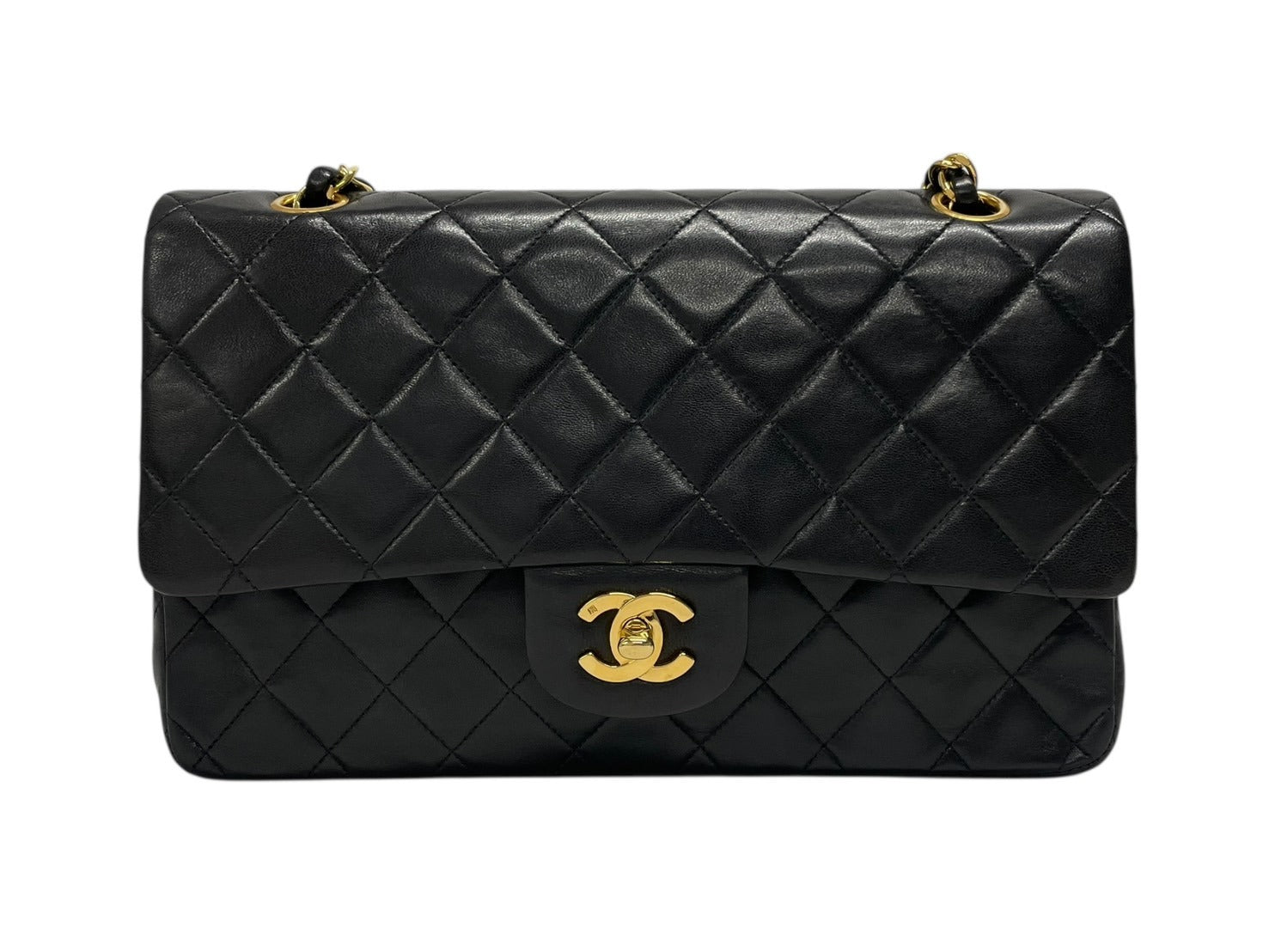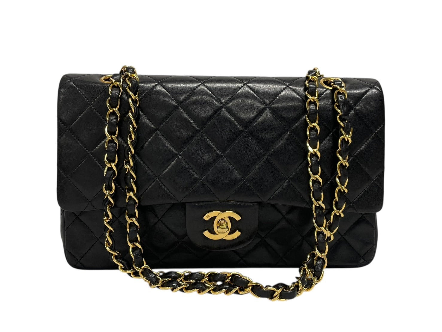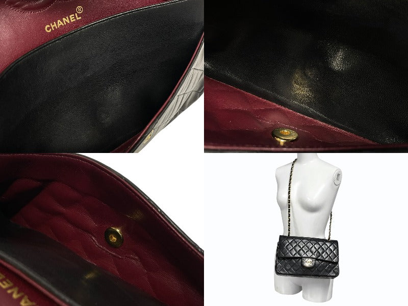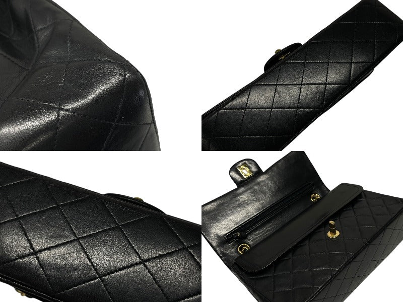 CHANEL シャネル マトラッセ25 Wフラップ Wチェーンショルダーバッグ 2番台 ラムスキン ココマーク ブラック ゴールド金具 美品 中古 4b009166