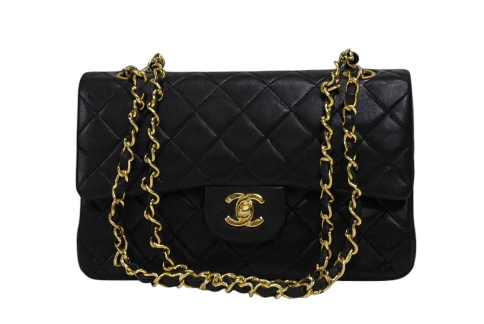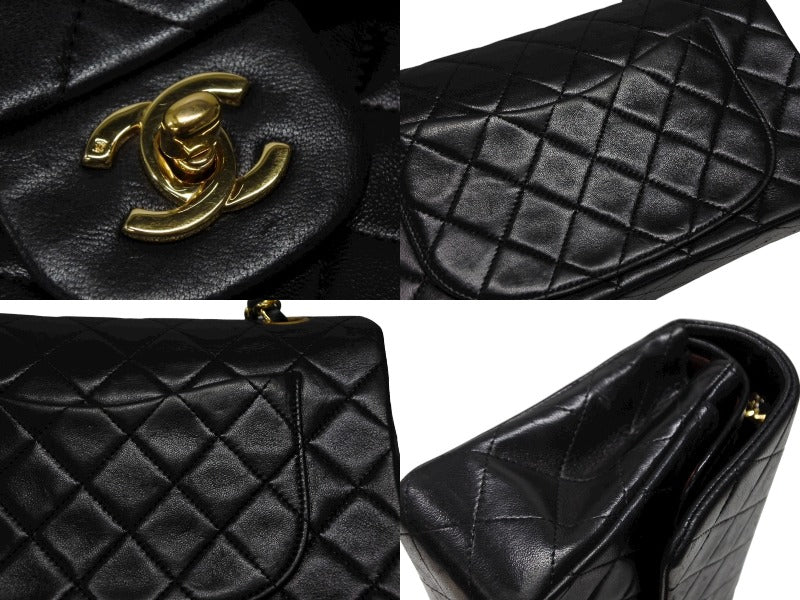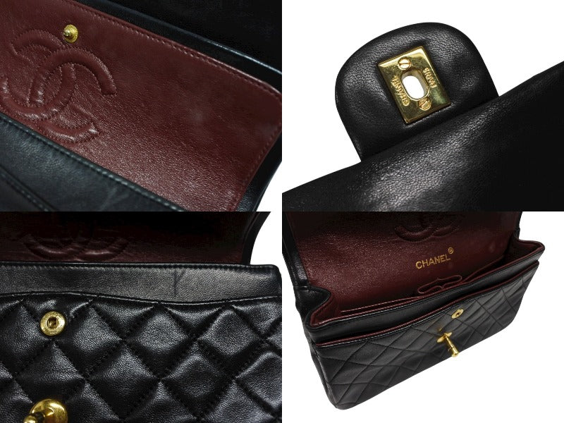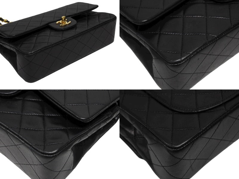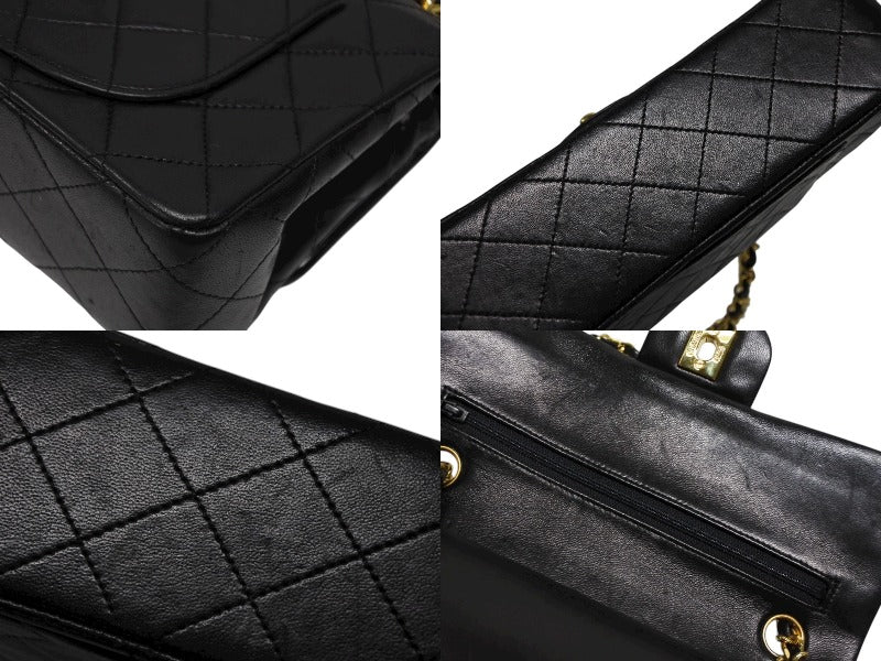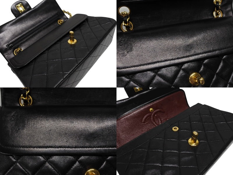 極美品 CHANEL シャネル マトラッセ23 Wフラップ Wチェーンショルダーバッグ 1番台 ココマーク ラムスキン ブラック ゴールド金具 中古 4b009207