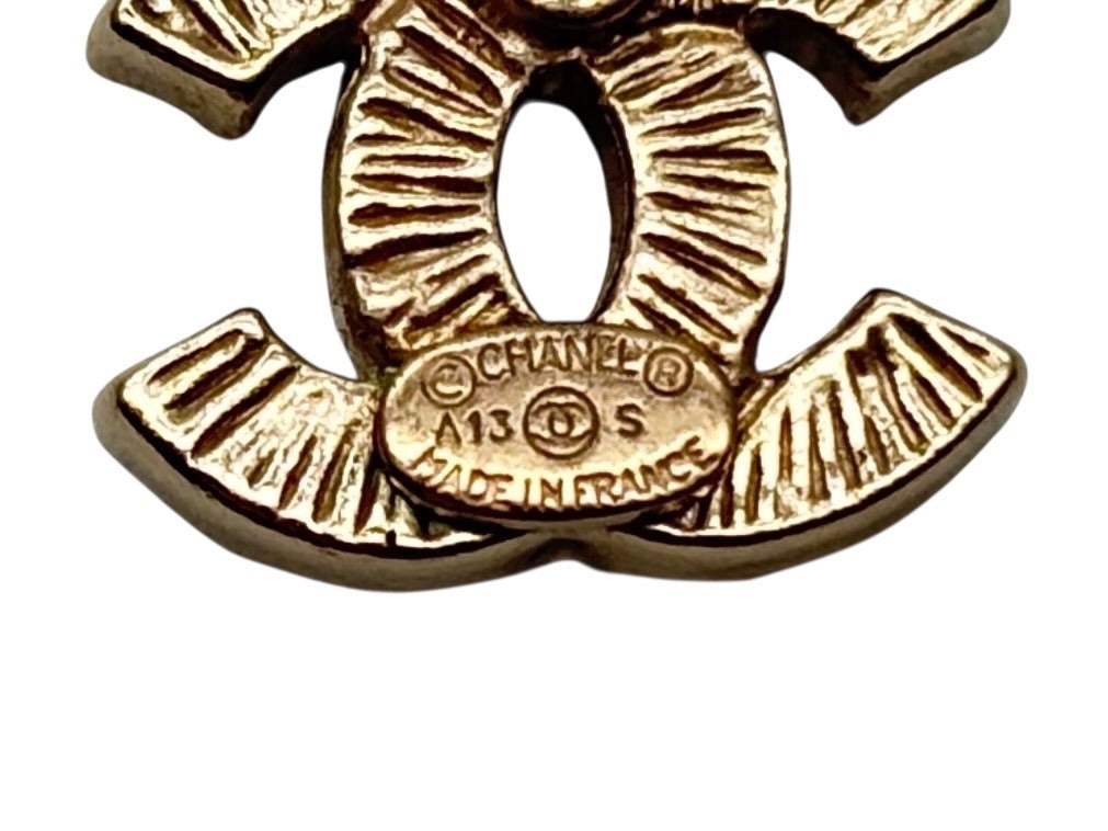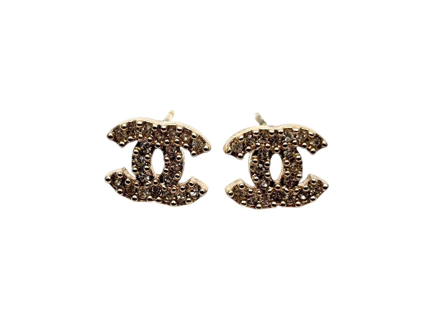 極美品 CHANEL シャネル ココマーク ピアス 重量約2g A13S刻印 ラインストーン メタル GP ゴールド クリア 両耳用 中古 4b009281