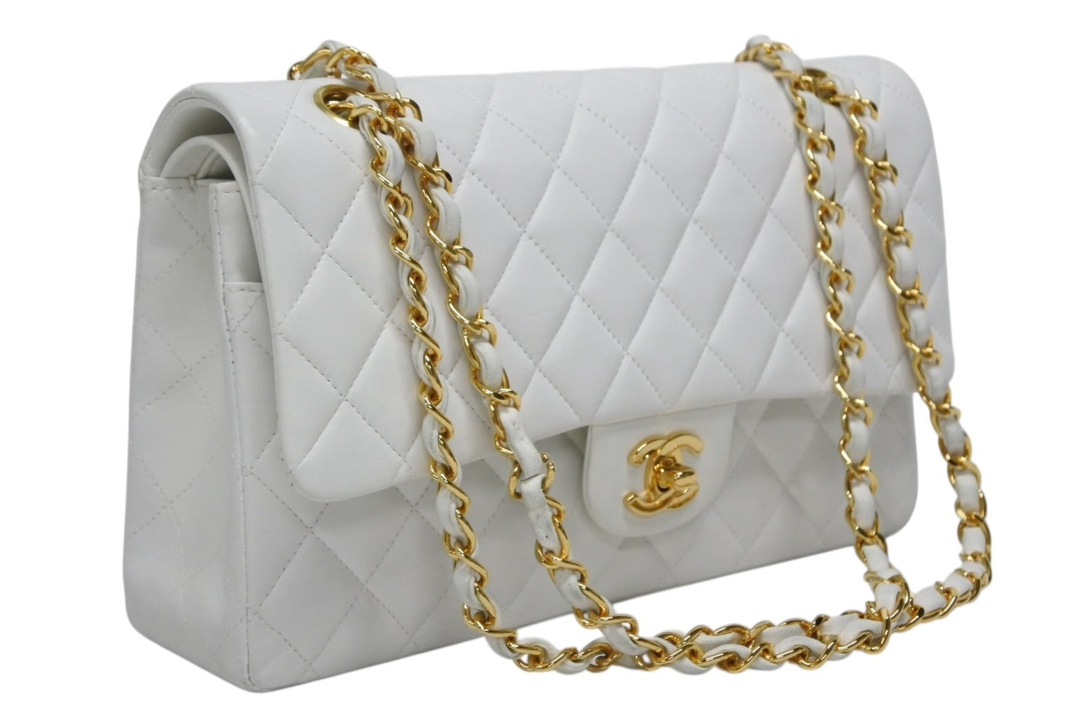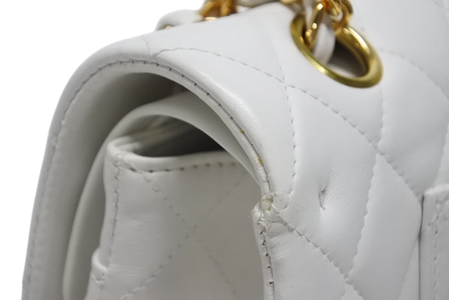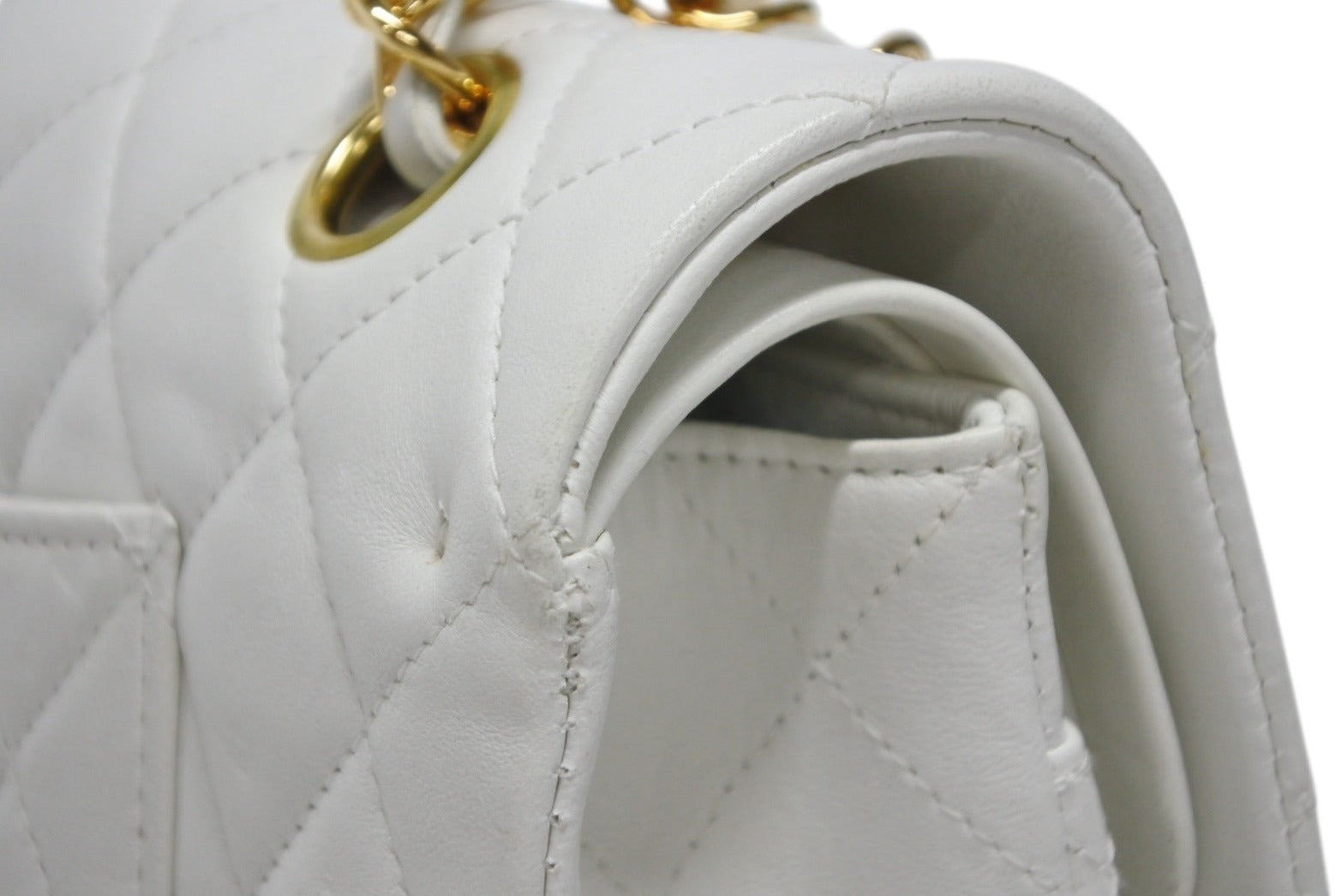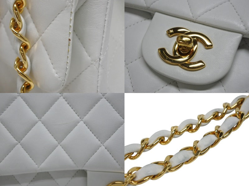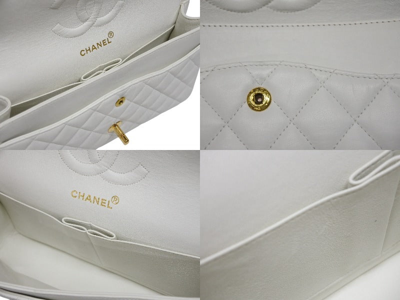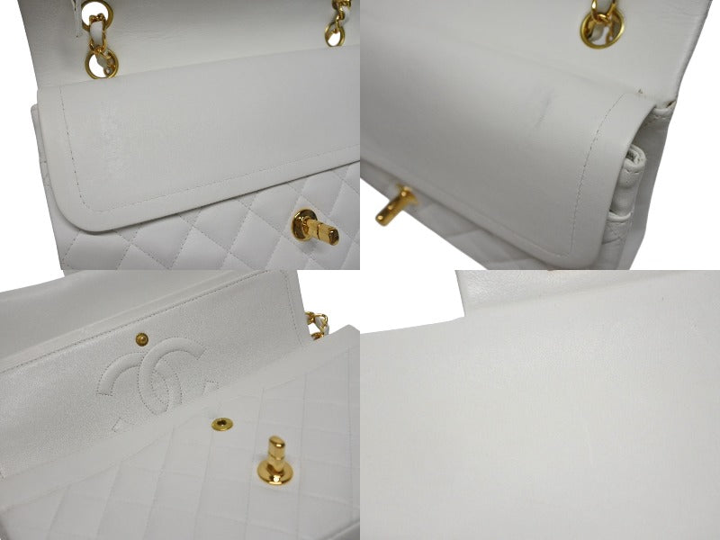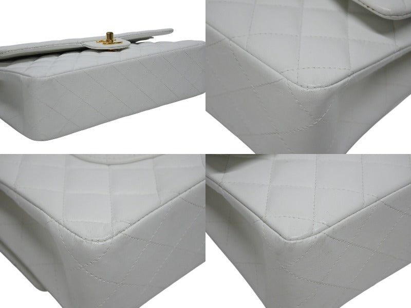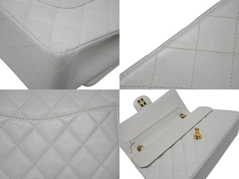 極美品 CHANEL シャネル チェーンショルダーバッグ マトラッセ25 ココマーク ラムスキン 5番台 1998年 Wフラップ ホワイト 中古 4b009684