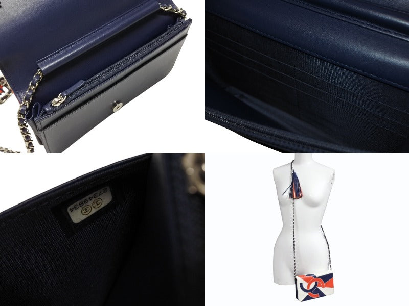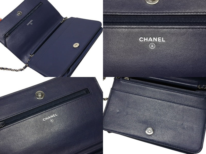 CHANEL シャネル チェーンショルダーウォレット 27番台 カーフスキン ココマーク フリンジ シルバー金具 美品 中古 4b009752