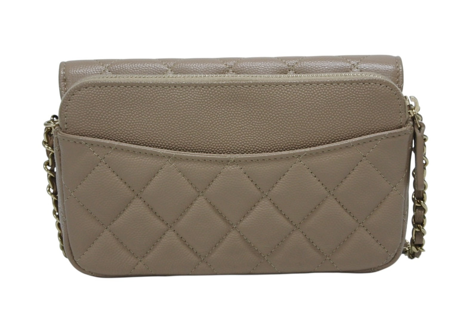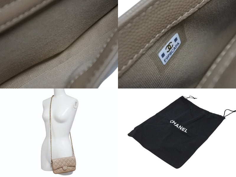 極美品 CHANEL シャネル フラップフォンケース チェーンウォレット AP2096 ココマーク キャビアスキン ベージュ ランダム番台 中古 4b009799