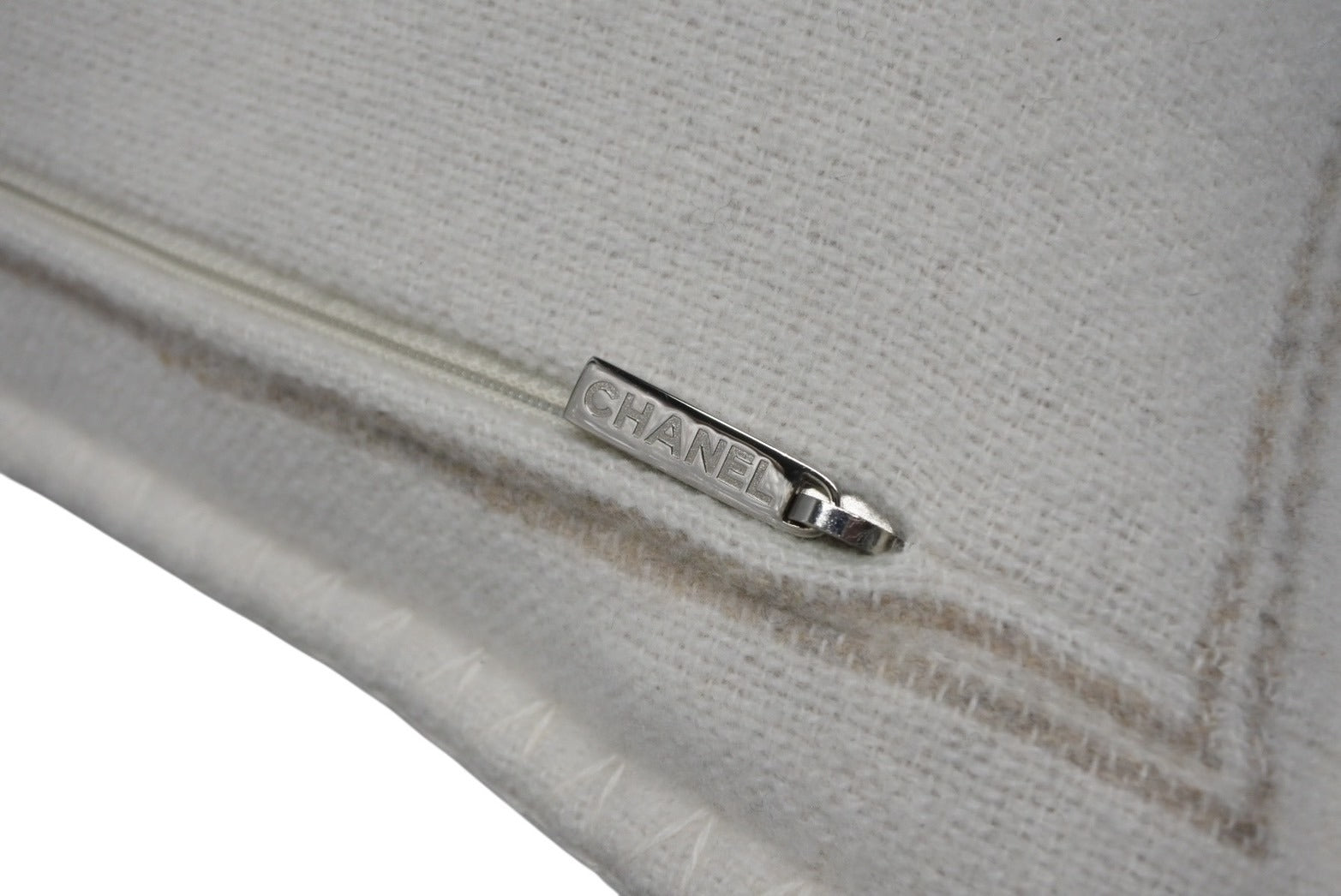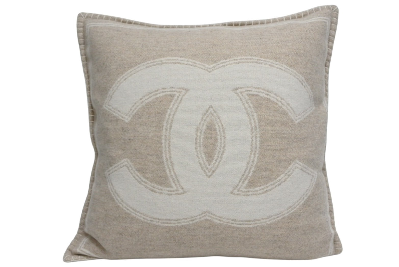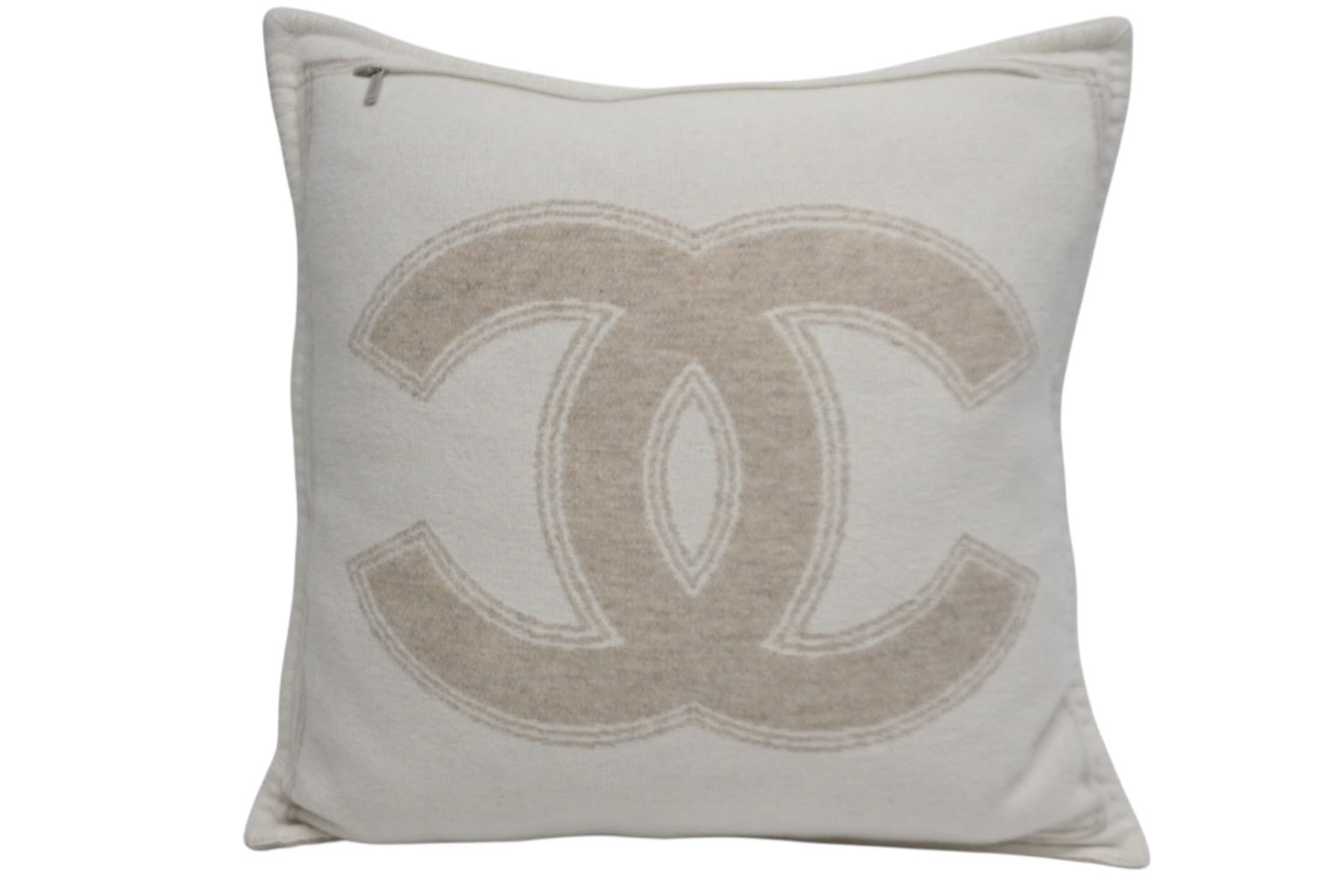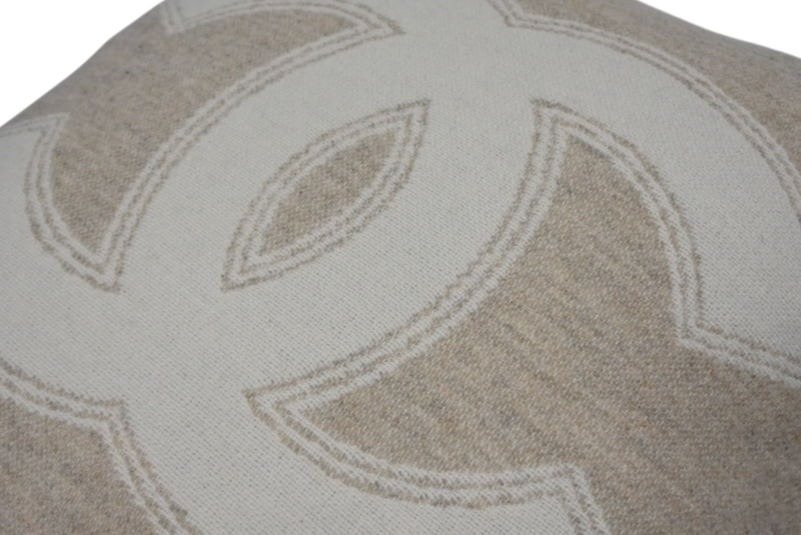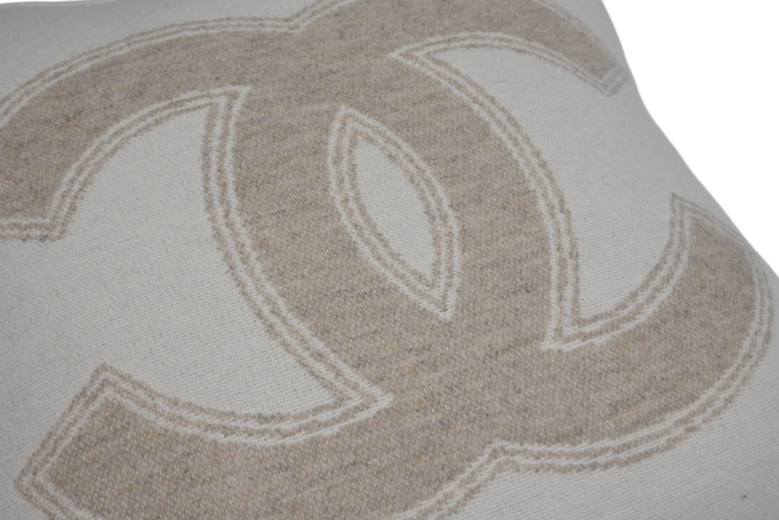 極美品 CHANEL シャネル ココマーク デカロゴ クッション ウール カシミヤ ベージュ アイボリー 中古 4b009808