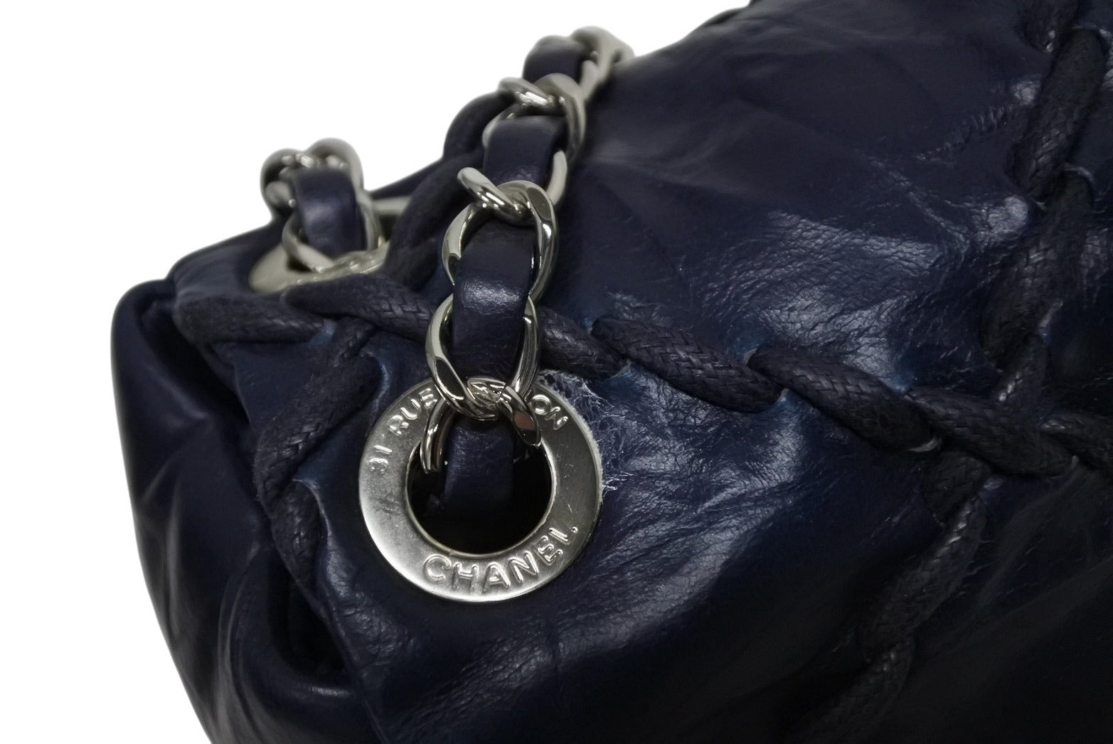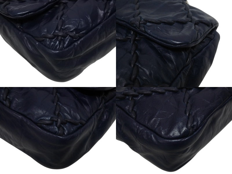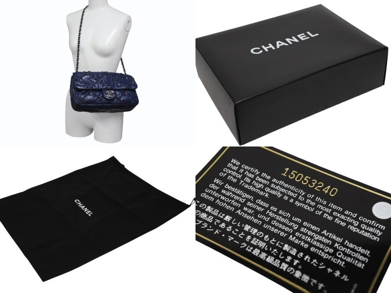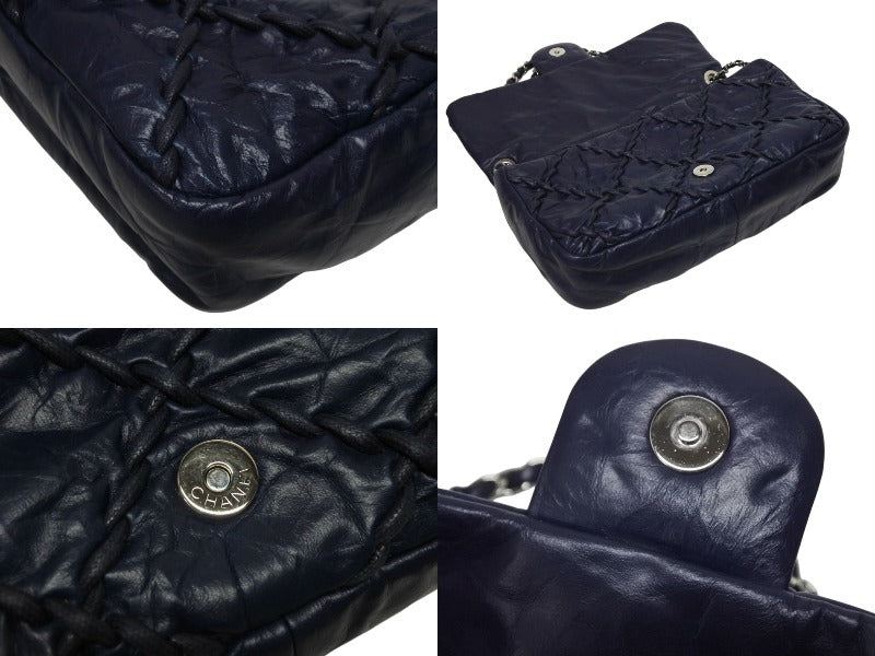 極美品 CHANEL シャネル ウルトラステッチ チェーンショルダーバッグ A48492 15番台 ラムスキン ココマーク ネイビー シルバー金具 中古 4b009879