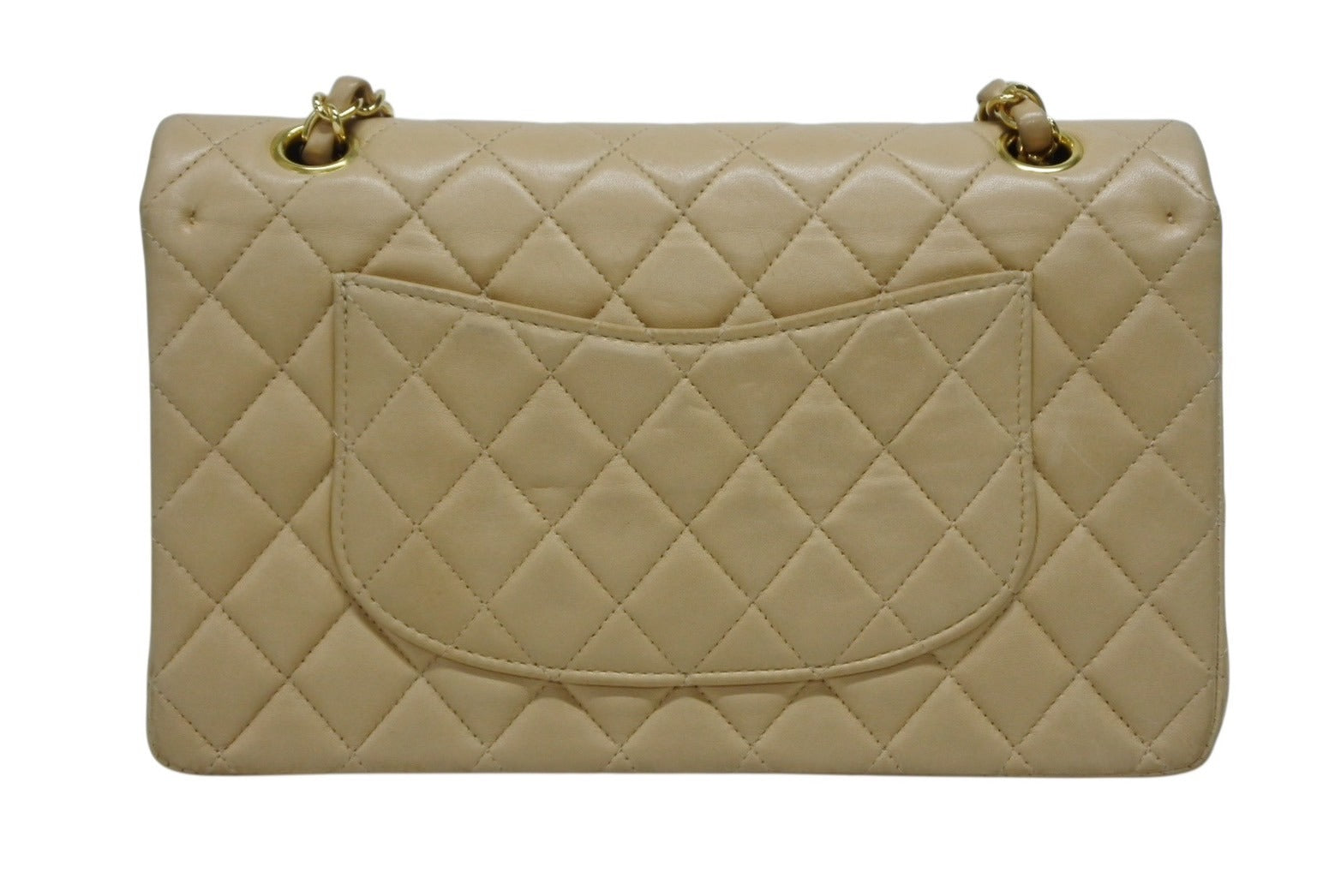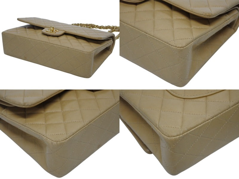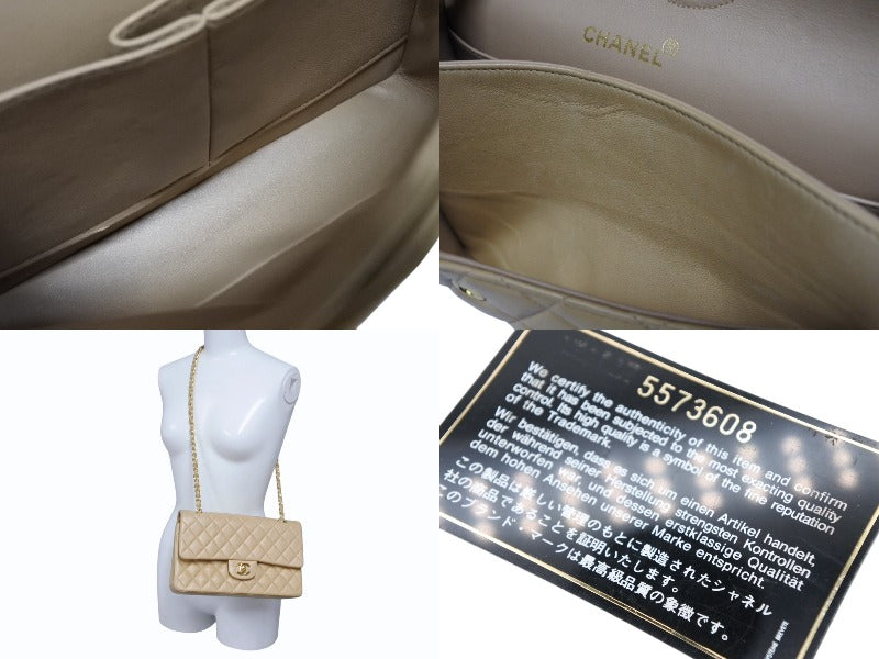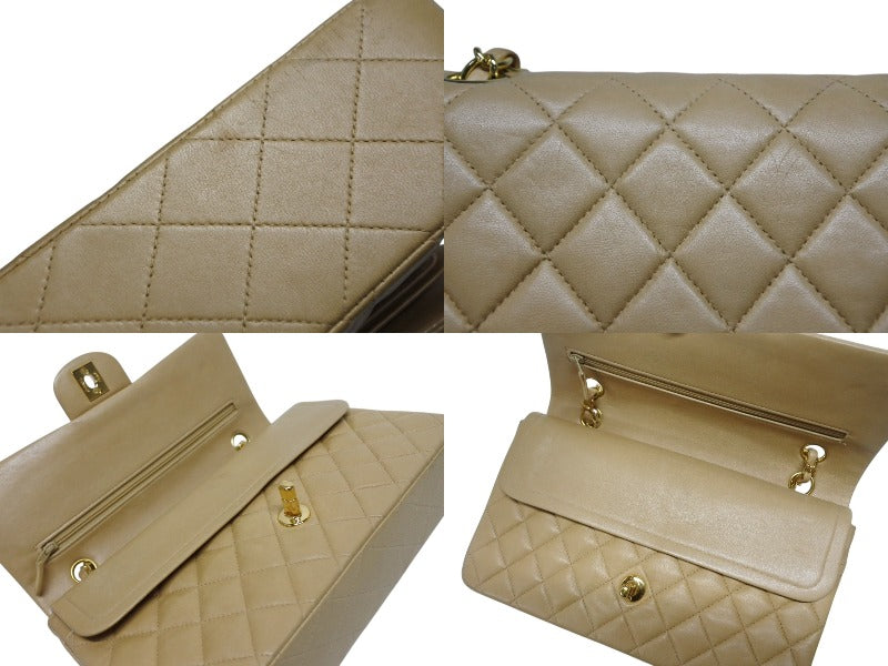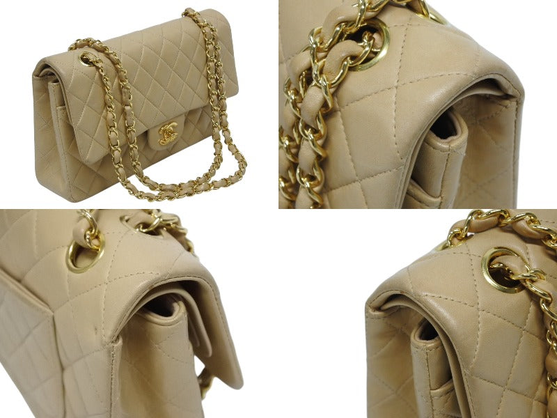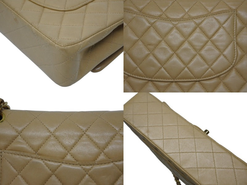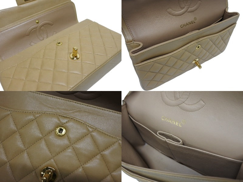 CHANEL シャネル マトラッセ25 Wフラップ Wチェーンショルダーバッグ ココマーク ラムスキン ベージュ 5番台 ゴールド金具 良品 中古 4b009883