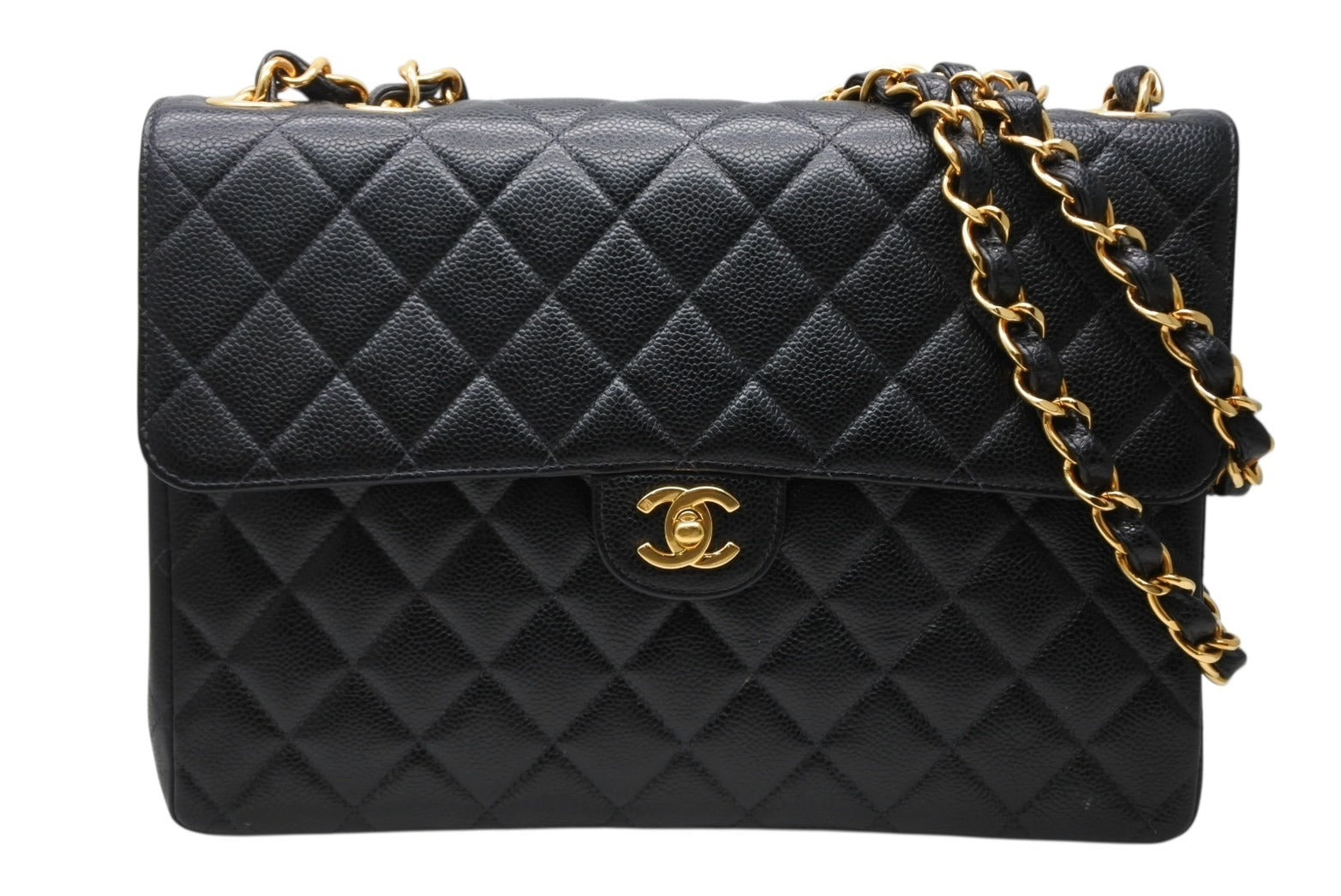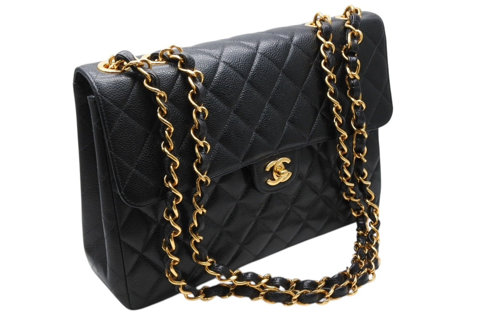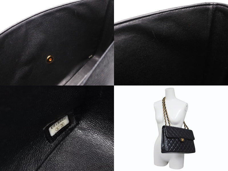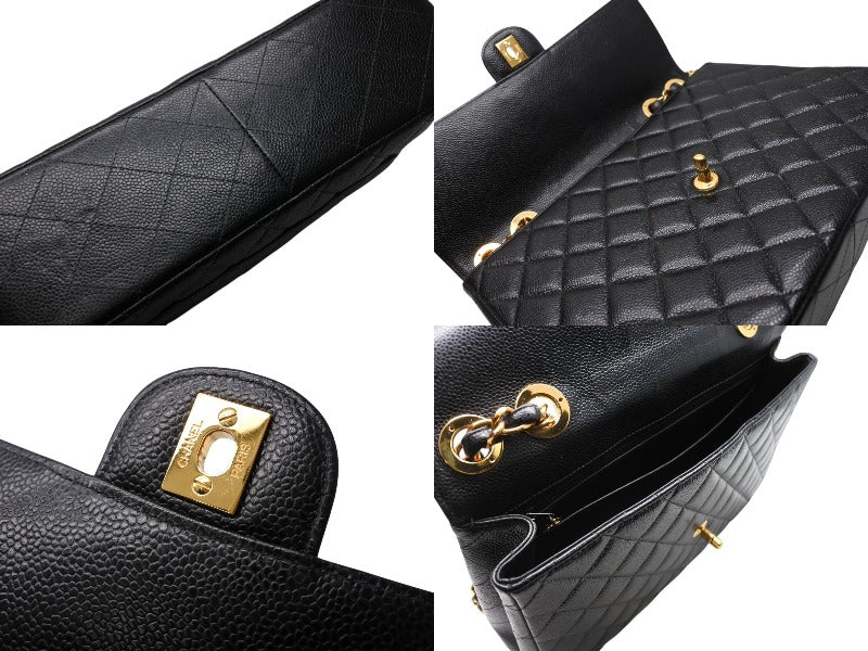 極美品 CHANEL シャネル デカマトラッセ30 Sフラップ Wチェーンショルダーバッグ 7番台 ココマーク キャビアスキン ゴールド金具 中古 4b010062