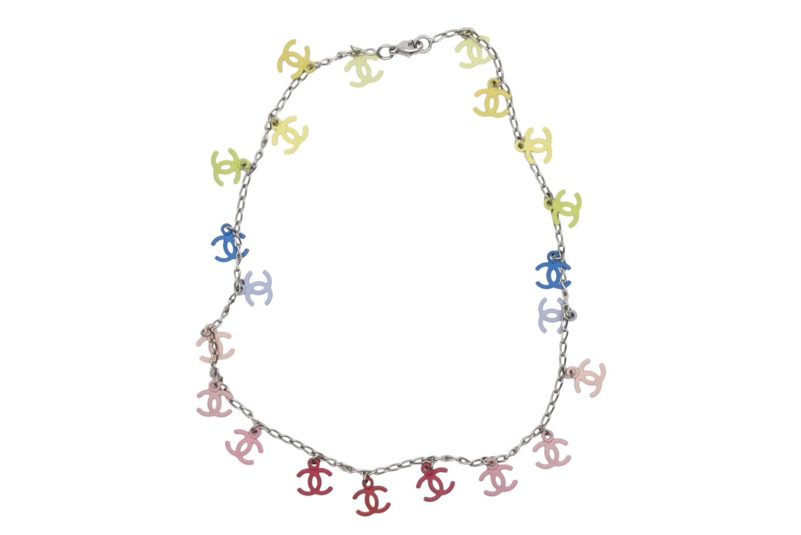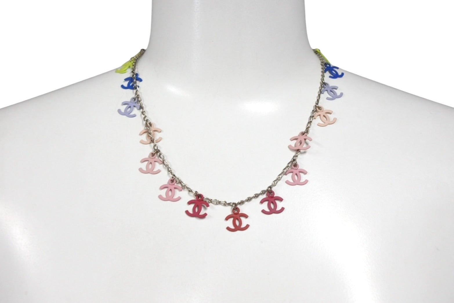 極美品 CHANEL シャネル ココマーク ネックレス 重量約12.7g 全長約43cm マルチカラー シルバー メタル 中古 4b010379
