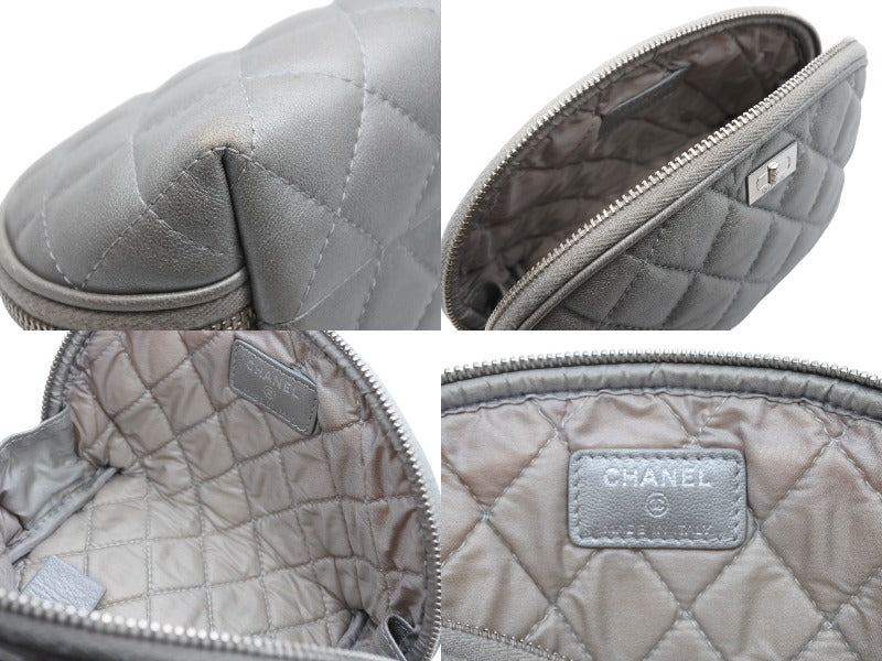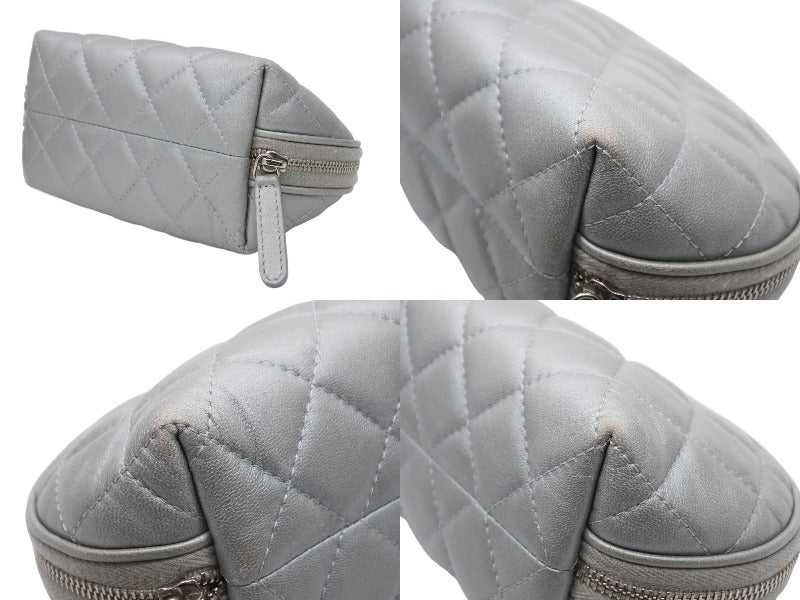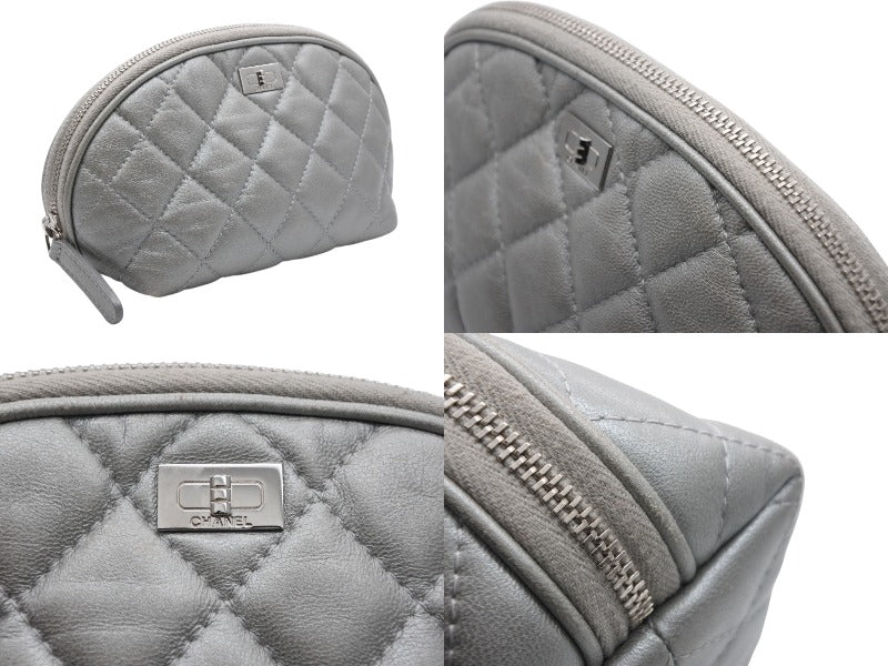 CHANEL シャネル 2.55 ポーチ キルティング コスメポーチ 小物入れ 18番台 イタリア製 レザー シルバー金具 美品 中古 4b010445