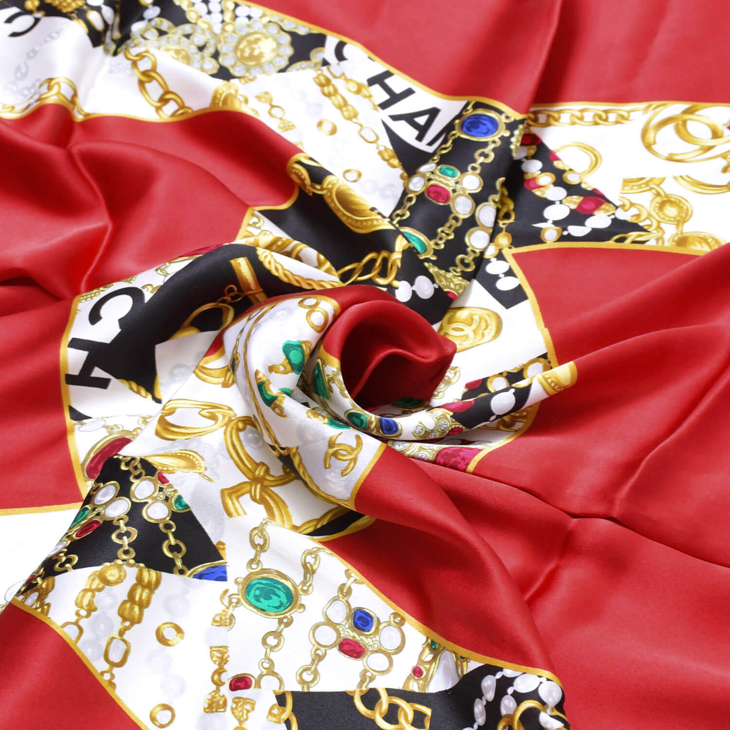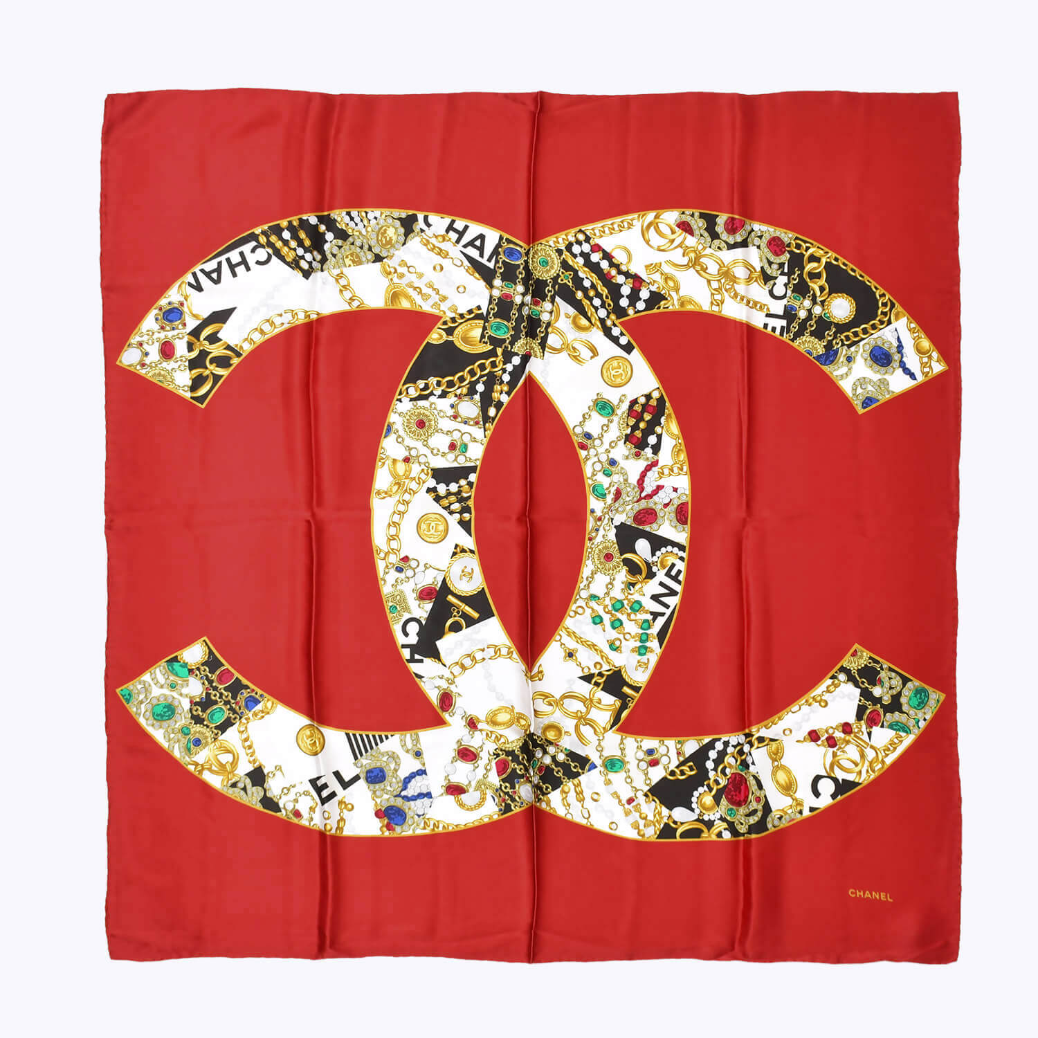 CHANEL シャネル スカーフ バンダナ ココマーク ハンカチ 80cm レッド シルク 美品 中古 4b010484