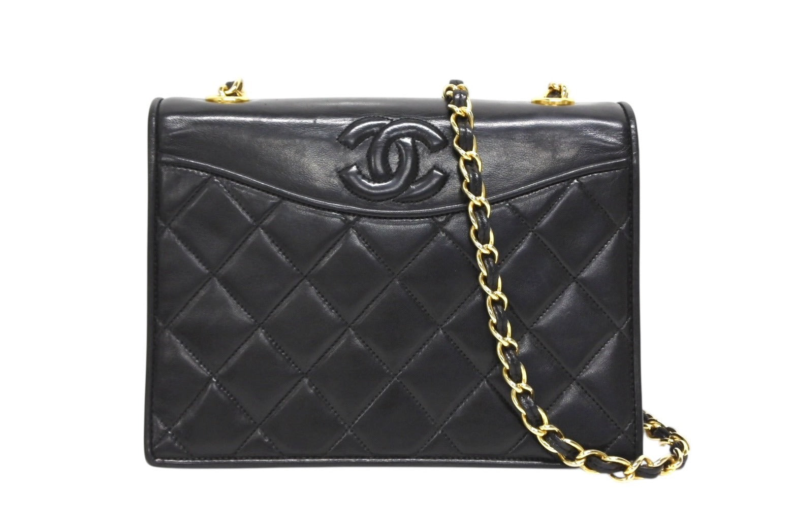 極美品 CHANEL シャネル Sフラップ Sチェーンショルダーバッグ A2000 1番台 ココマーク ラムスキン ブラック ゴールド金具 中古 4b010569